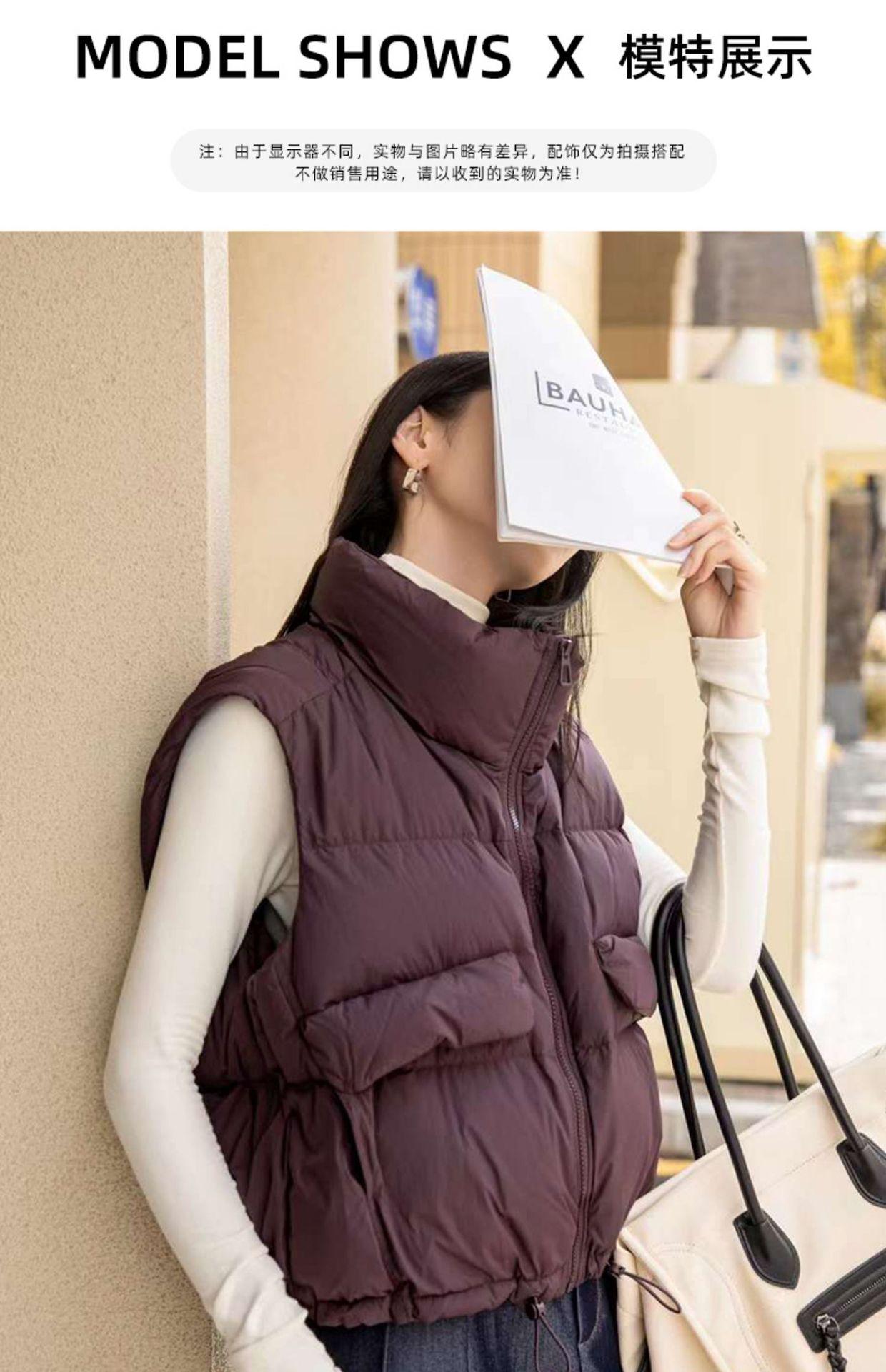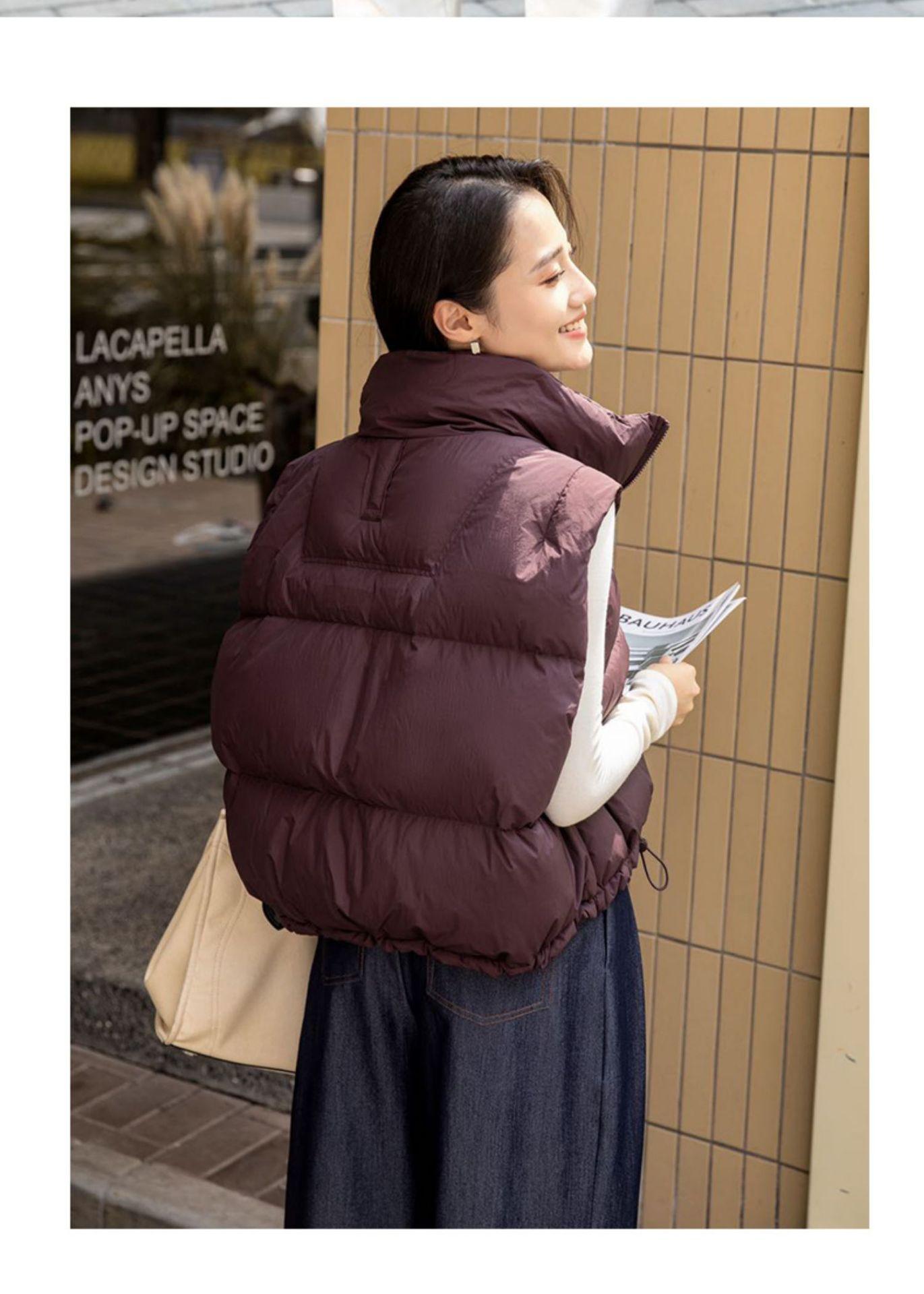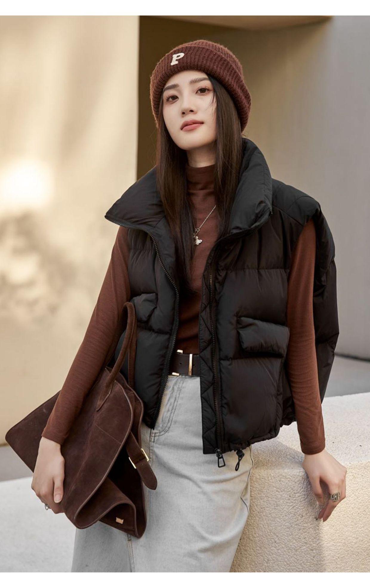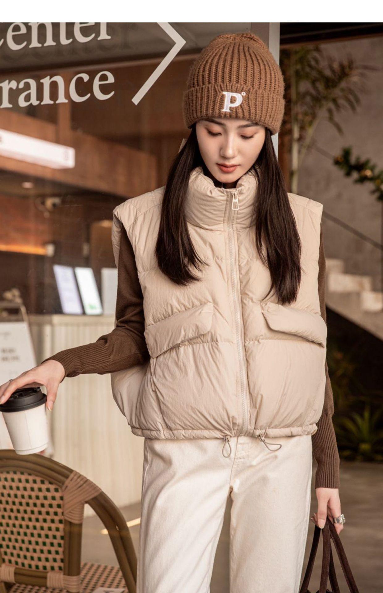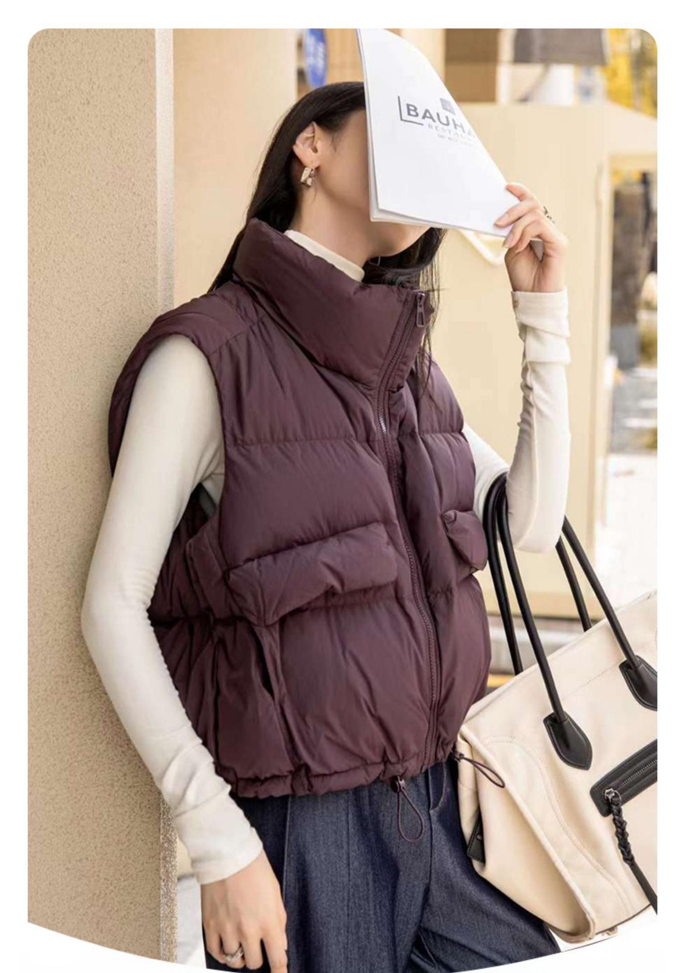 Chaleco de plumón estilo coreano de cuello alto para mujer, moda de otoño e invierno, ligero, bolsillos grandes, engrosado, chaleco entallado, moderno