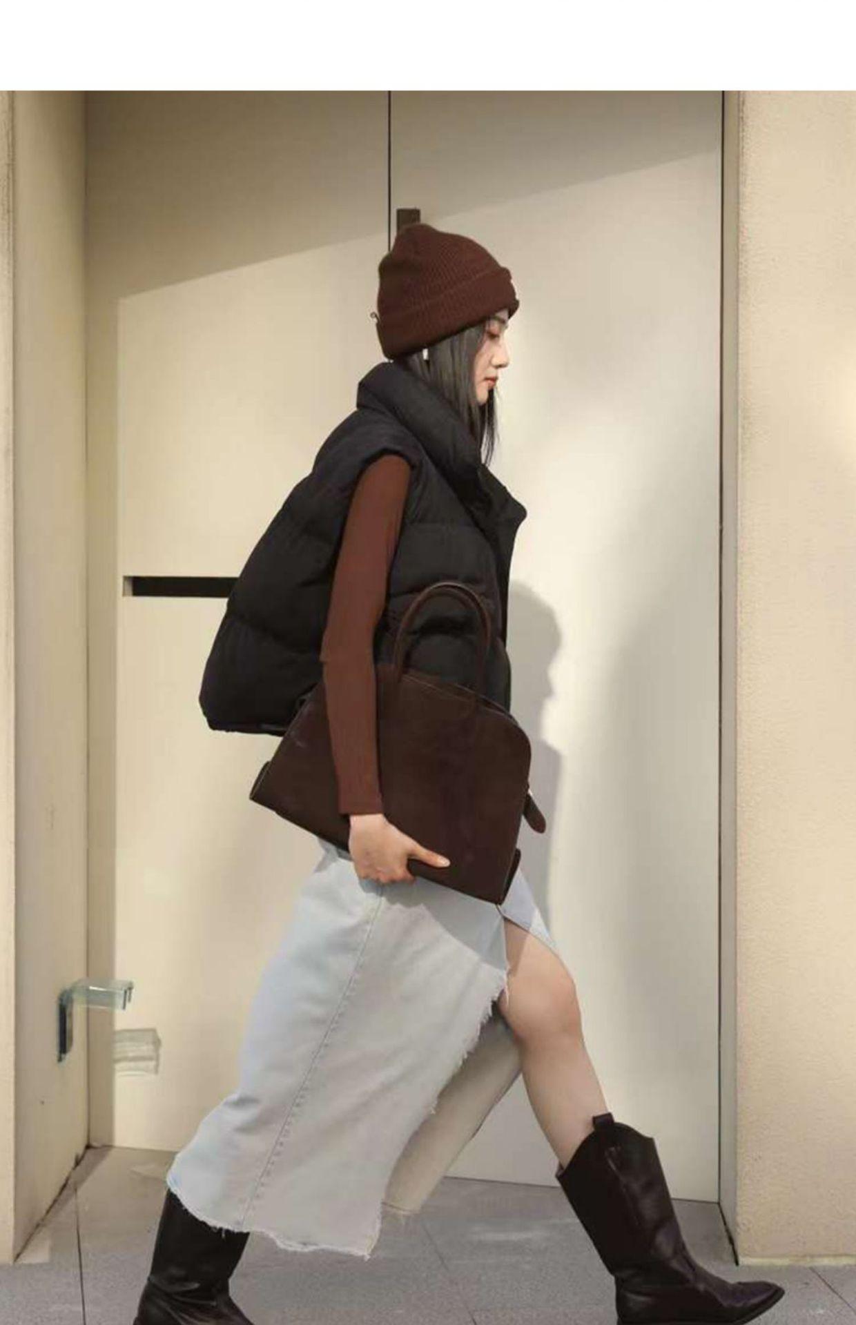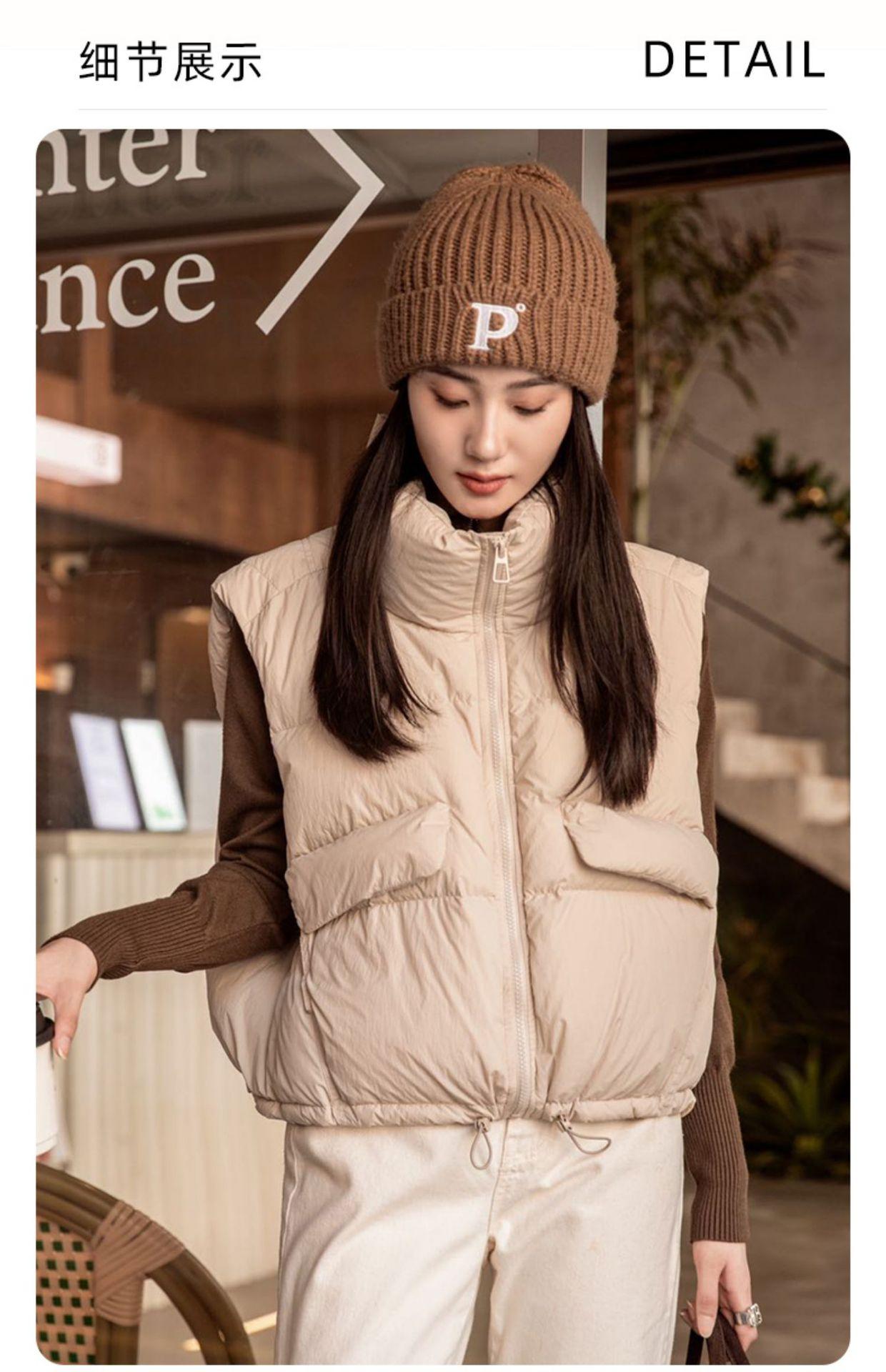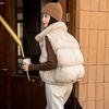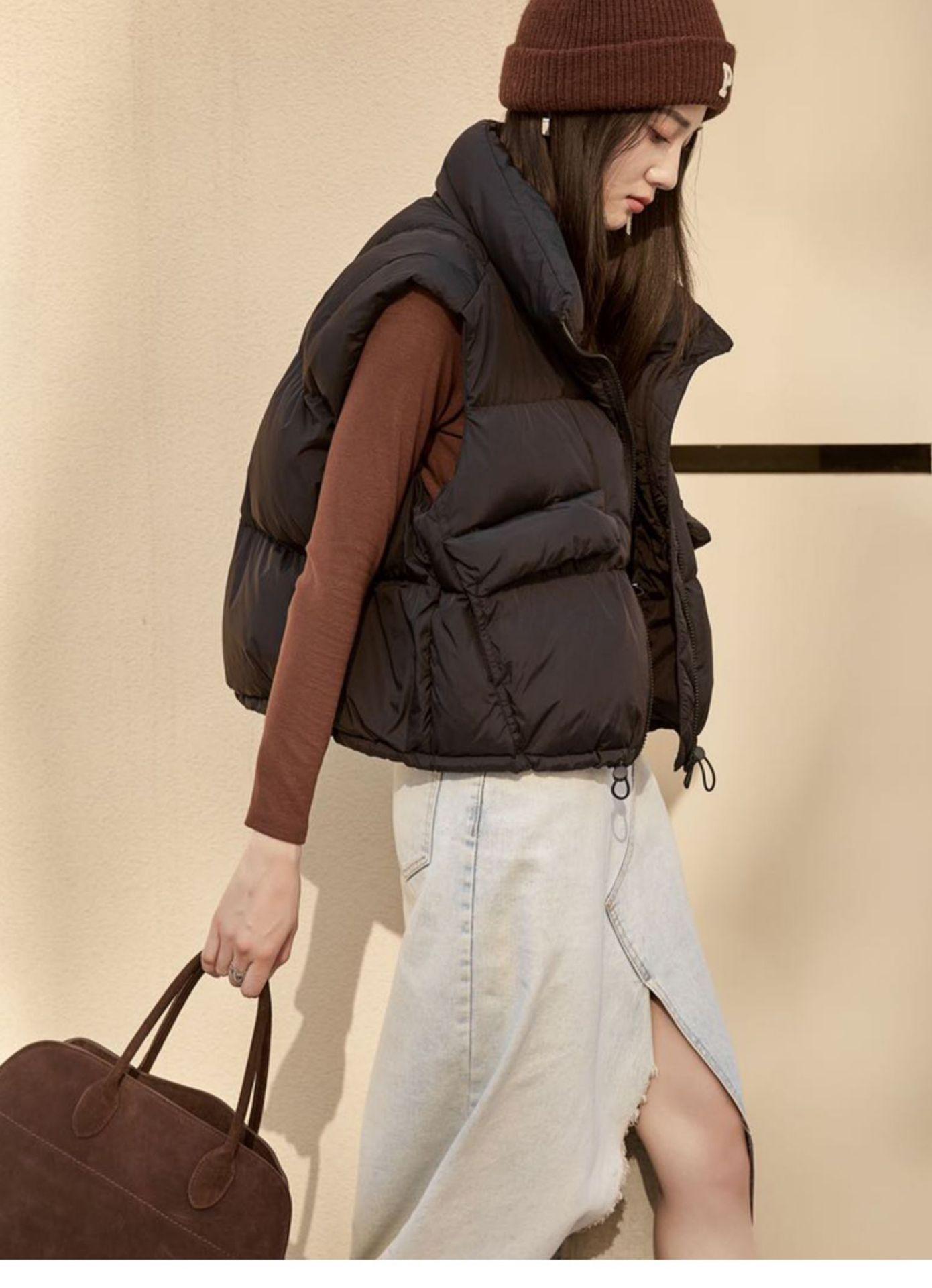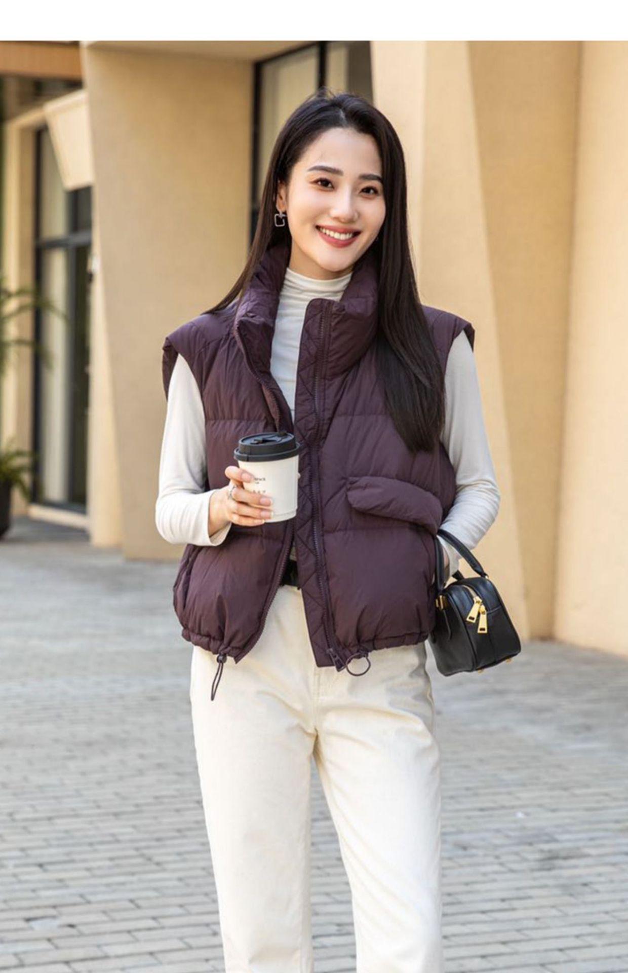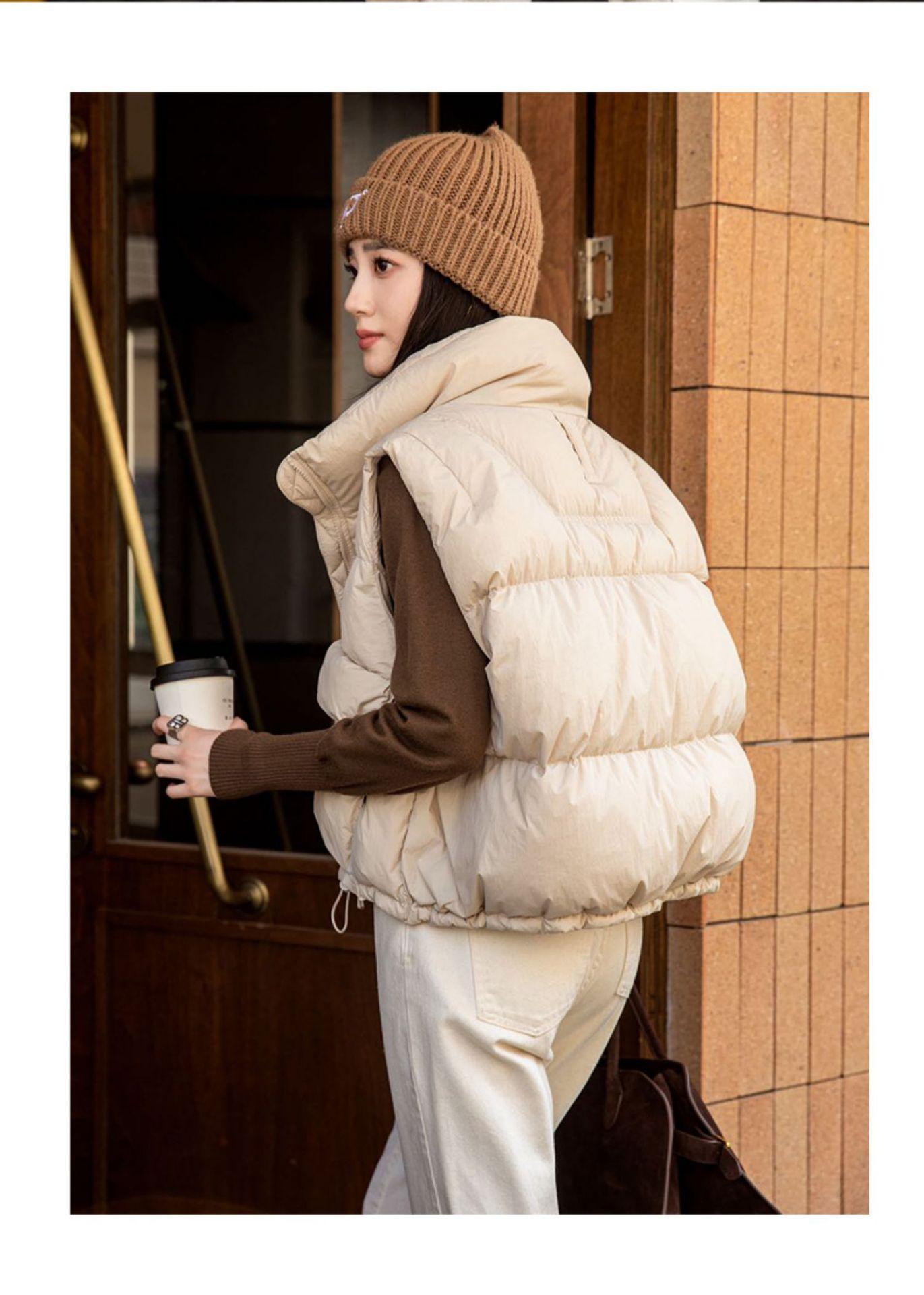 Chaleco de plumón estilo coreano de cuello alto para mujer, moda de otoño e invierno, ligero, bolsillos grandes, engrosado, chaleco entallado, moderno