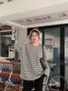 Suéter de punto con cuello redondo y hombros descubiertos para mujer, estilo coreano, informal, a rayas, de manga larga, transpirable, de talla grande