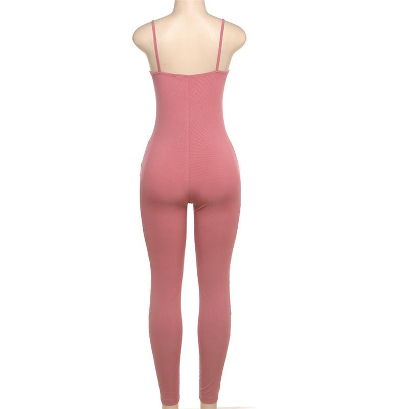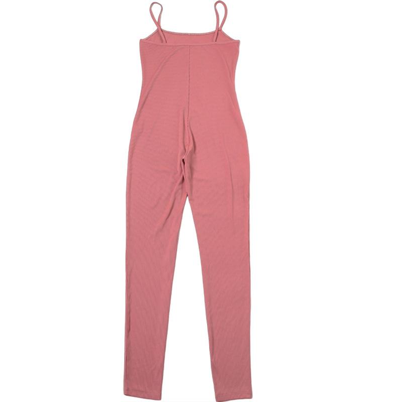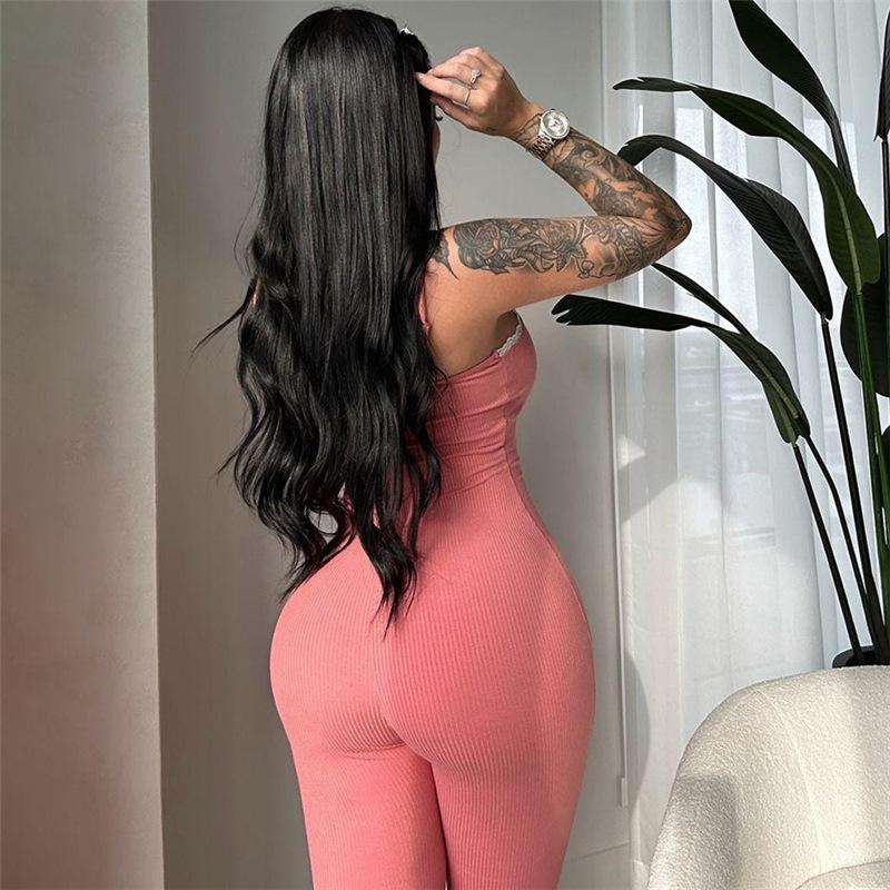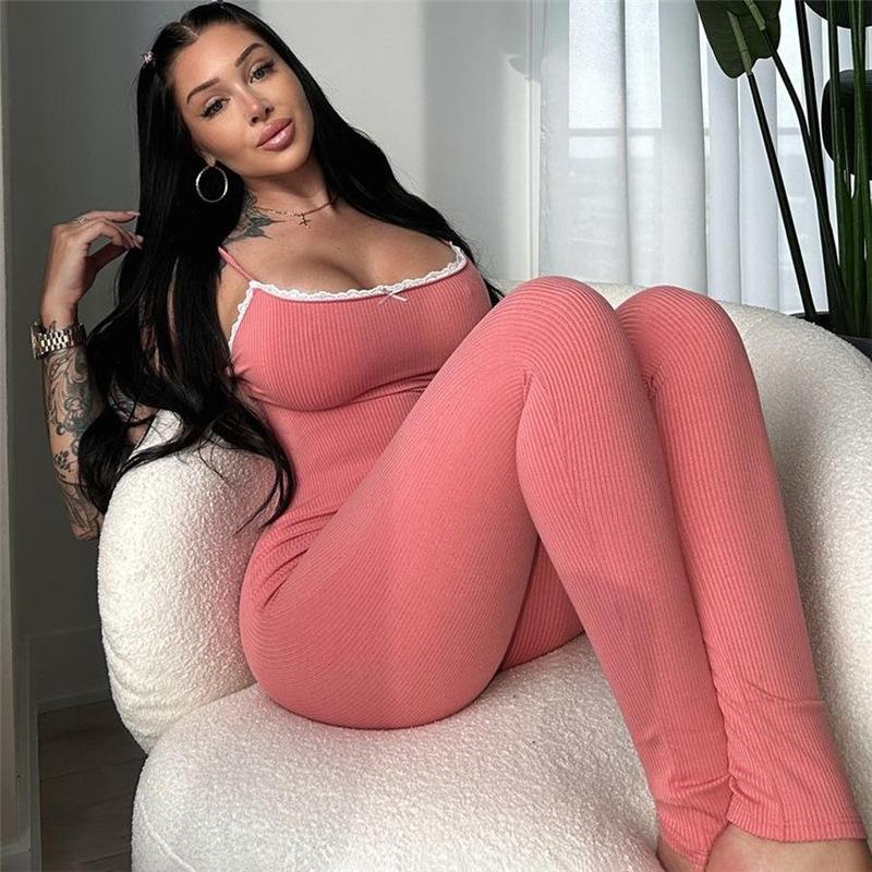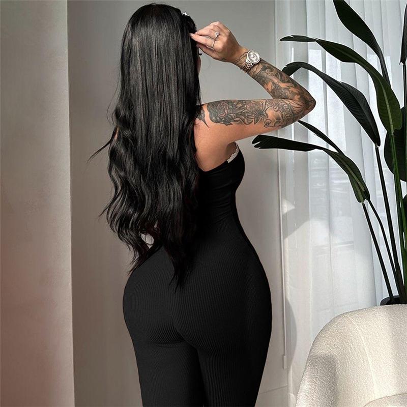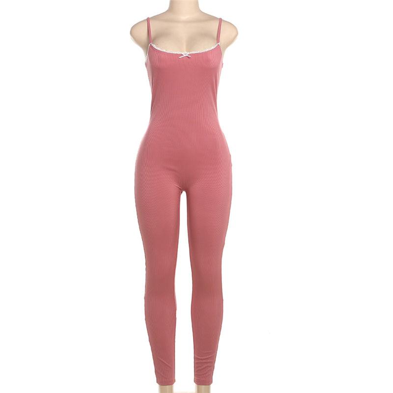 Exportación Transfronteriza Europea y Americana 2024 Otoño e Invierno Nuevo Sexy Ajustado Escote Bajo Color Puro Pantalones Tirantes Lazo Mono