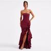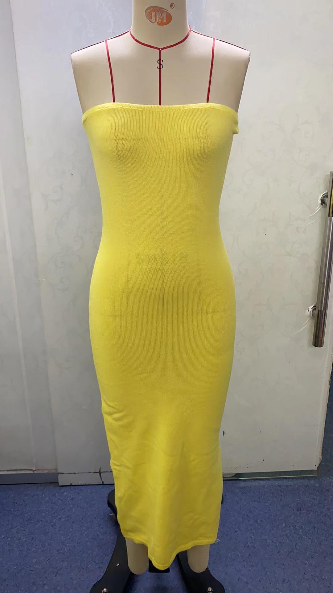 Vestido largo elegante sin tirantes, con hombros descubiertos, sexy, ajustado y adelgazante, de punto, para mujer europea y americana transfronteriza 2023