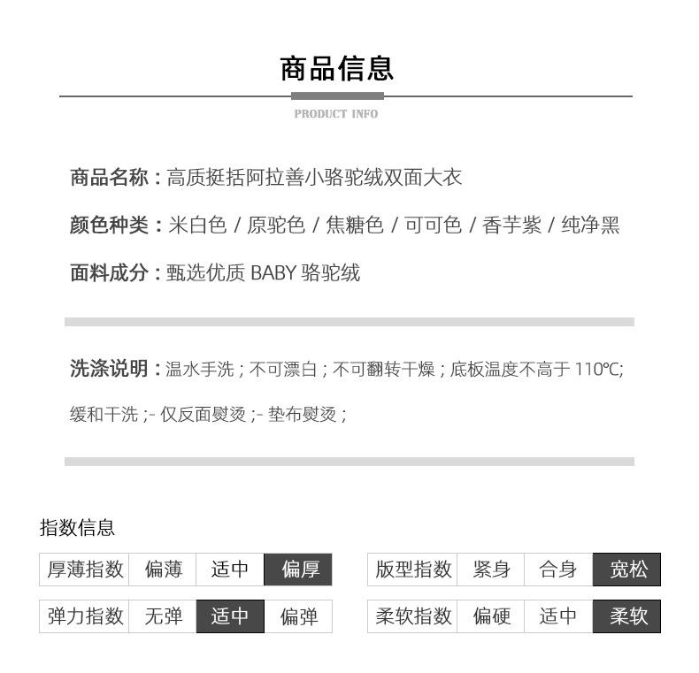 Original camel, Off-white, Caramel color, Cocoa color, Taro purple, Pure black