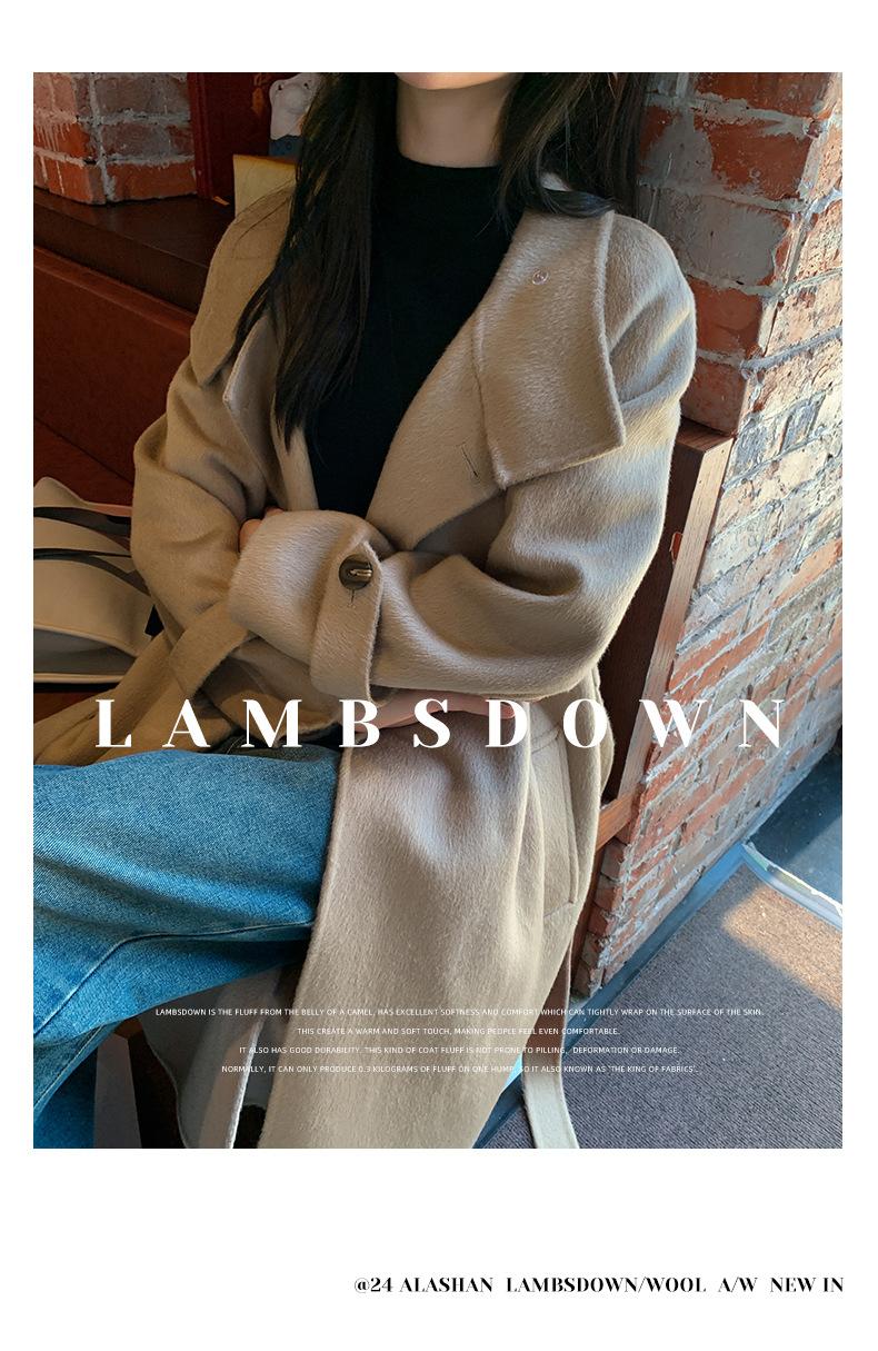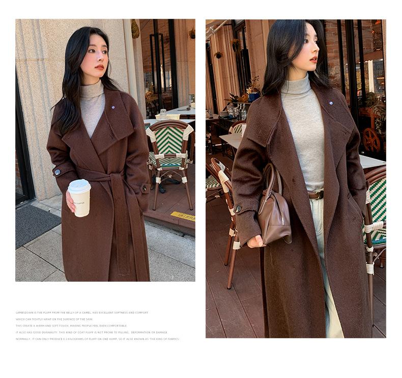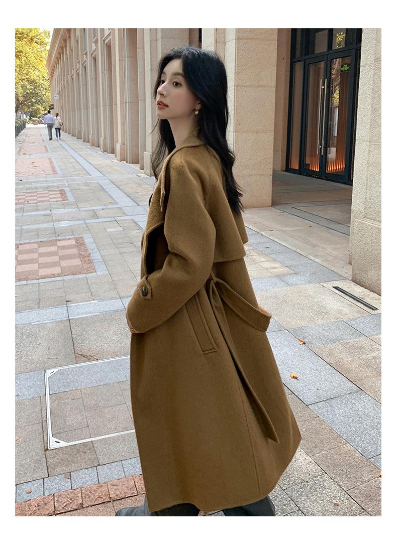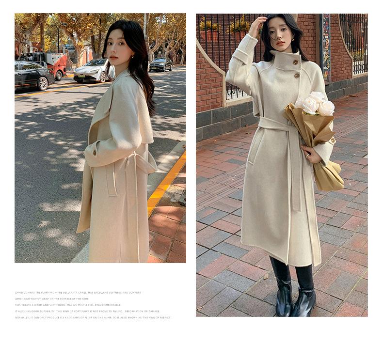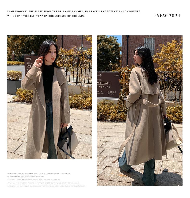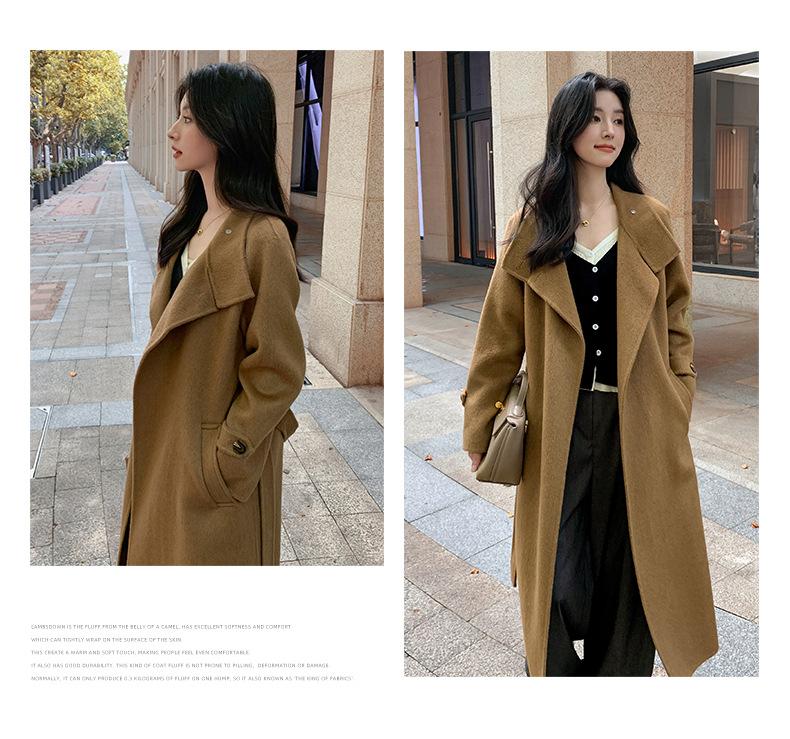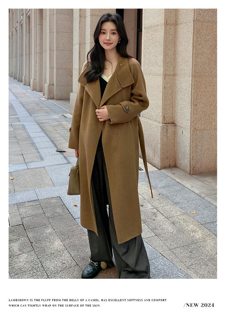 Abrigo de terciopelo camello 30% para mujer, otoño e invierno, nuevo, 2024, con cinturón de cuello vertical, abrigo de lana holgado, abrigo sencillo de lana