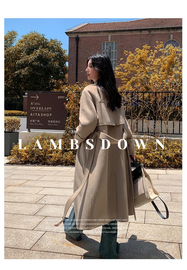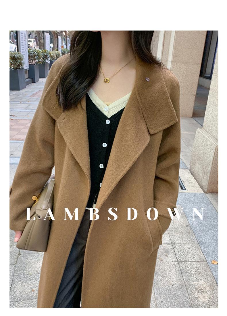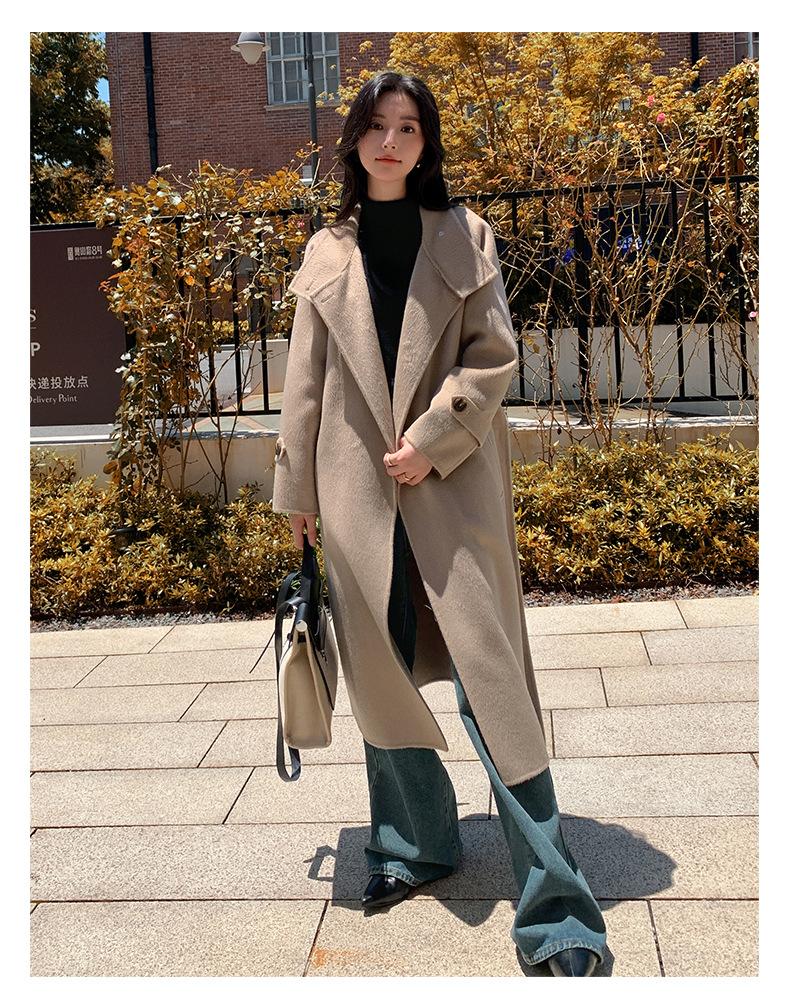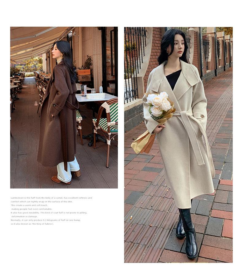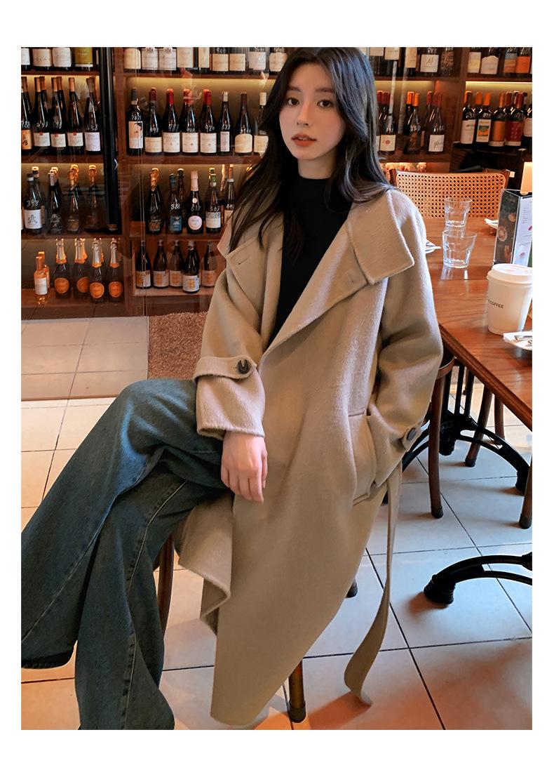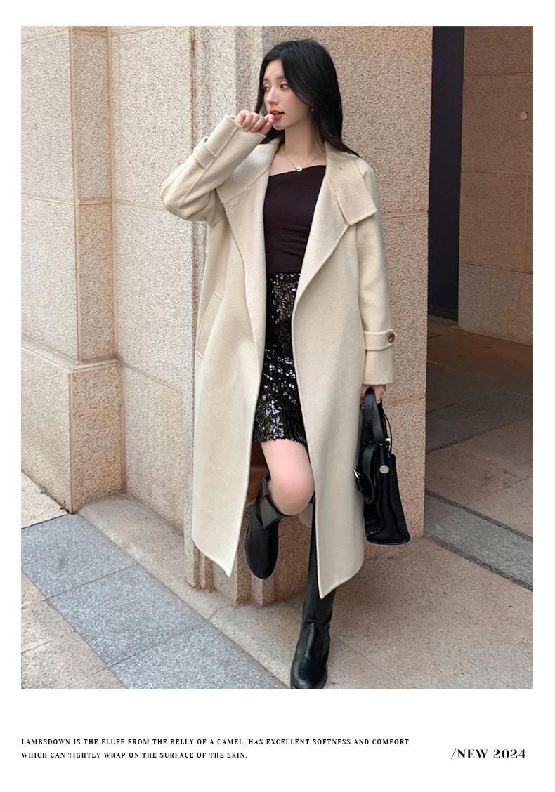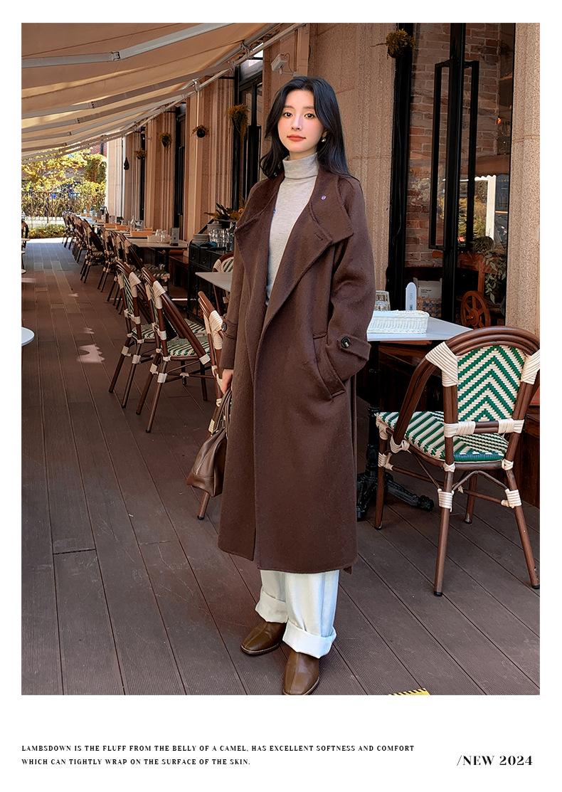 Abrigo de terciopelo camello 30% para mujer, otoño e invierno, nuevo, 2024, con cinturón de cuello vertical, abrigo de lana holgado, abrigo sencillo de lana