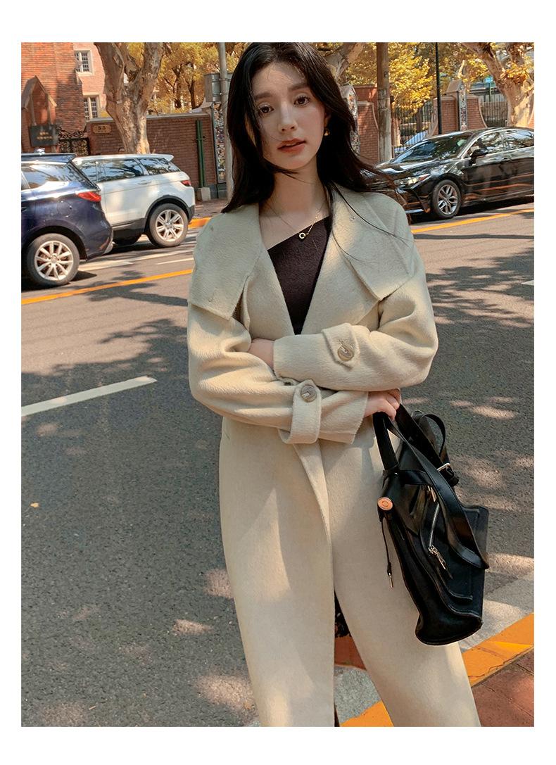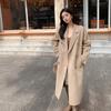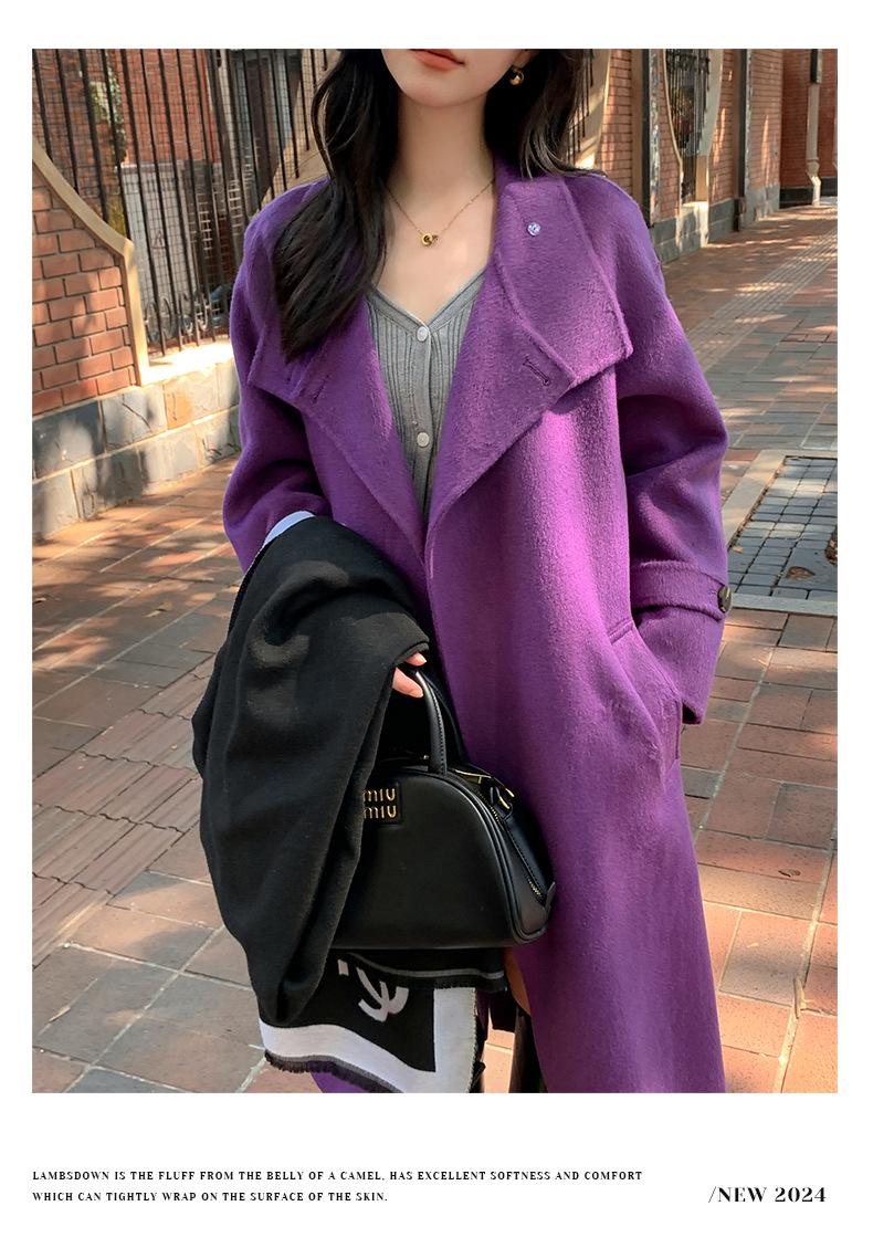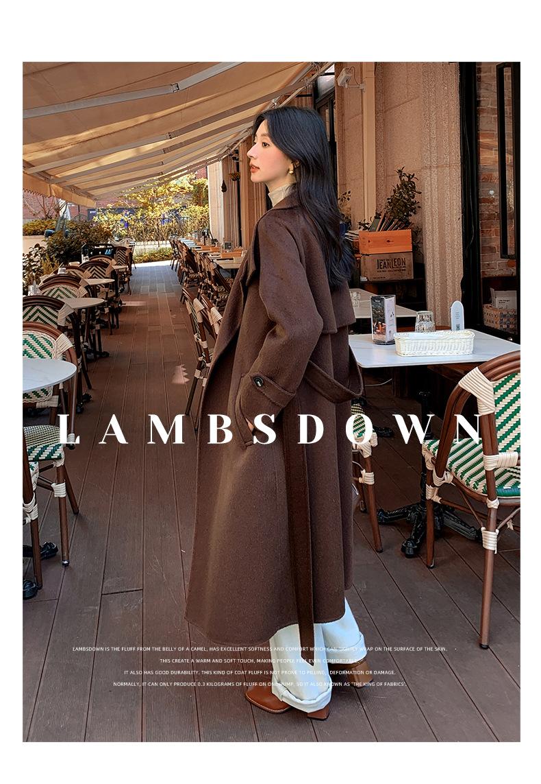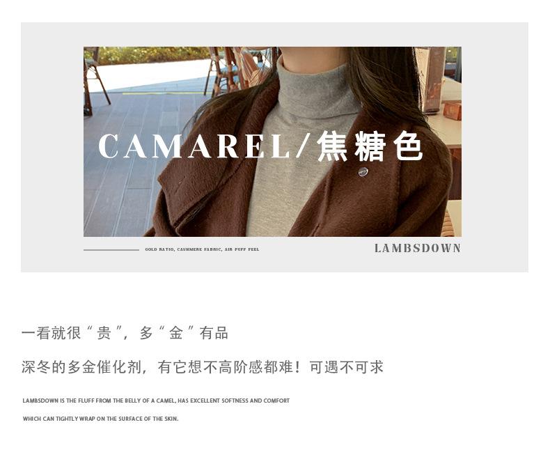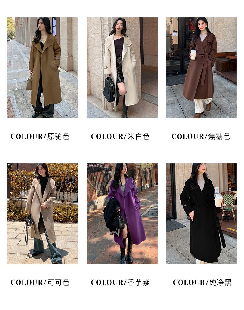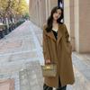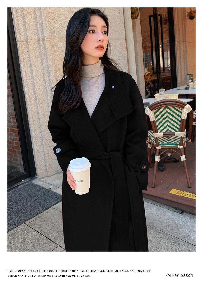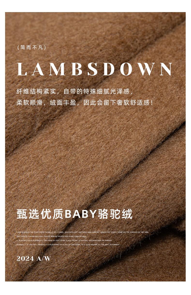 Abrigo de terciopelo camello 30% para mujer, otoño e invierno, nuevo, 2024, con cinturón de cuello vertical, abrigo de lana holgado, abrigo sencillo de lana