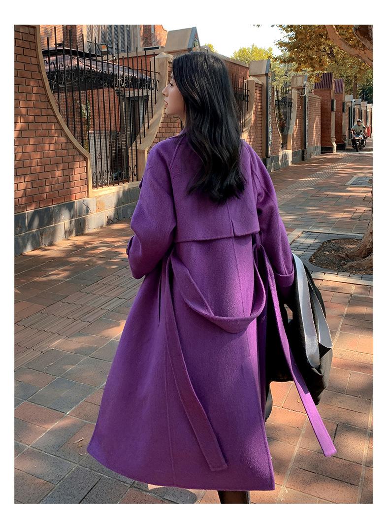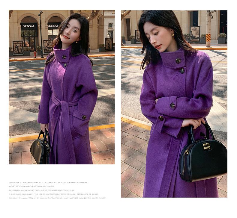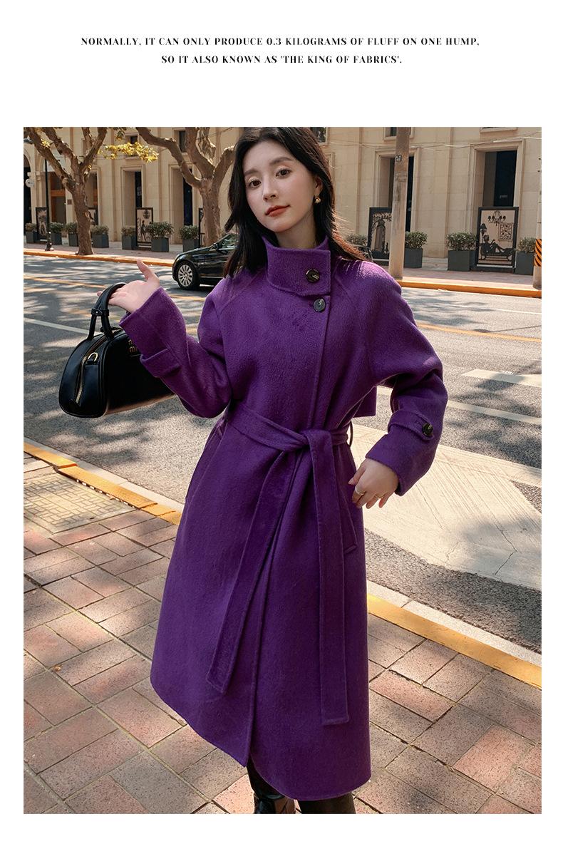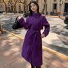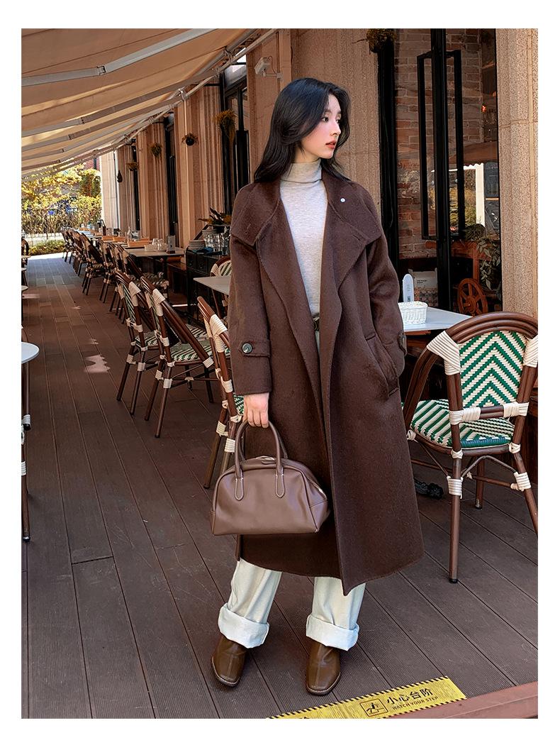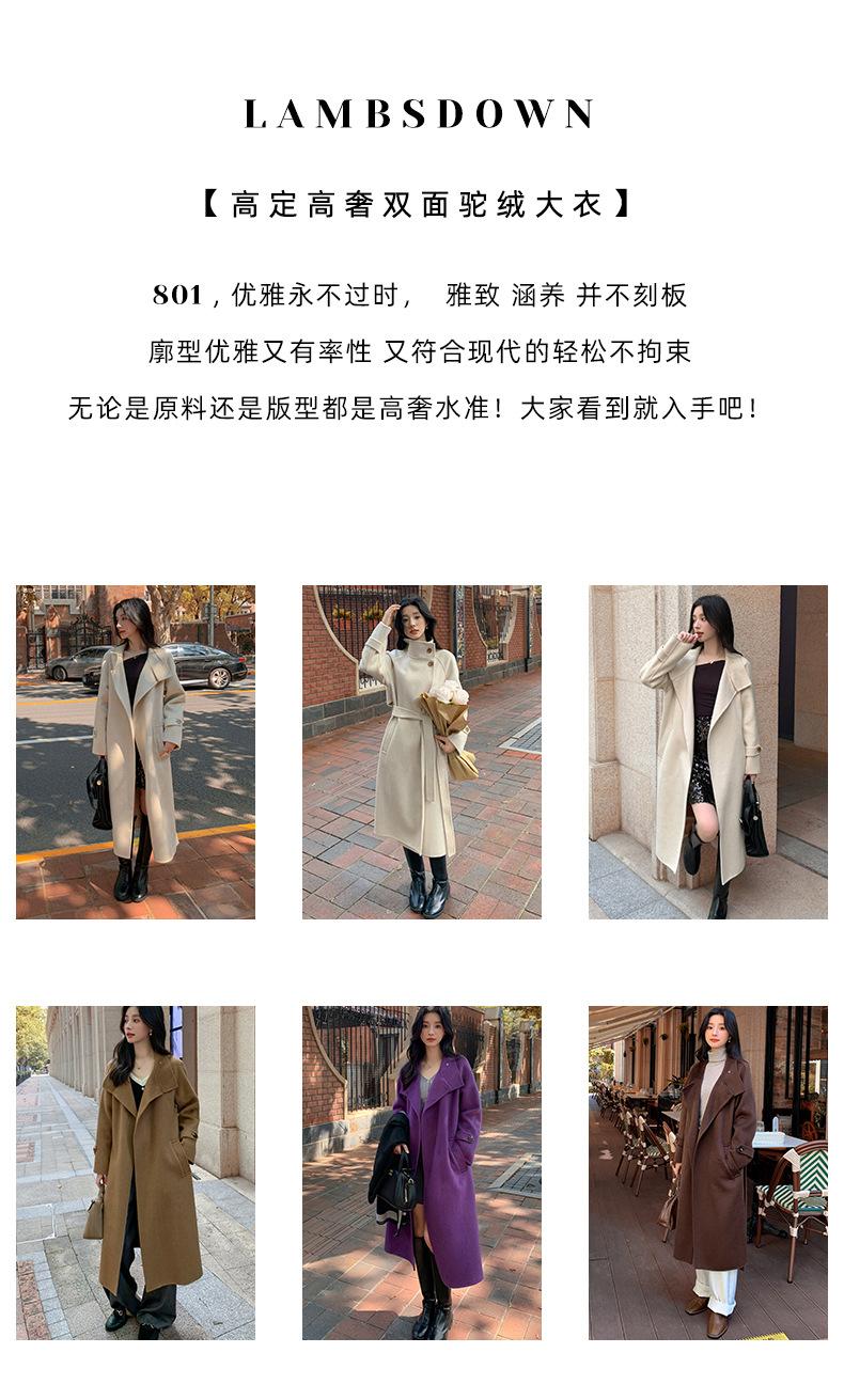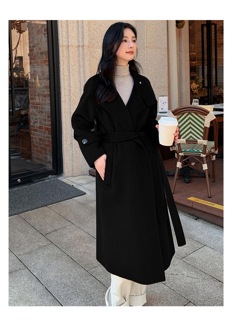 Abrigo de terciopelo camello 30% para mujer, otoño e invierno, nuevo, 2024, con cinturón de cuello vertical, abrigo de lana holgado, abrigo sencillo de lana