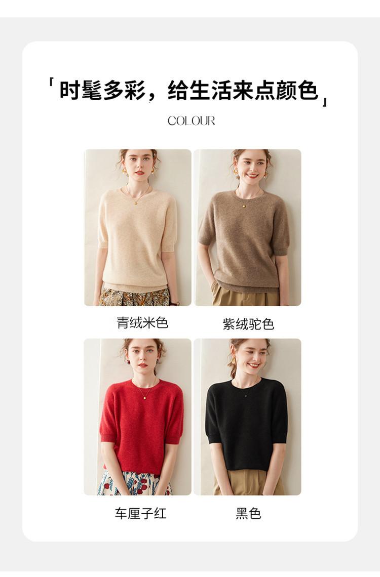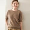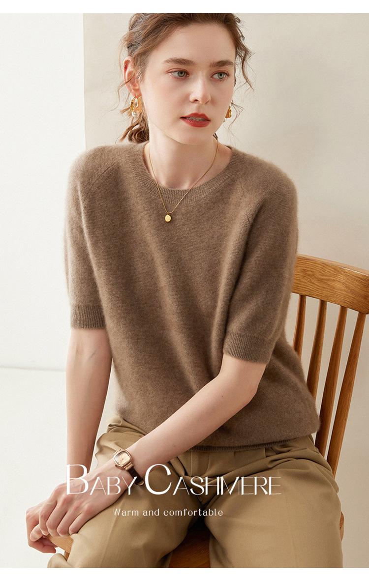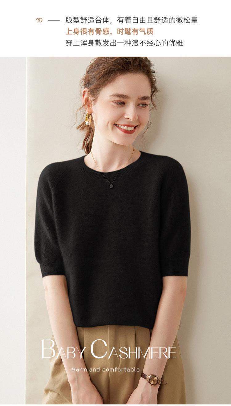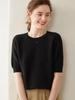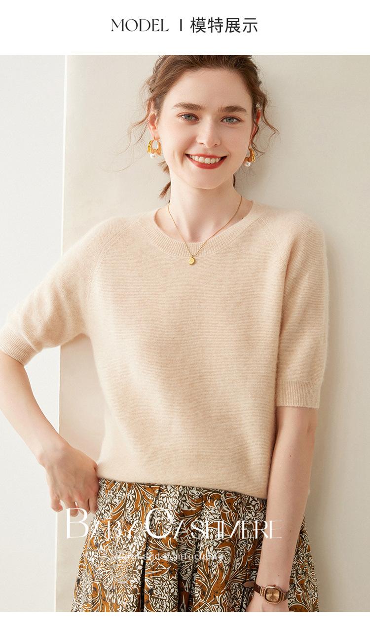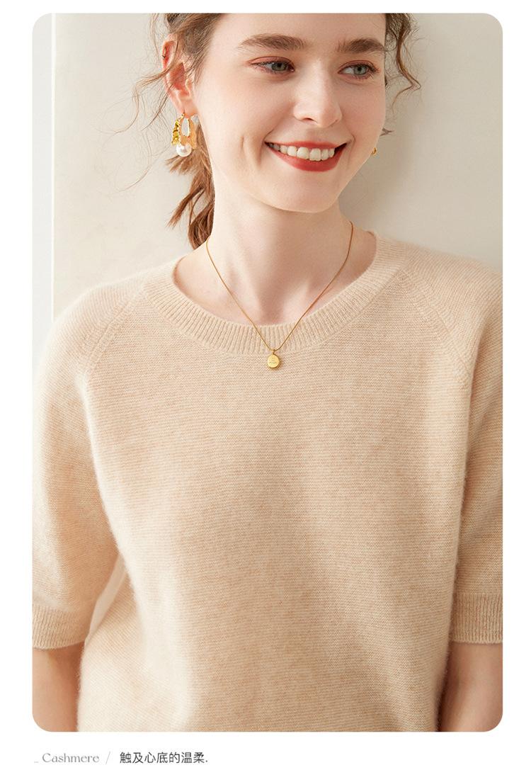 Cuello Redondo Sencillo Color Claro Manga Abullonada Suéter Elegante Suelto Casual Para Viajar Cachemira Suéter de Punto de Media Manga para Mujer