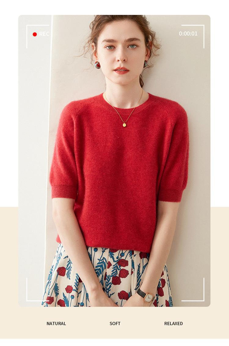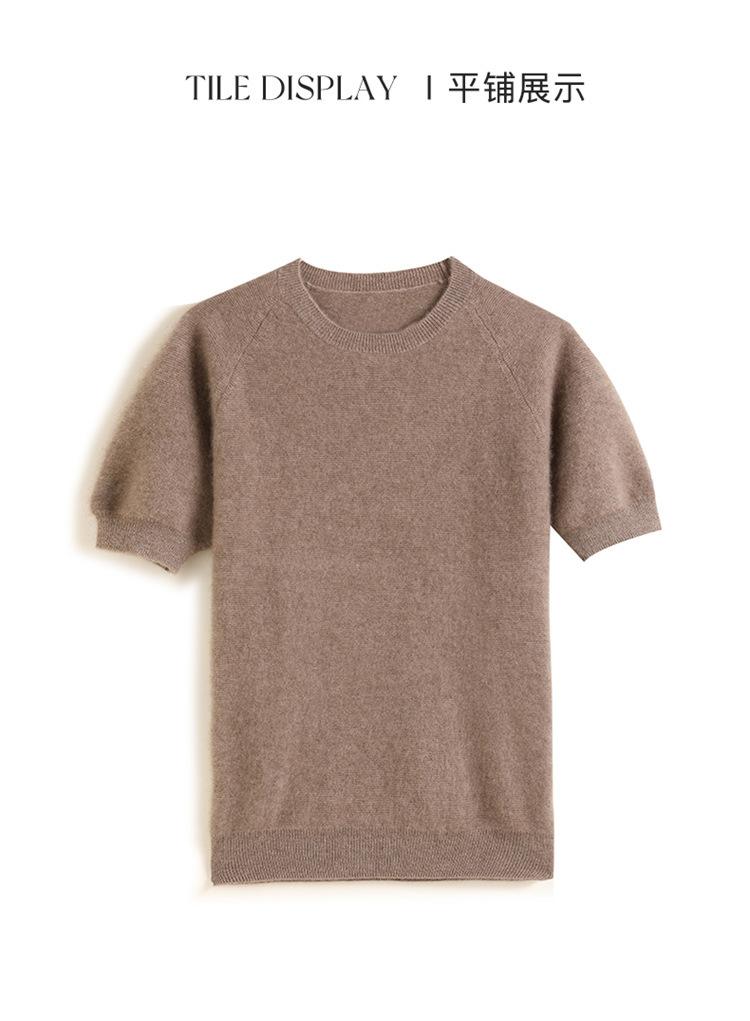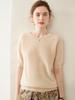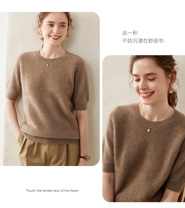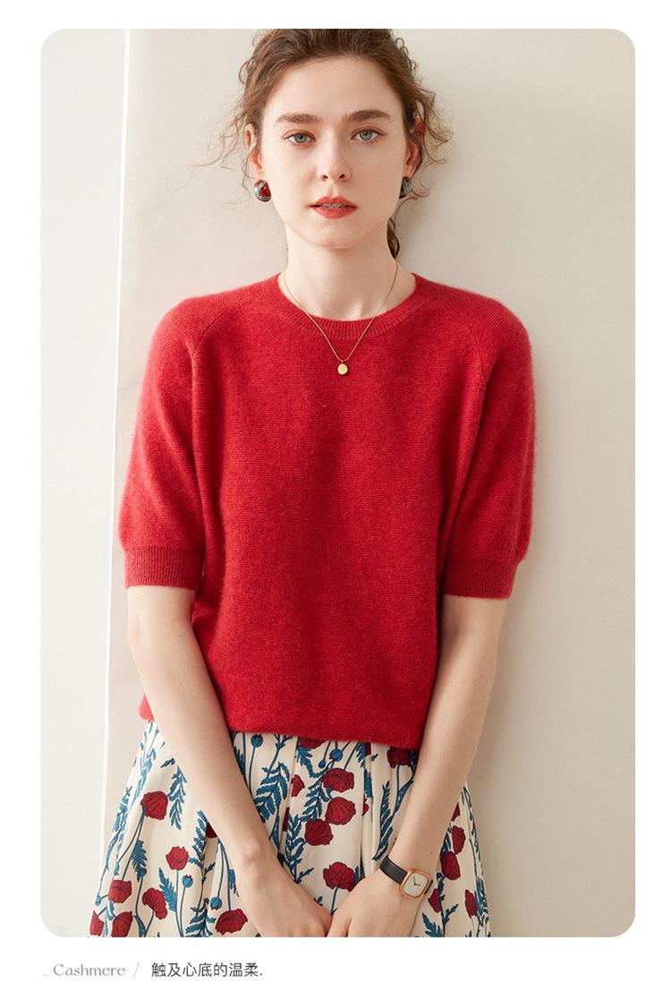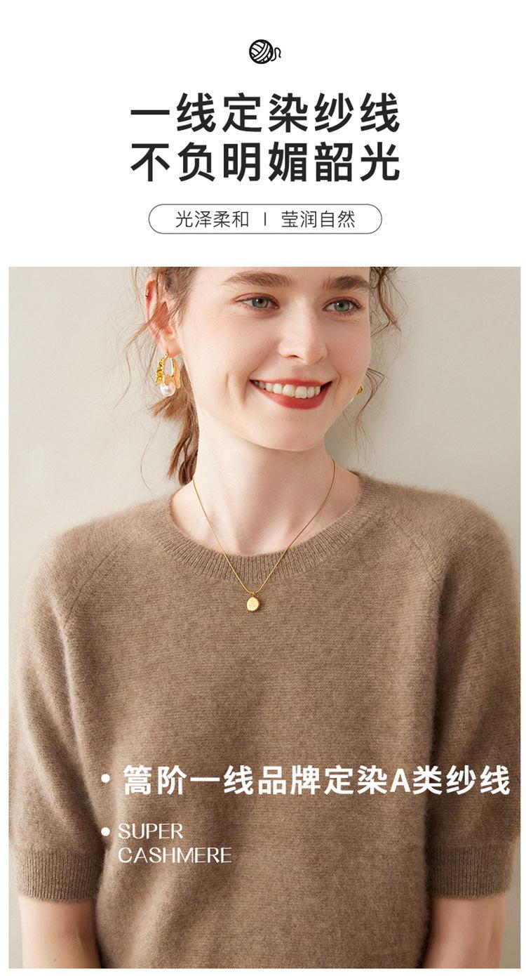 Cuello Redondo Sencillo Color Claro Manga Abullonada Suéter Elegante Suelto Casual Para Viajar Cachemira Suéter de Punto de Media Manga para Mujer