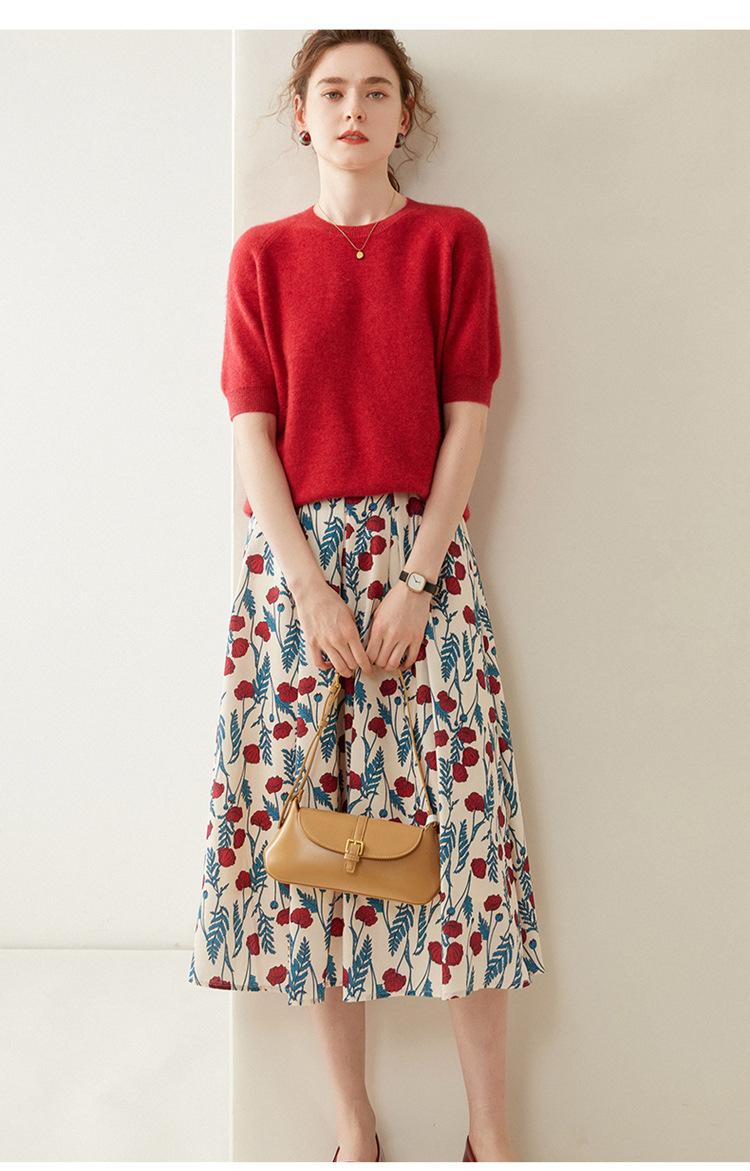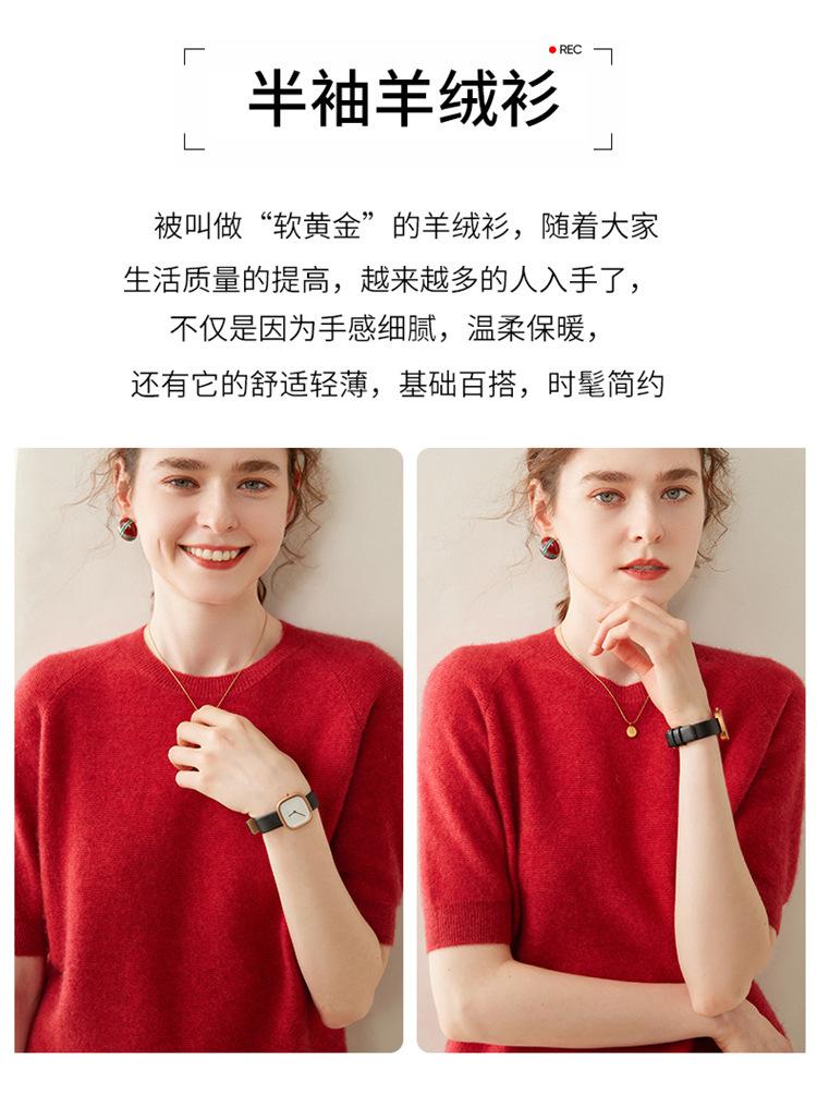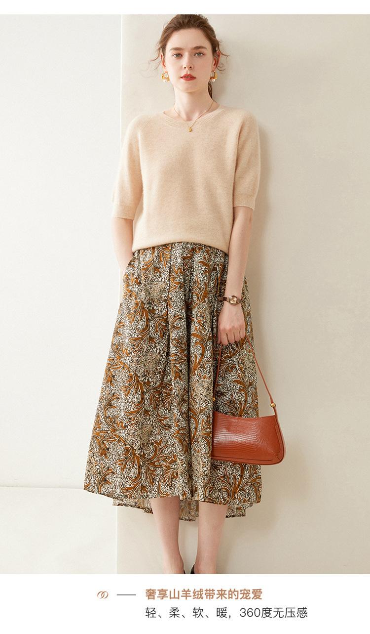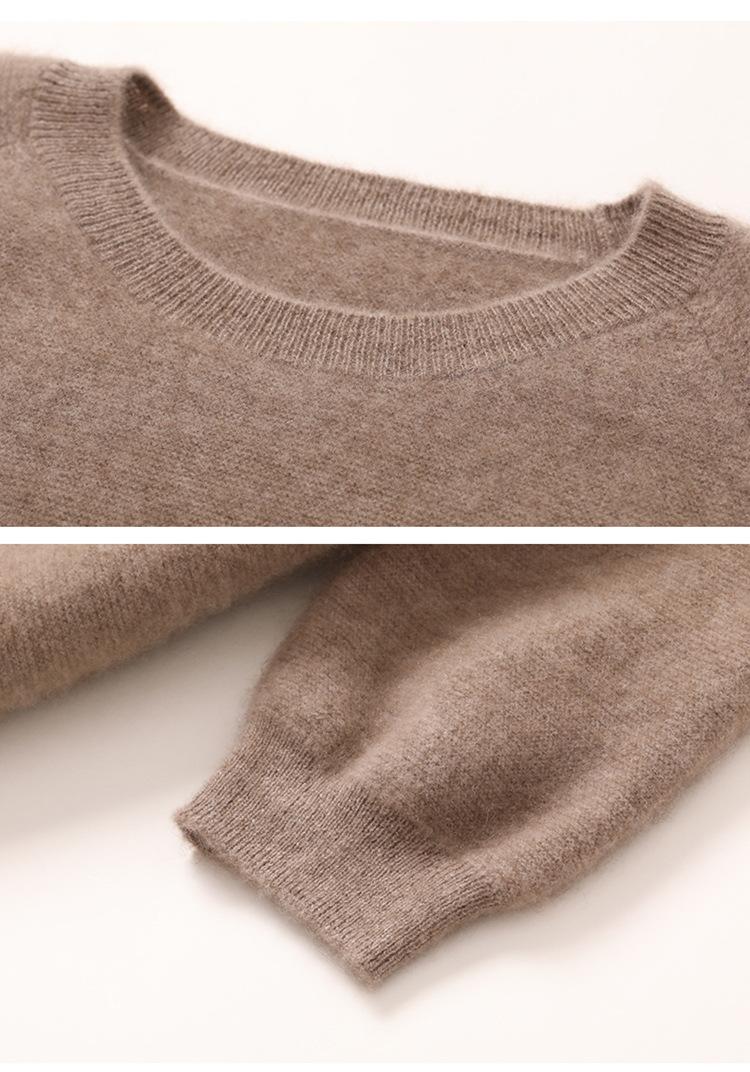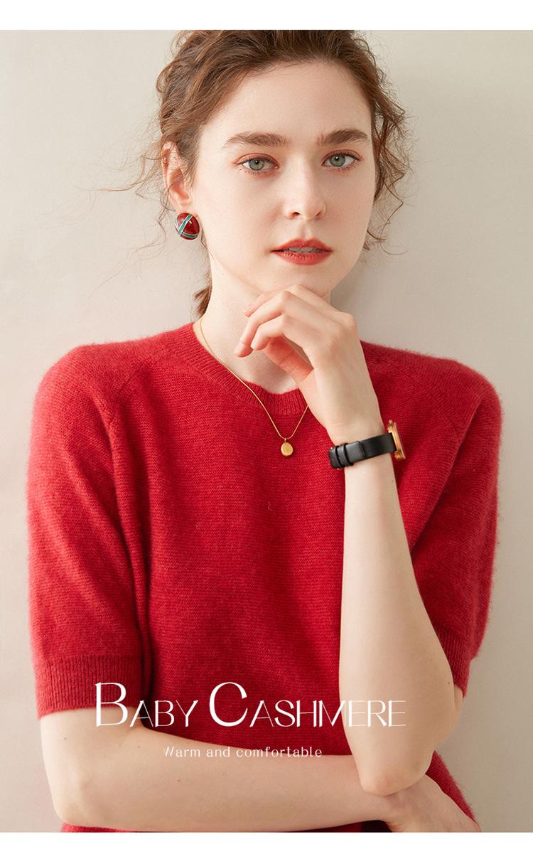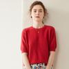 Cuello Redondo Sencillo Color Claro Manga Abullonada Suéter Elegante Suelto Casual Para Viajar Cachemira Suéter de Punto de Media Manga para Mujer