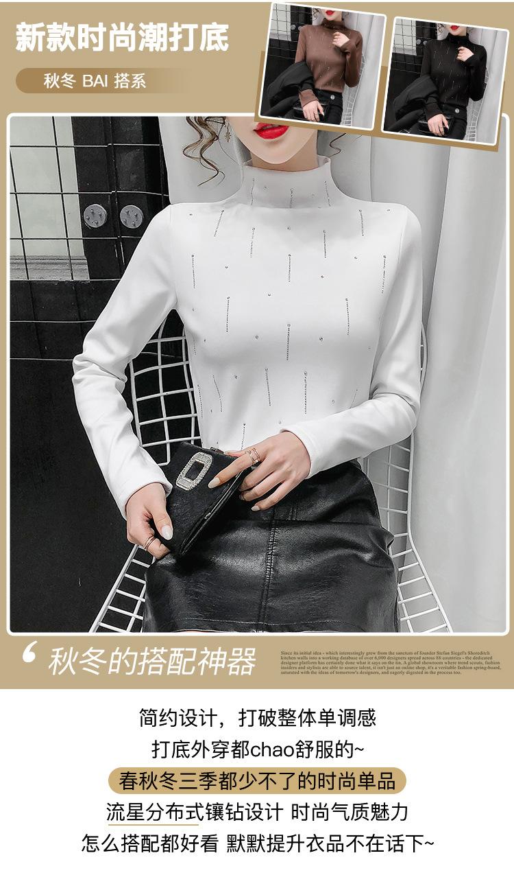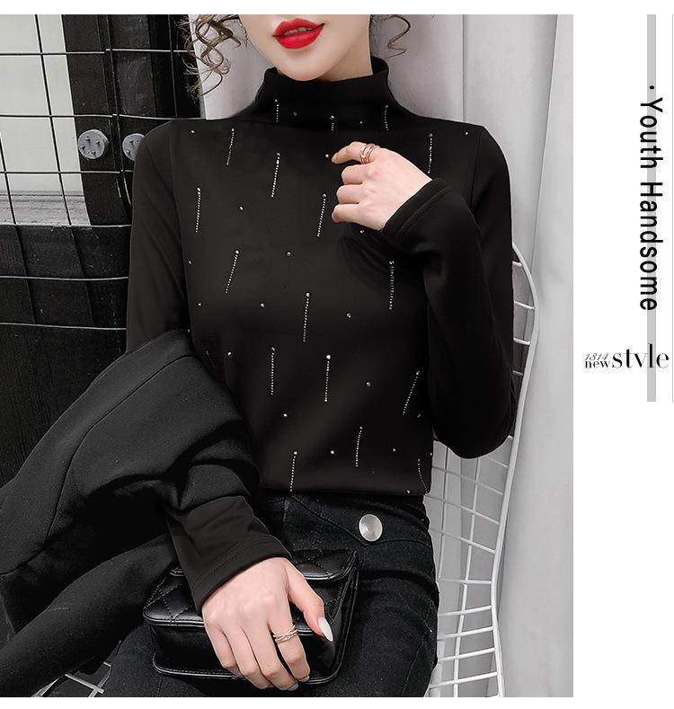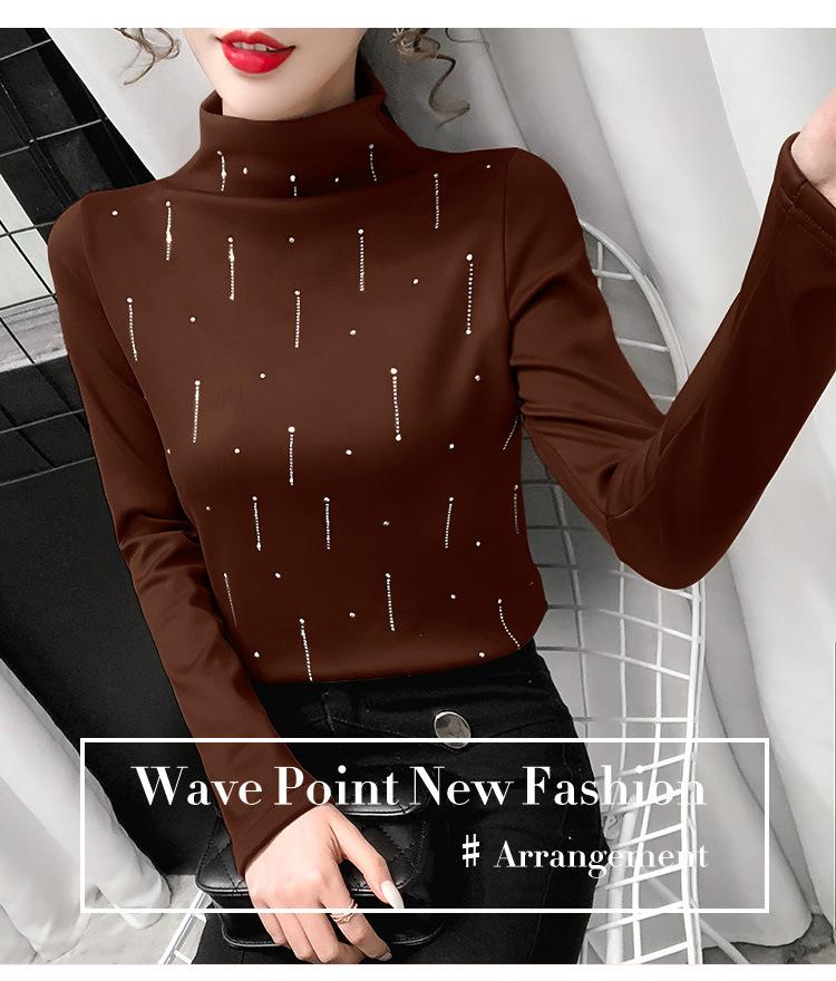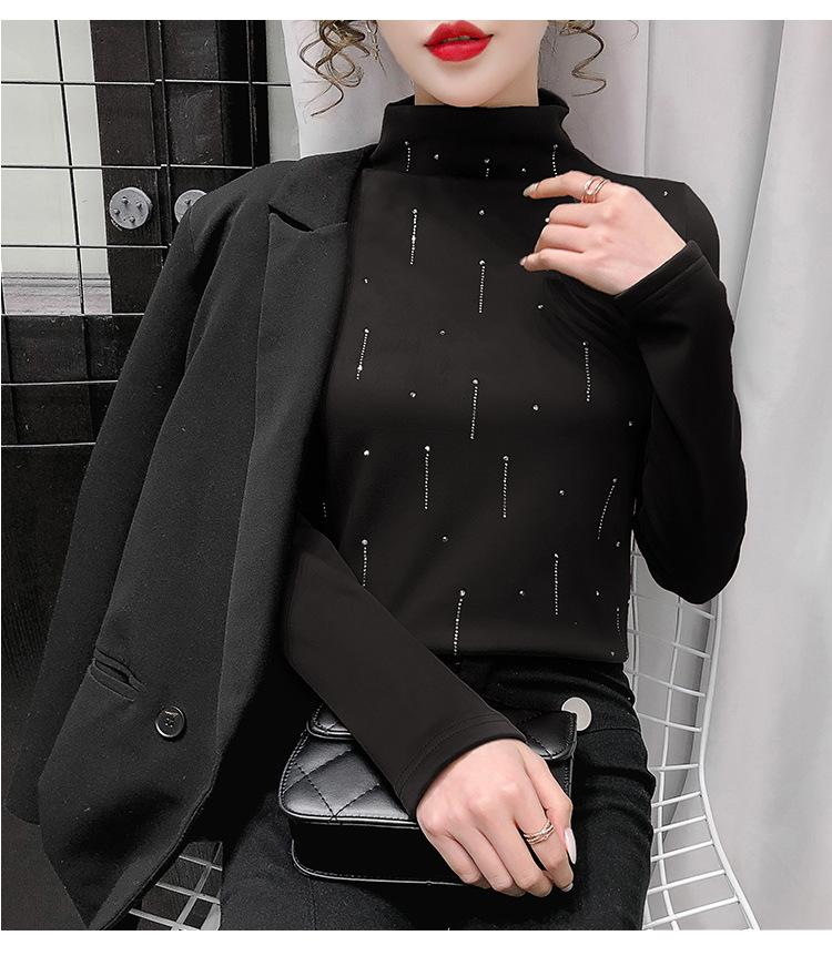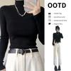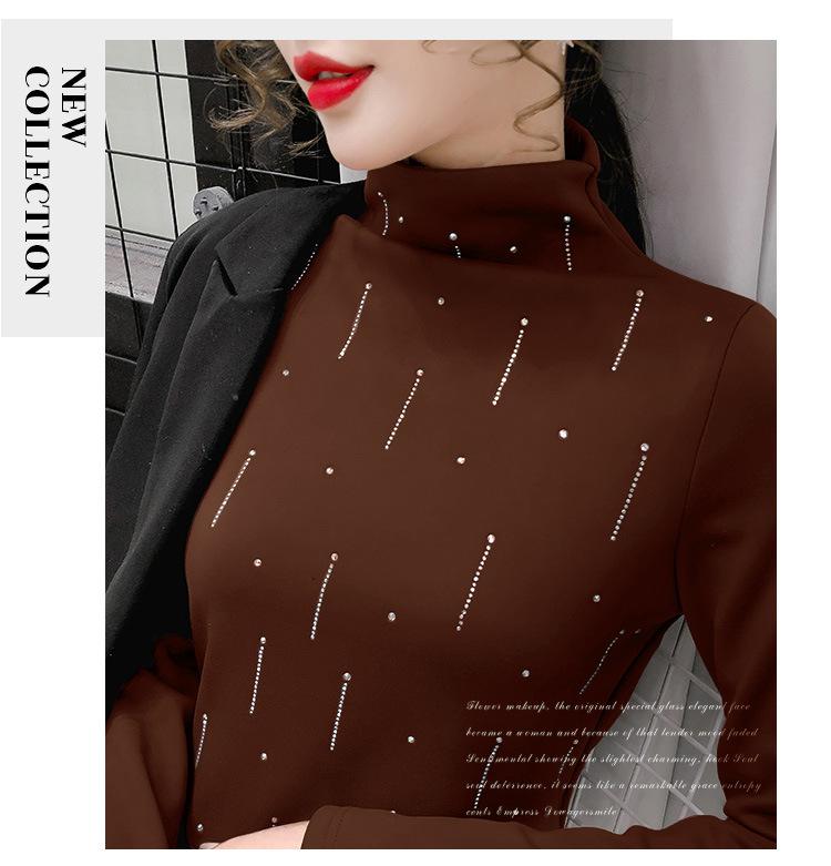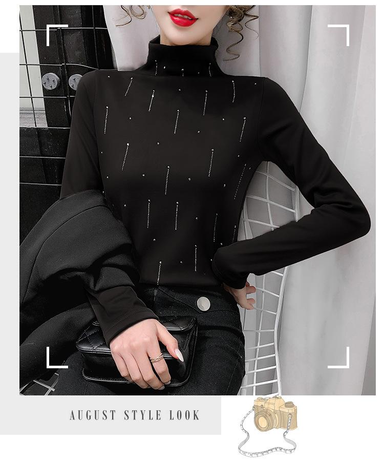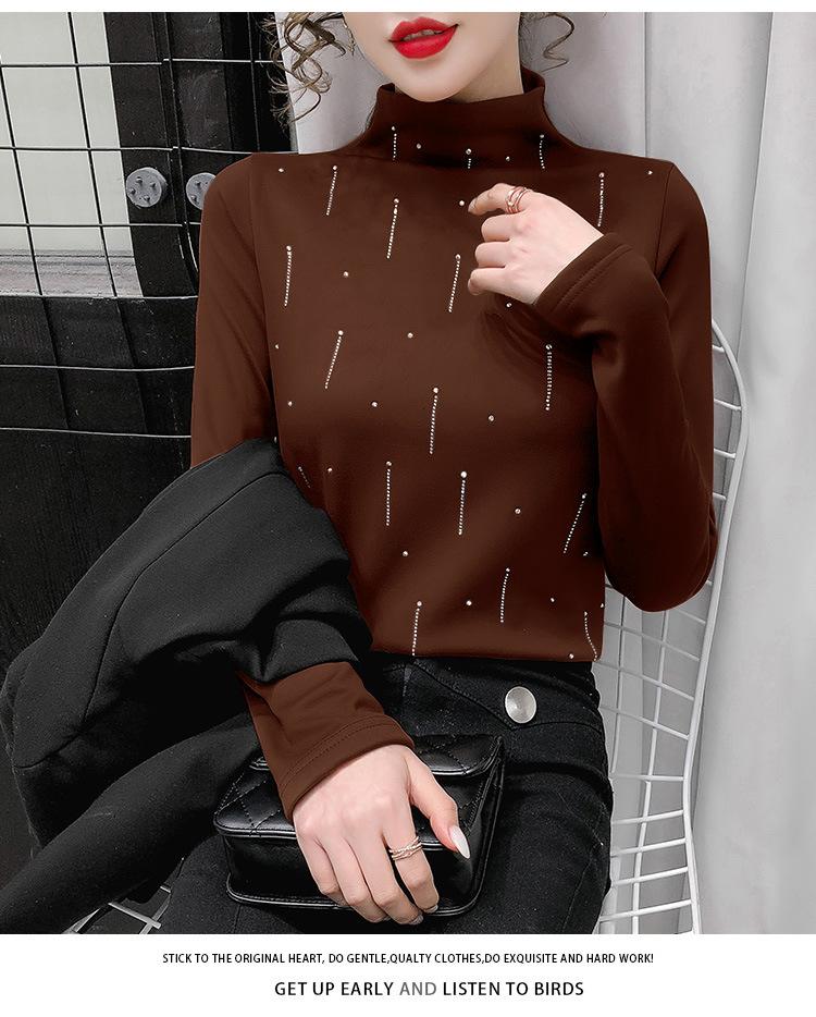 Camiseta Cálida de Cuello Medio Alto para Mujer con Camiseta Nuevo Otoño e Invierno 2024 Estilo Europeo Caliente Camiseta de Terciopelo Alemán de Doble Cara