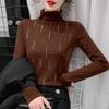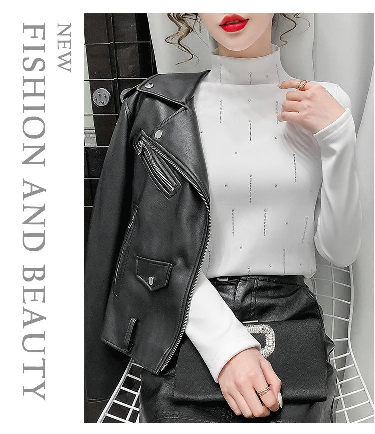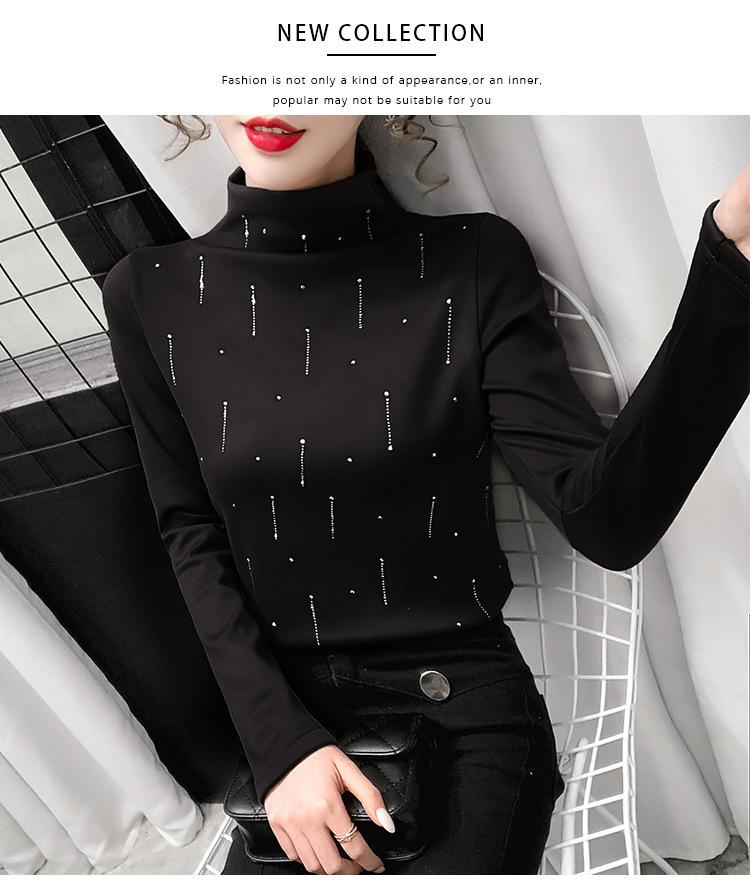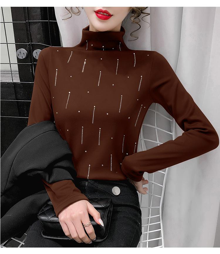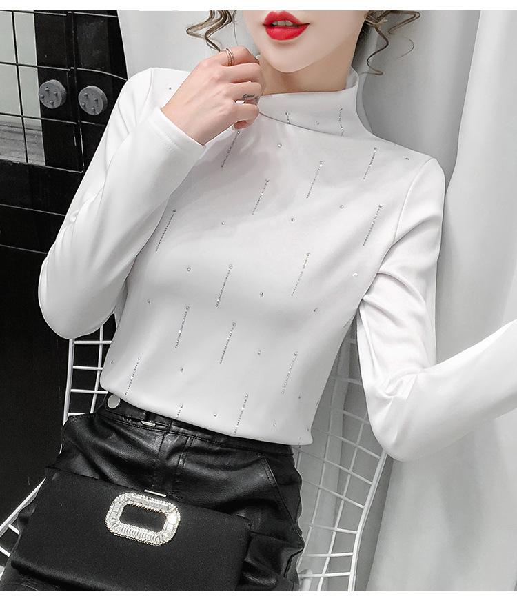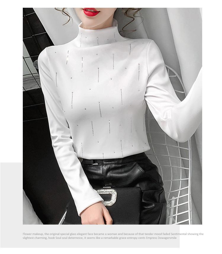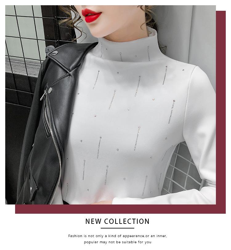 Camiseta Cálida de Cuello Medio Alto para Mujer con Camiseta Nuevo Otoño e Invierno 2024 Estilo Europeo Caliente Camiseta de Terciopelo Alemán de Doble Cara