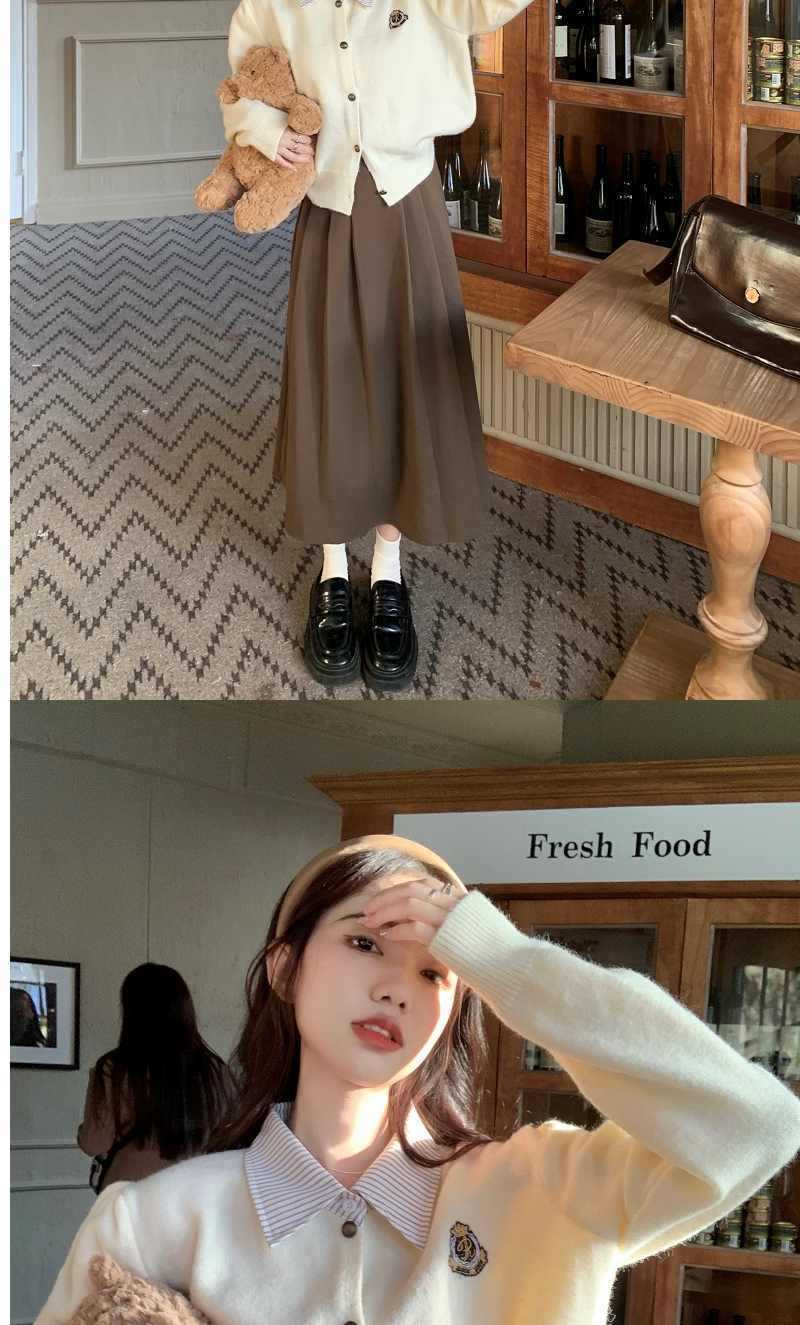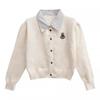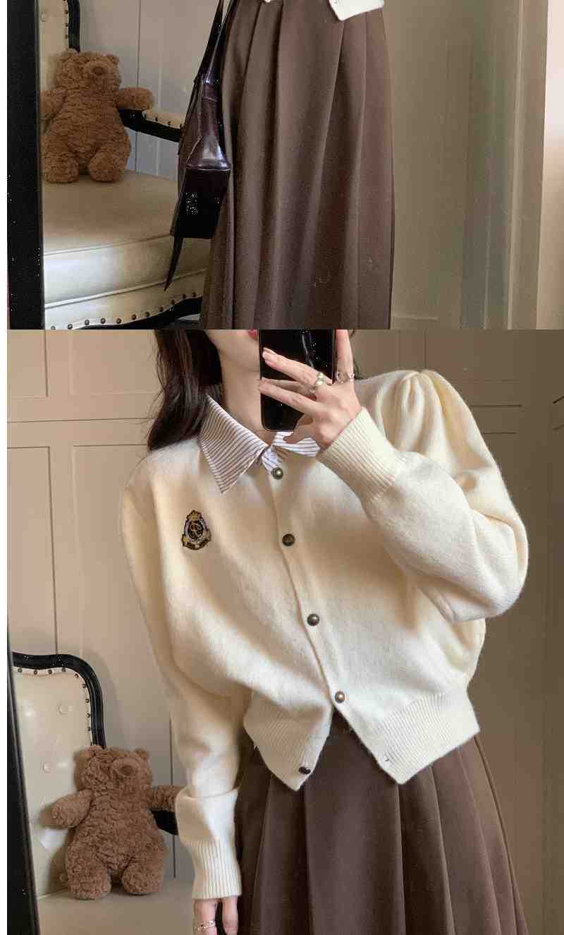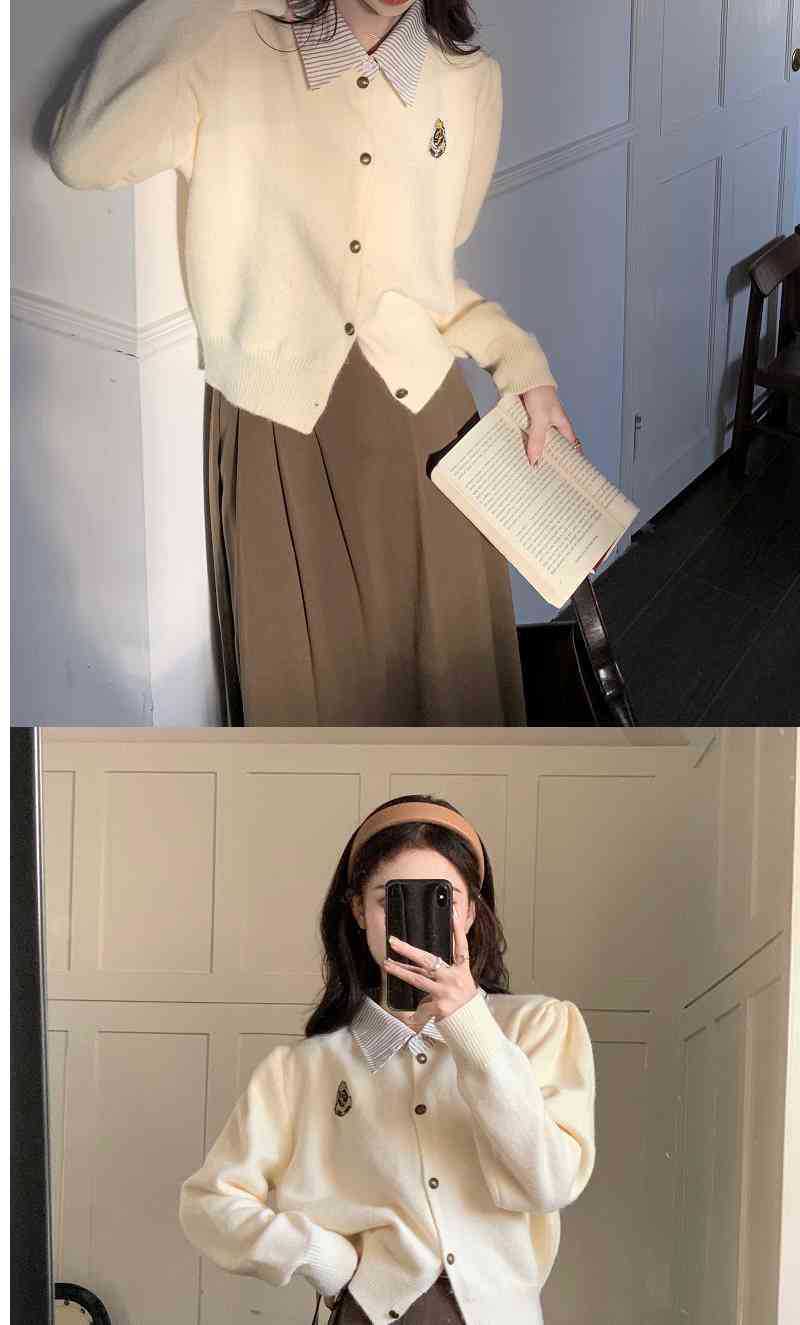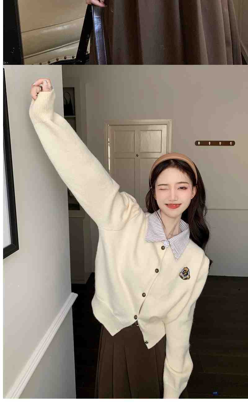 Chaqueta Suéter Polo Falso de Dos Piezas para Mujer Primavera Nuevo Estilo Preppy Coreano Chic Top Cárdigan de Punto Corto