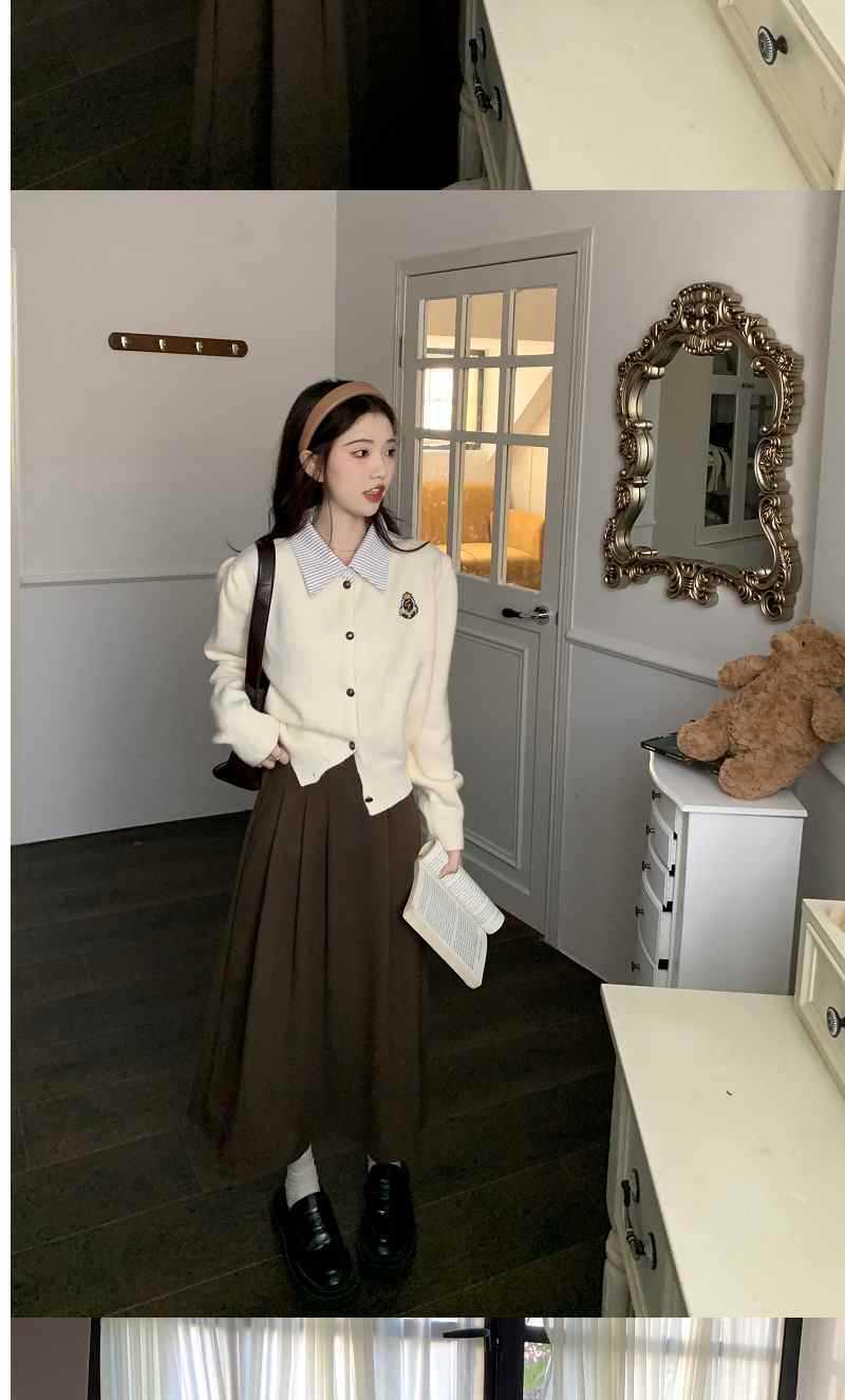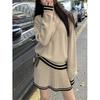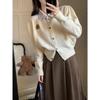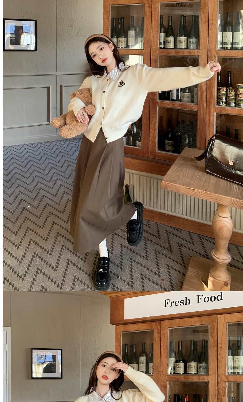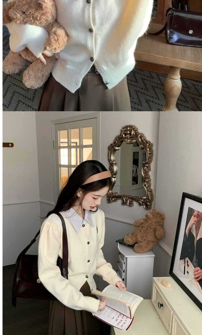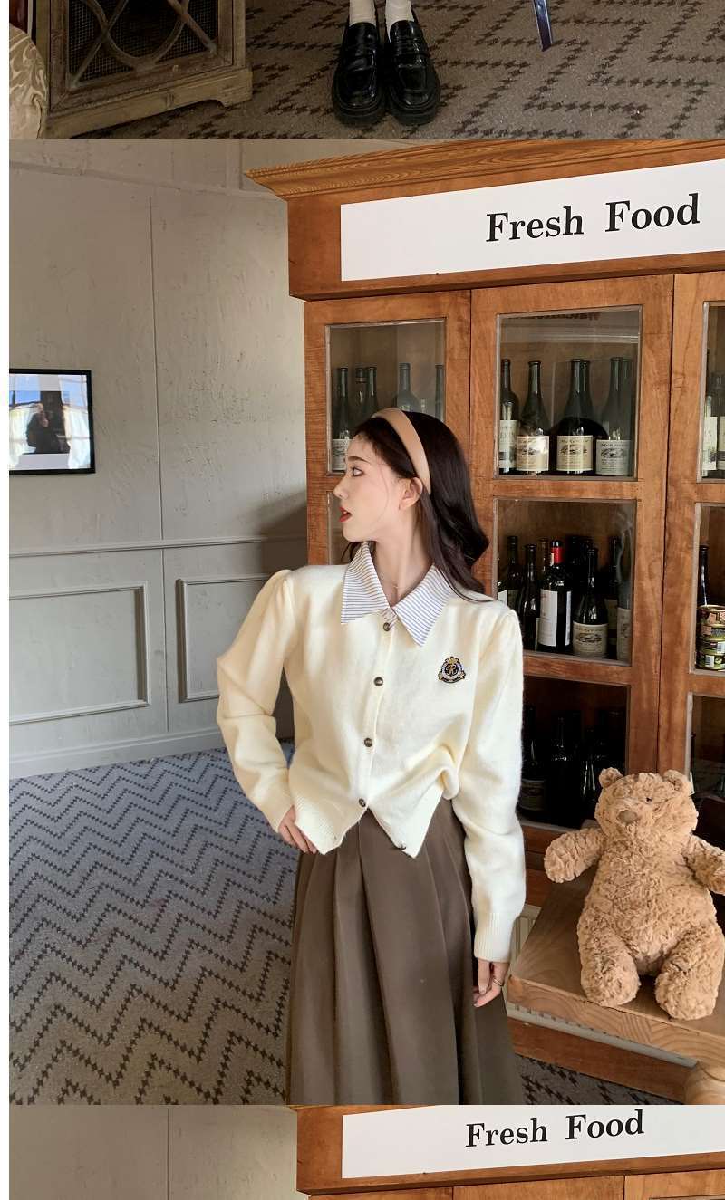Chaqueta Suéter Polo Falso de Dos Piezas para Mujer Primavera Nuevo Estilo Preppy Coreano Chic Top Cárdigan de Punto Corto