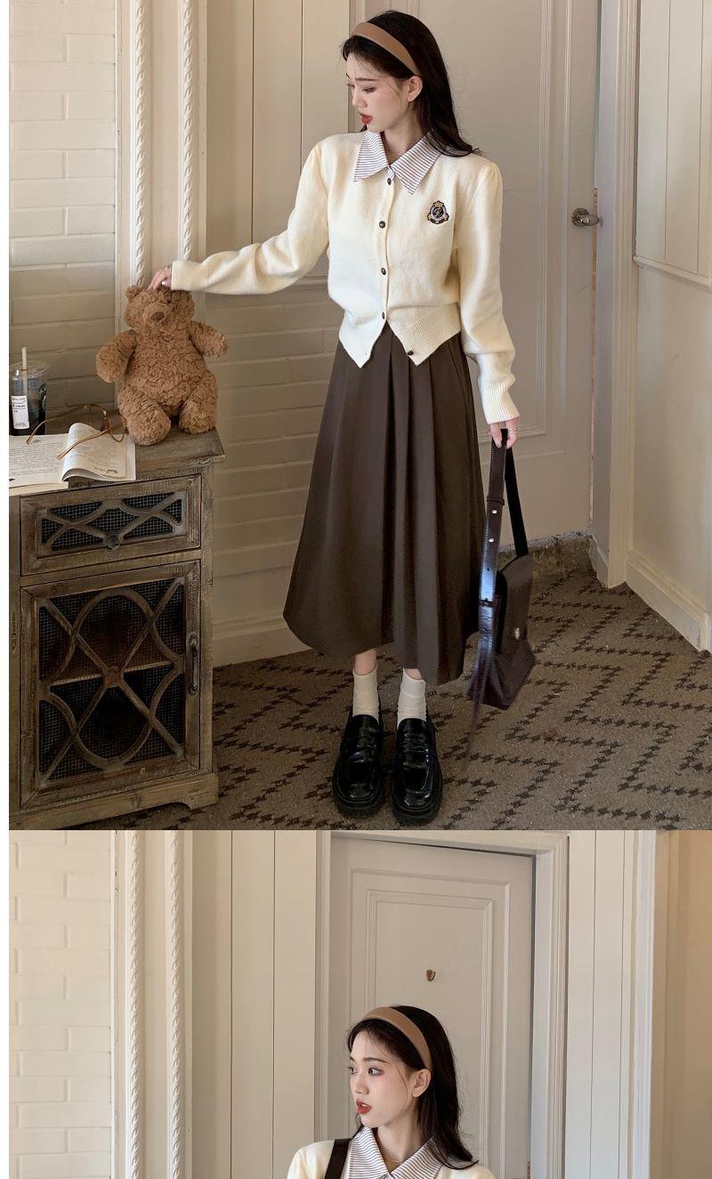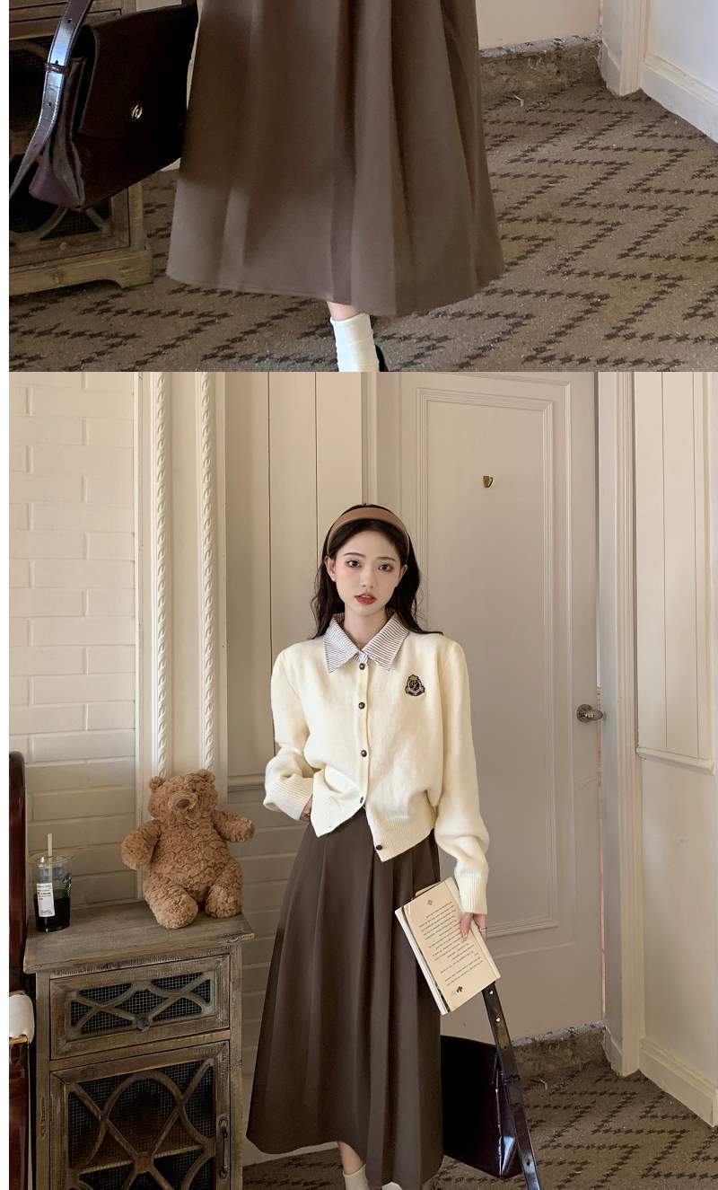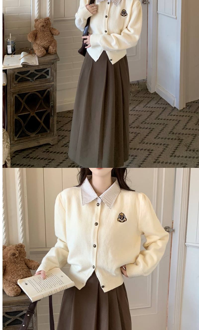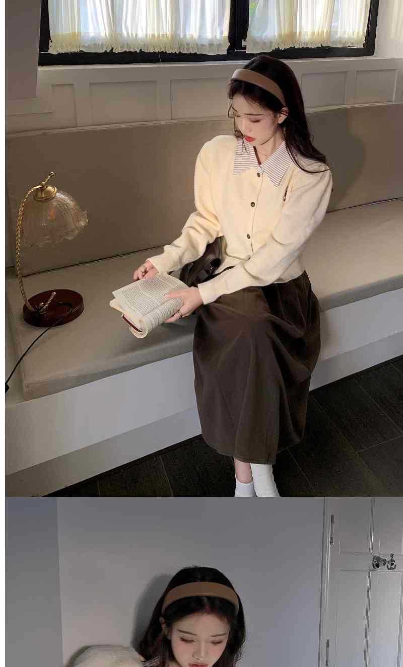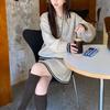 Chaqueta Suéter Polo Falso de Dos Piezas para Mujer Primavera Nuevo Estilo Preppy Coreano Chic Top Cárdigan de Punto Corto