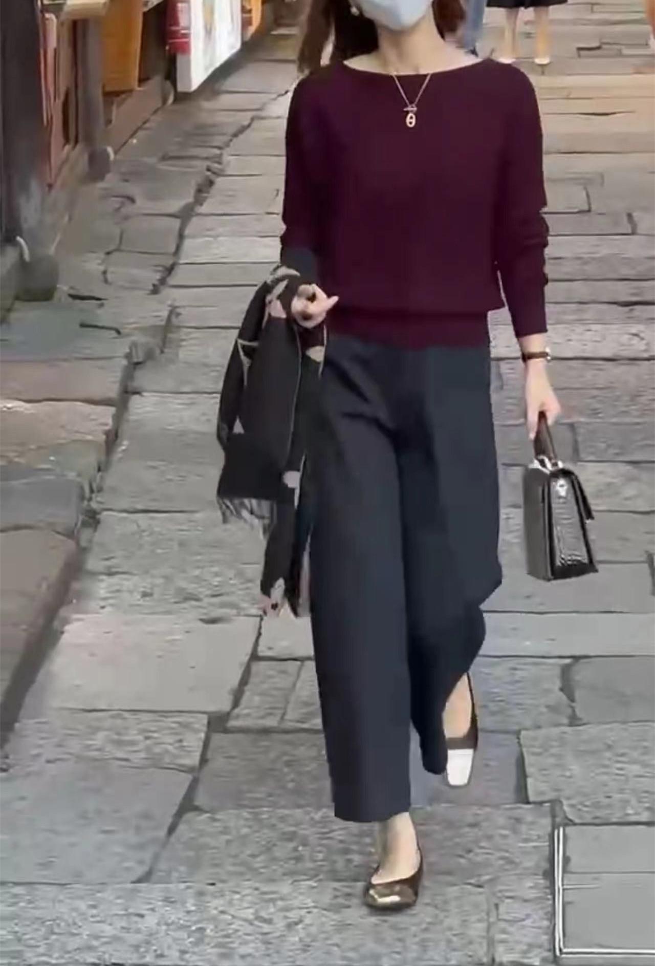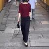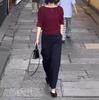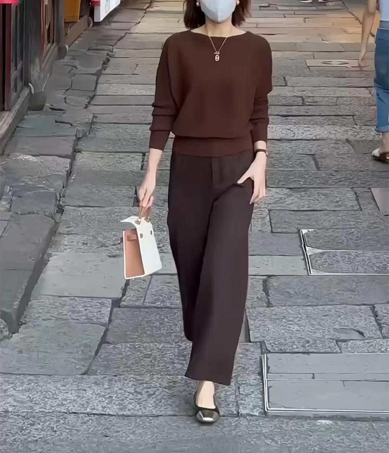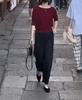 24839 Gran Amor Meiyuan 2025 Otoño Nuevo Color Sólido Cuello Redondo Manga Media Top Drapeado Pantalones Casuales Mujeres a la Moda