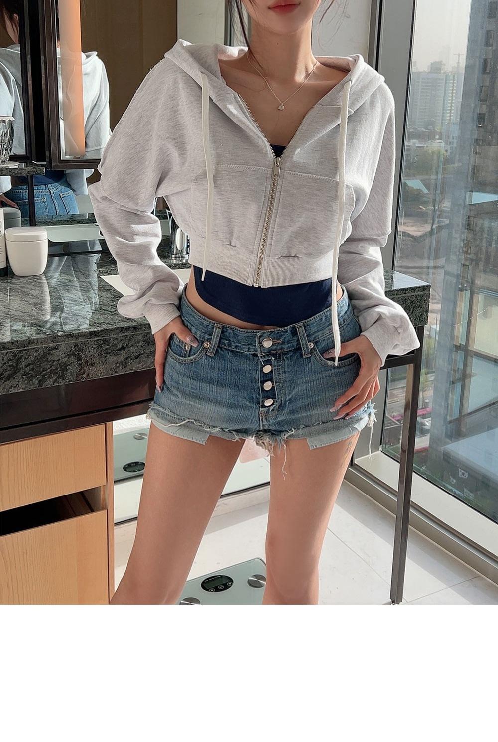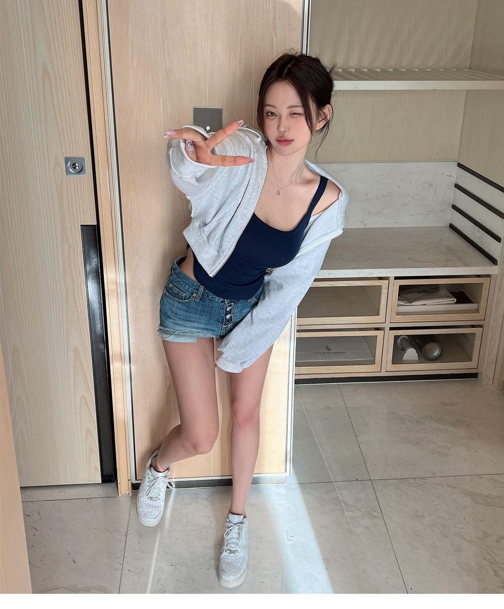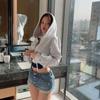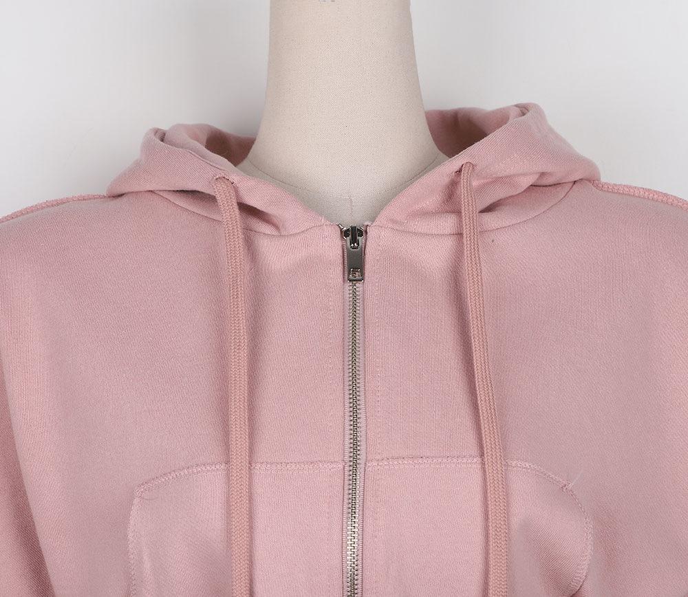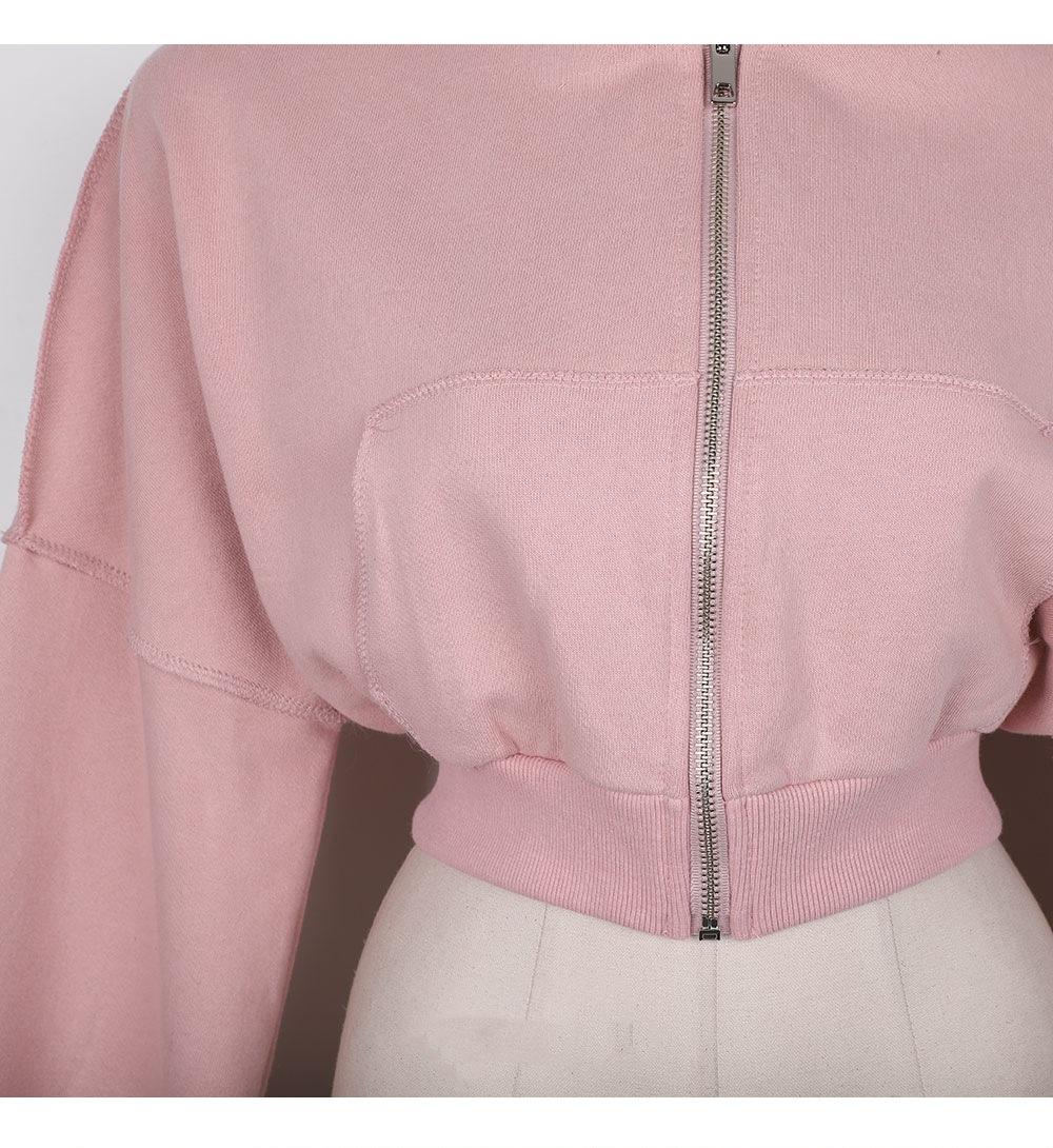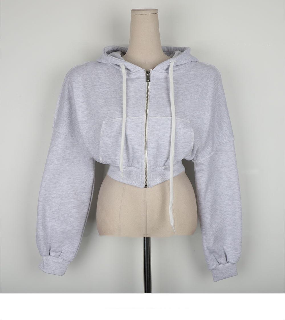 2025 Primavera y Otoño Nuevo Estilo Coreano Chic Chaqueta con Capucha con Cremallera Algodón Puro Moderno Casual Más Fácil de Combinar Temperamento Suéter Corto Mujer