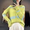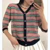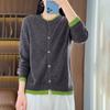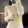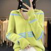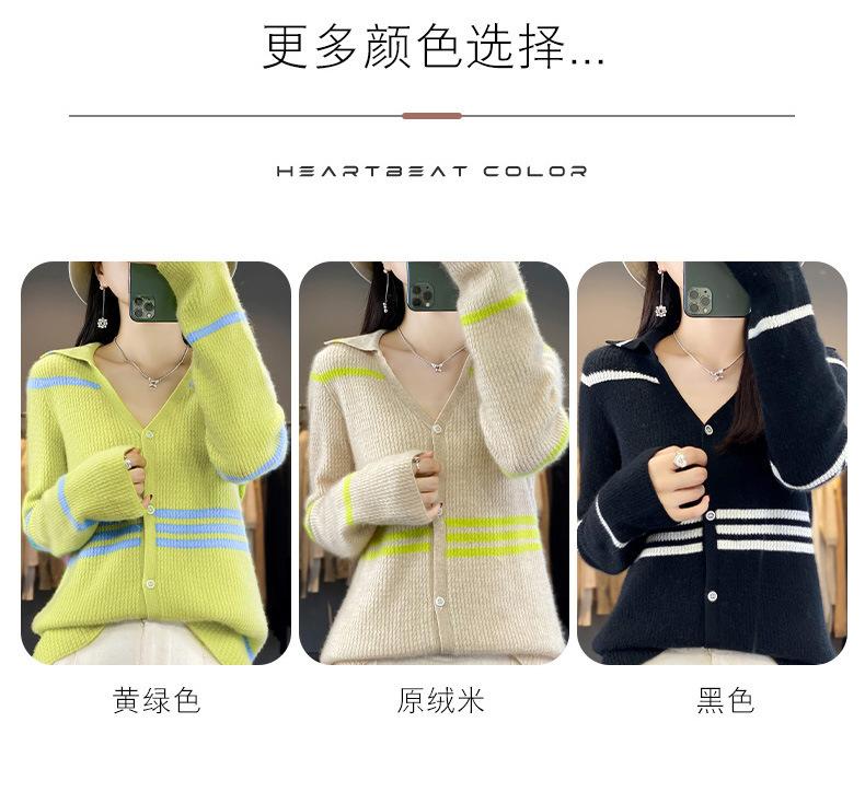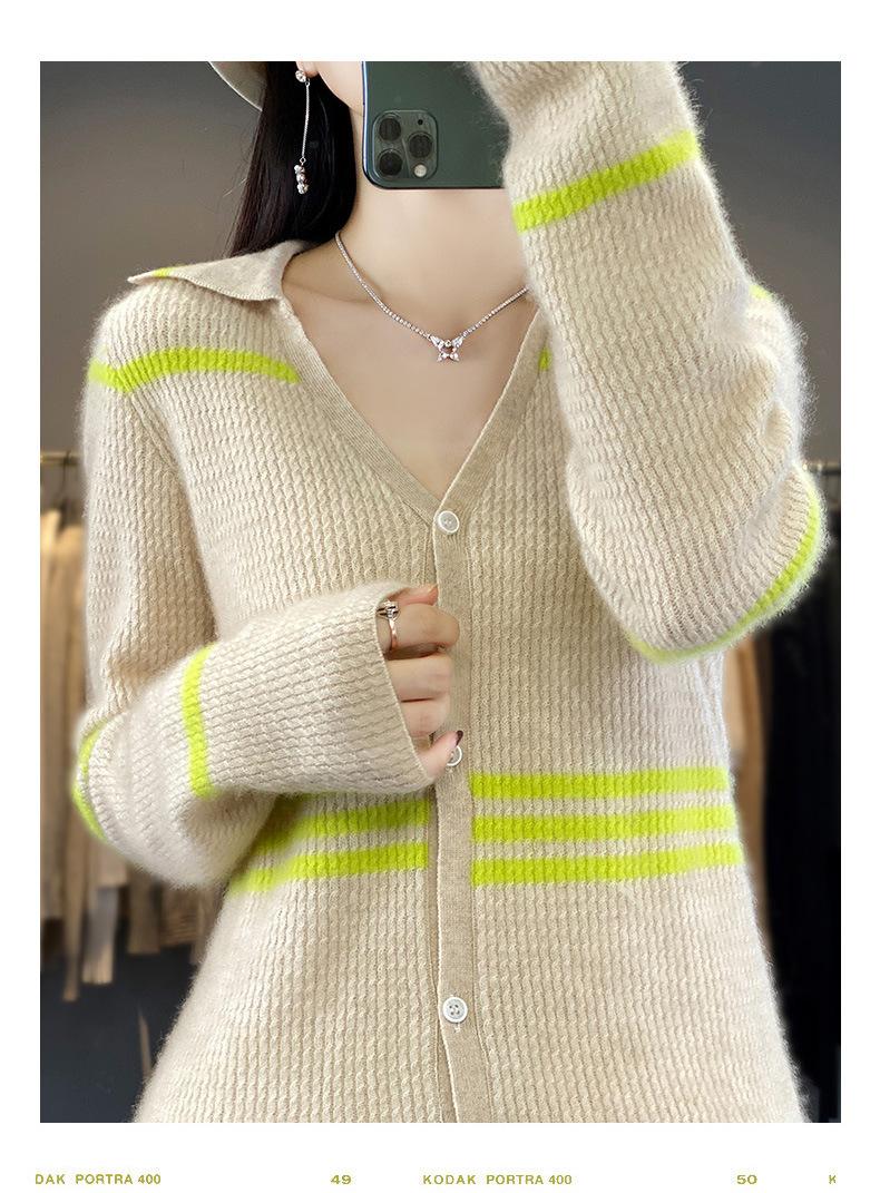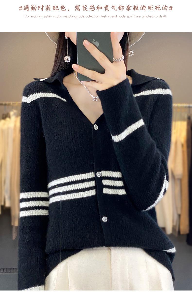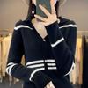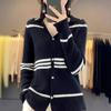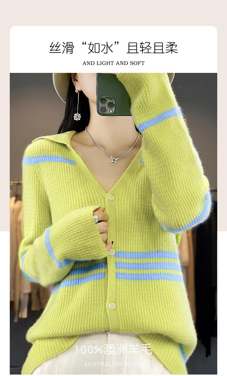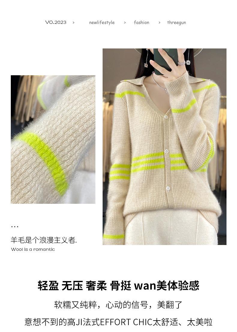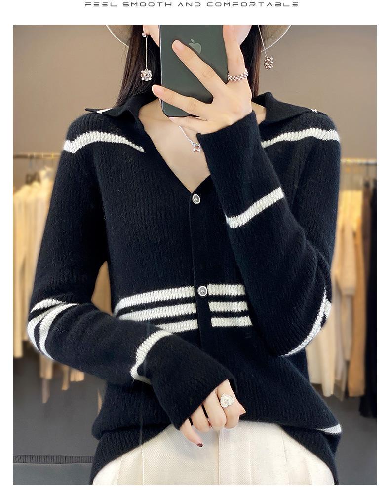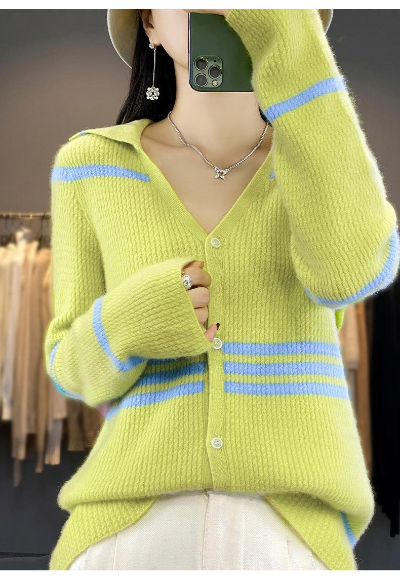 Cárdigan de lana a rayas en contraste para mujer, elegante, sencillo, informal, para ir al trabajo, con hebilla y base de cachemira