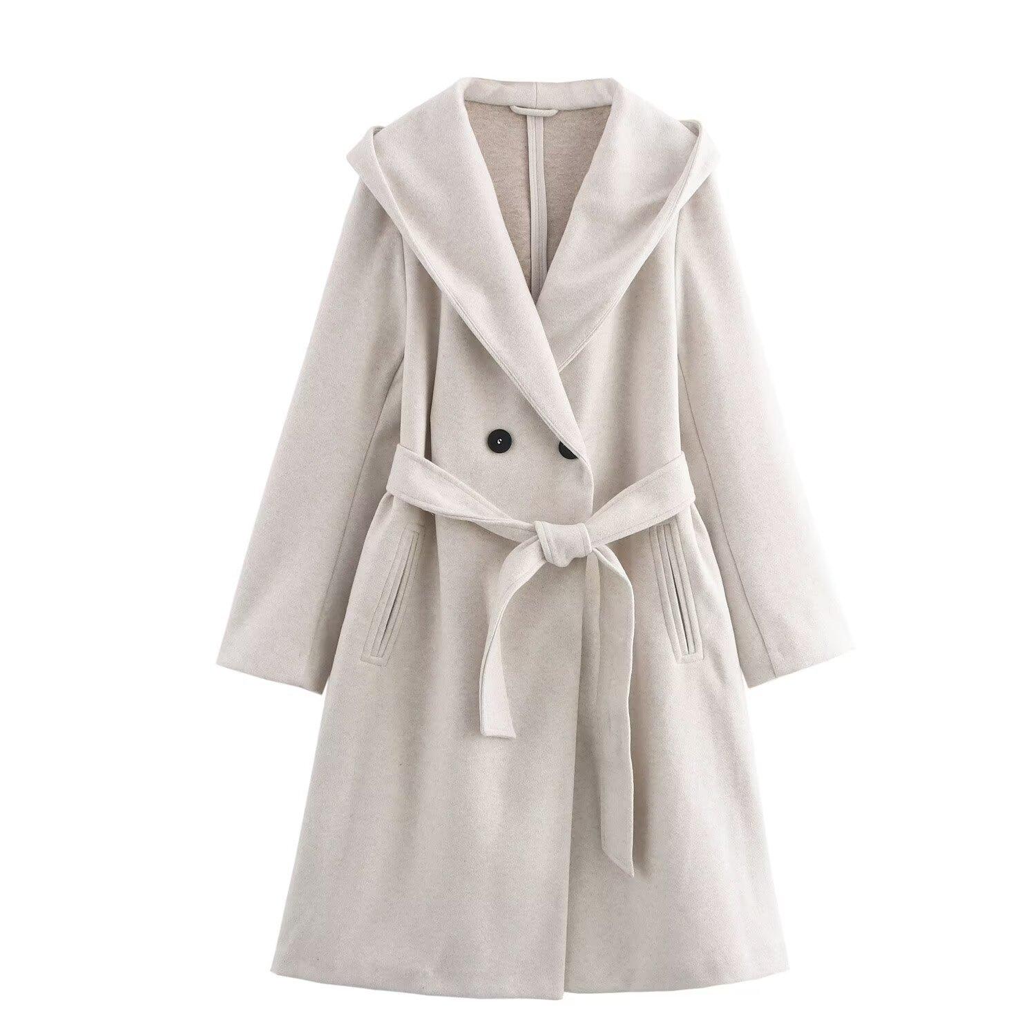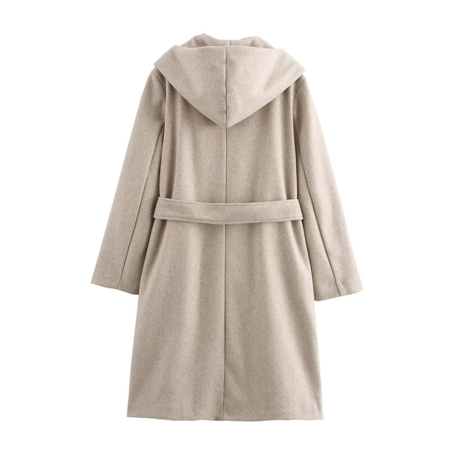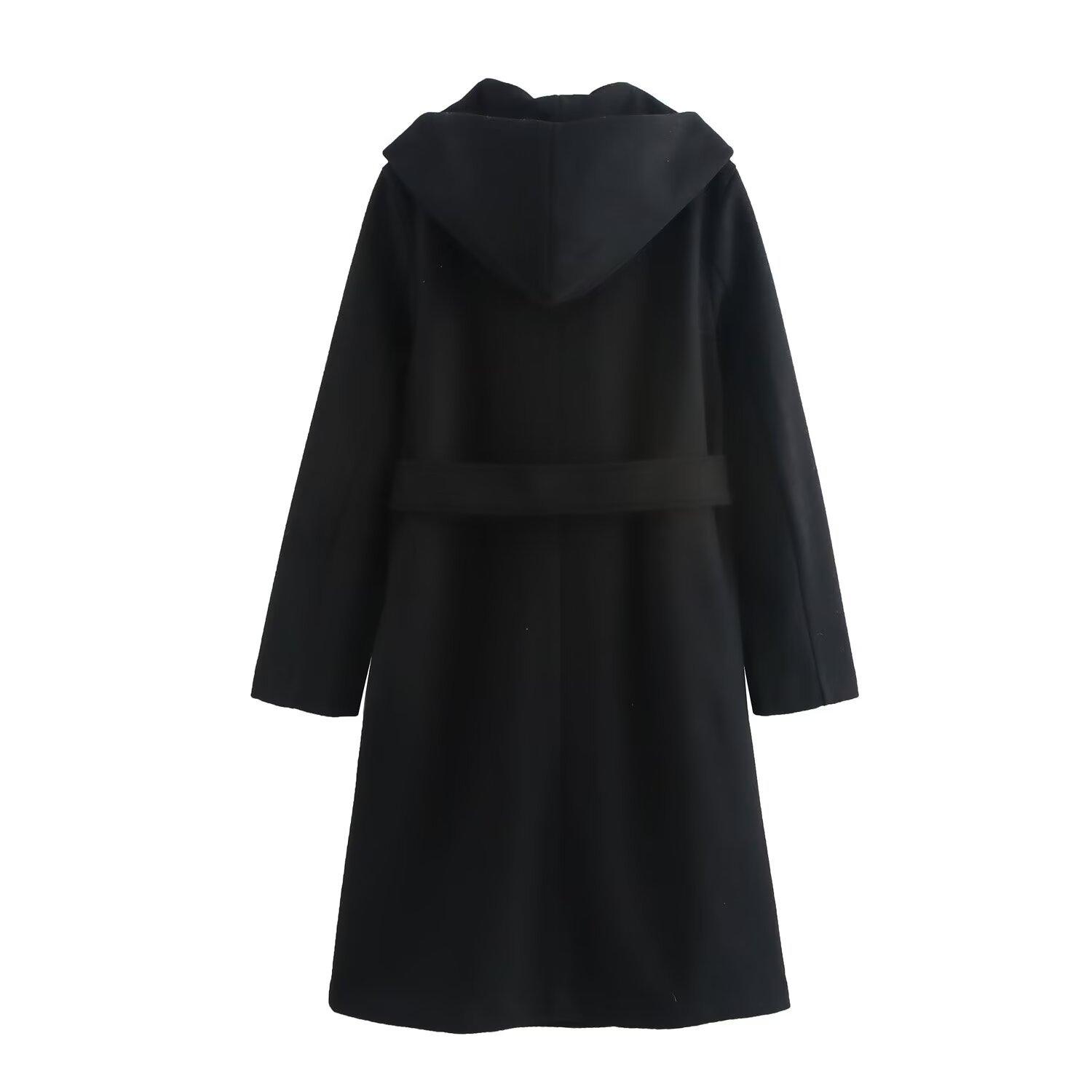 2024 Invierno Nuevos Productos Ropa de Mujer Transfronteriza Europea y Americana, Abrigo Largo con Capucha Elegante y con Cinturón W025 10846