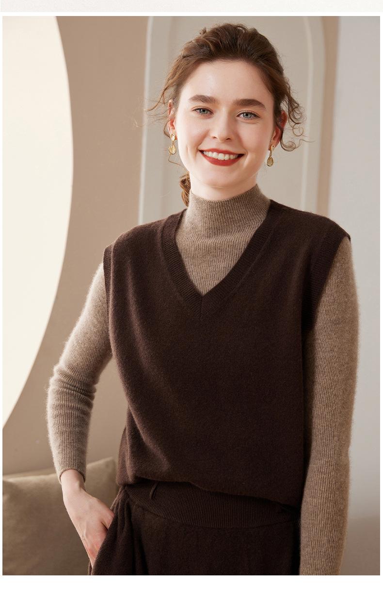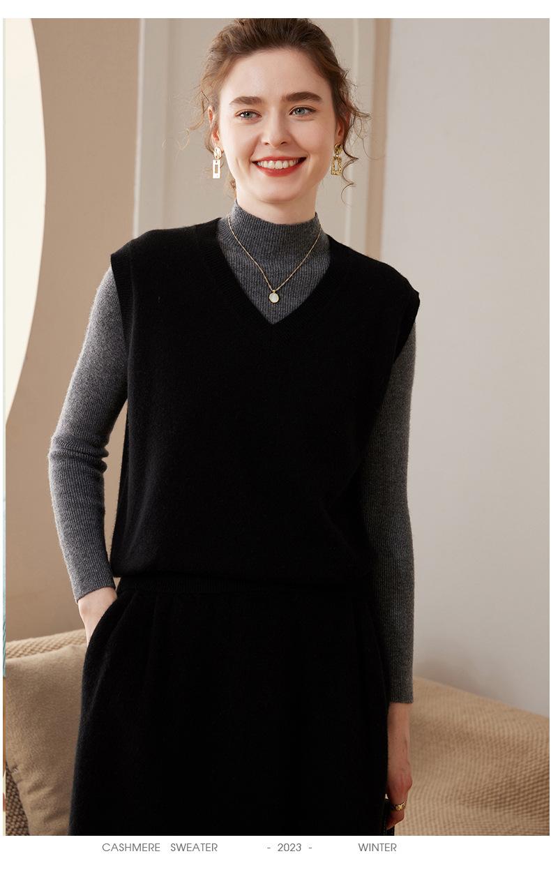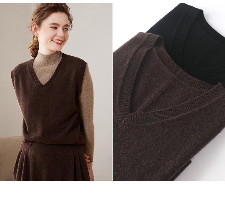Chaleco de punto de cachemira para mujer, otoño e invierno 2024, moderno, combinable, holgado, superpuesto y cómodo.