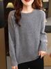 Suéter de lana pura con cuello redondo para mujer, jersey holgado, elegante, informal, sencillo, de manga larga, cálido, básico