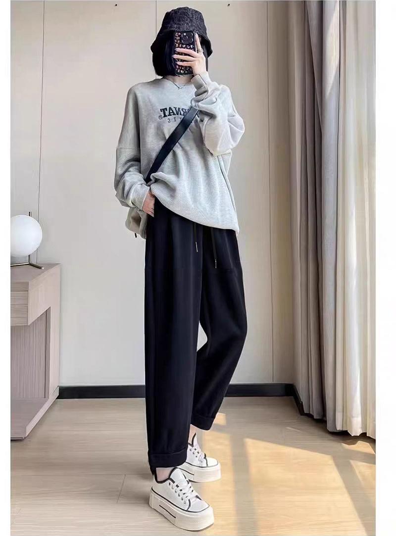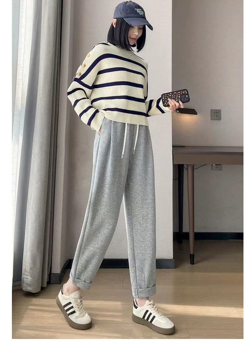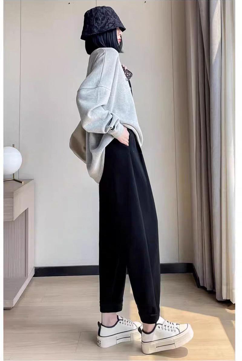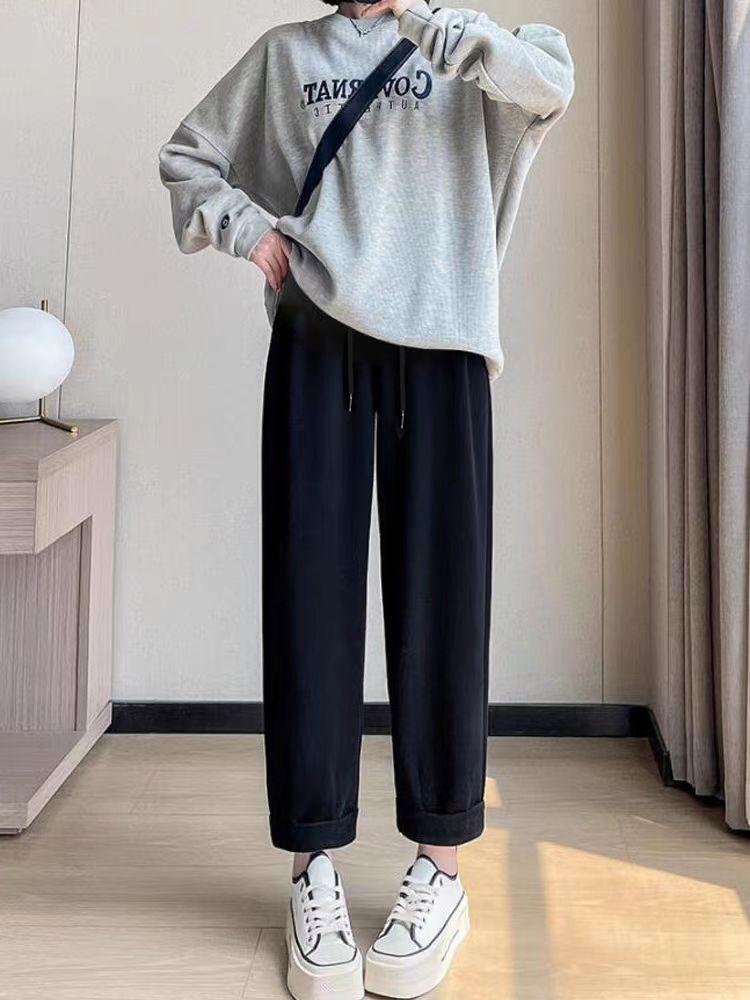 Ropa para embarazadas, pantalones para embarazadas, otoño e invierno, sin soporte abdominal, pantalones anchos y holgados con cordón, pantalones casuales coreanos de abuela.