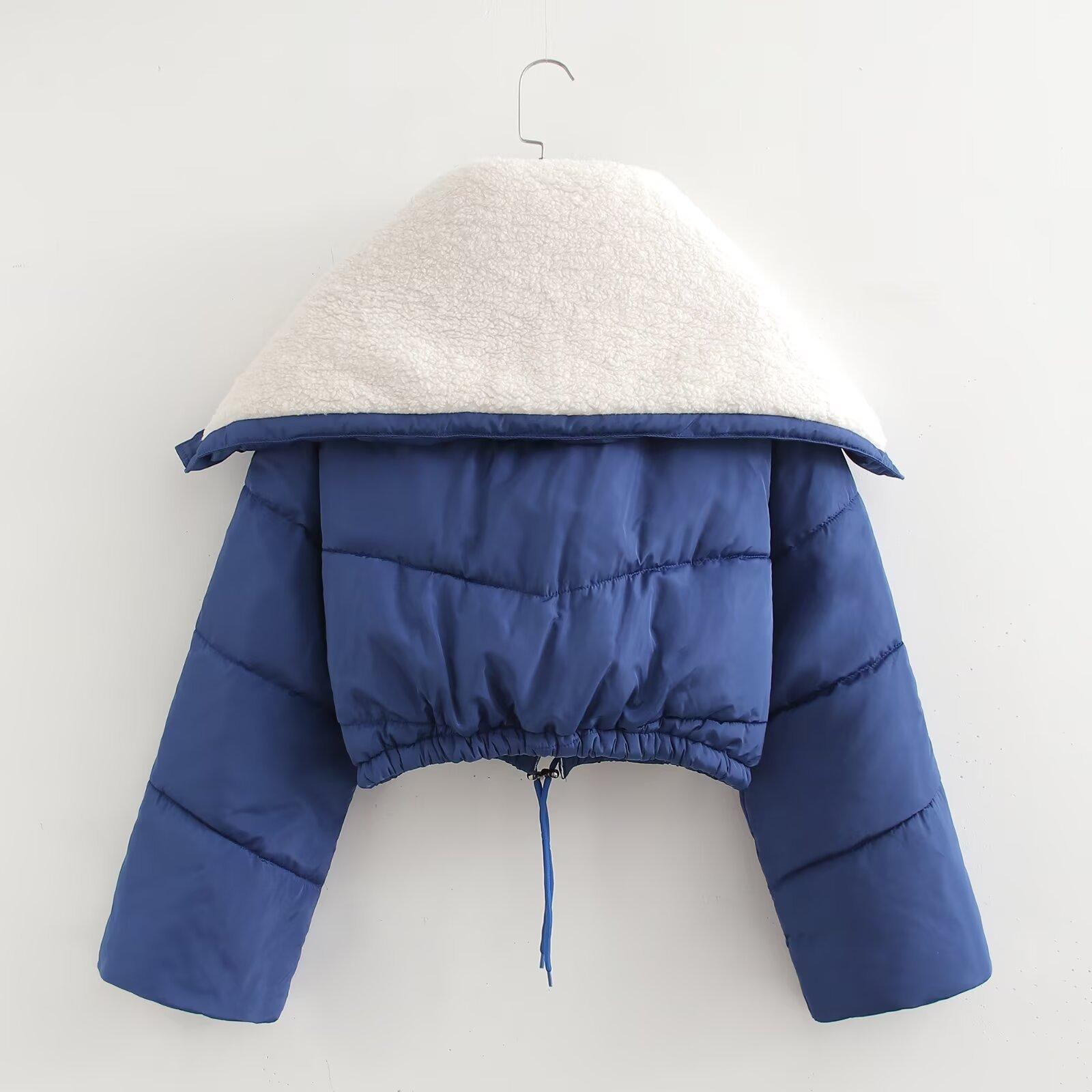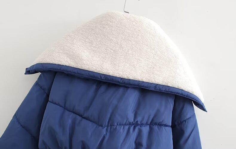 Chaqueta y abrigo acolchados de algodón con costuras de lana de cordero de moda urbana de otoño e invierno 2024 para mujer europea y americana de comercio exterior transfronterizo de Amazon