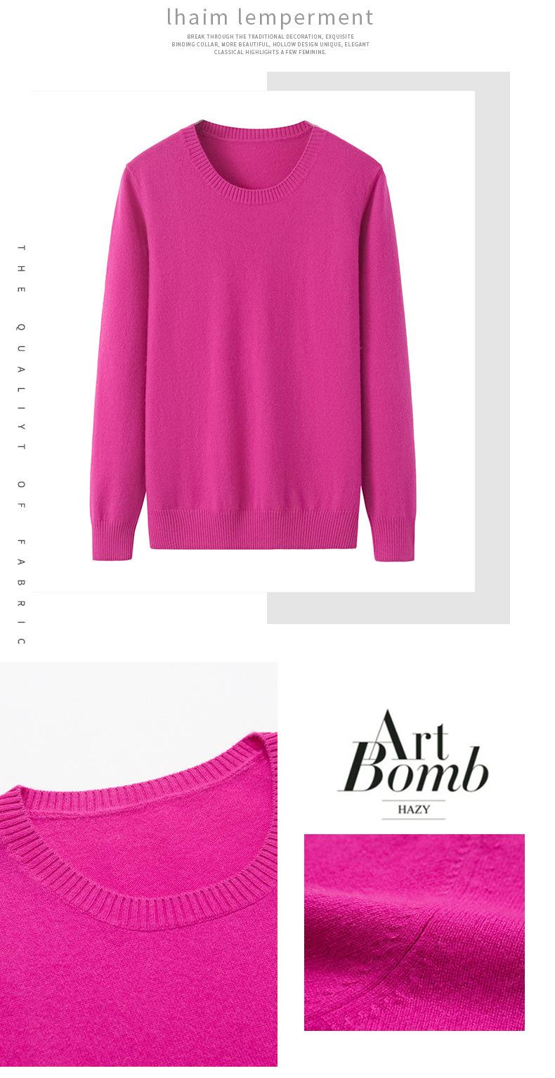 Suéter de Punto de Cachemira 100% Puro para Mujer Cuello Redondo Más Fácil de Combinar Jersey Casual Suelto para Fondo Otoño e Invierno Manga Larga