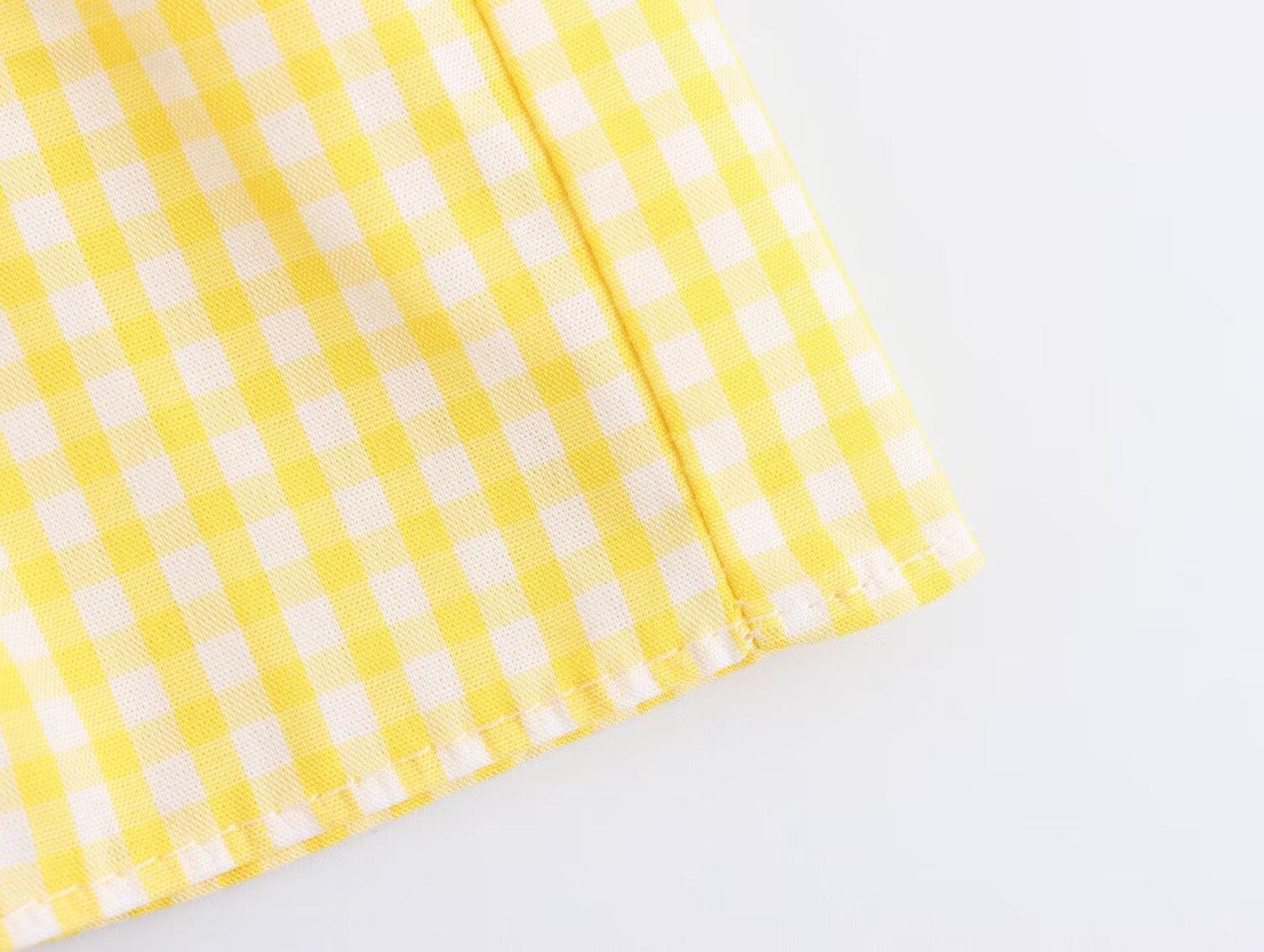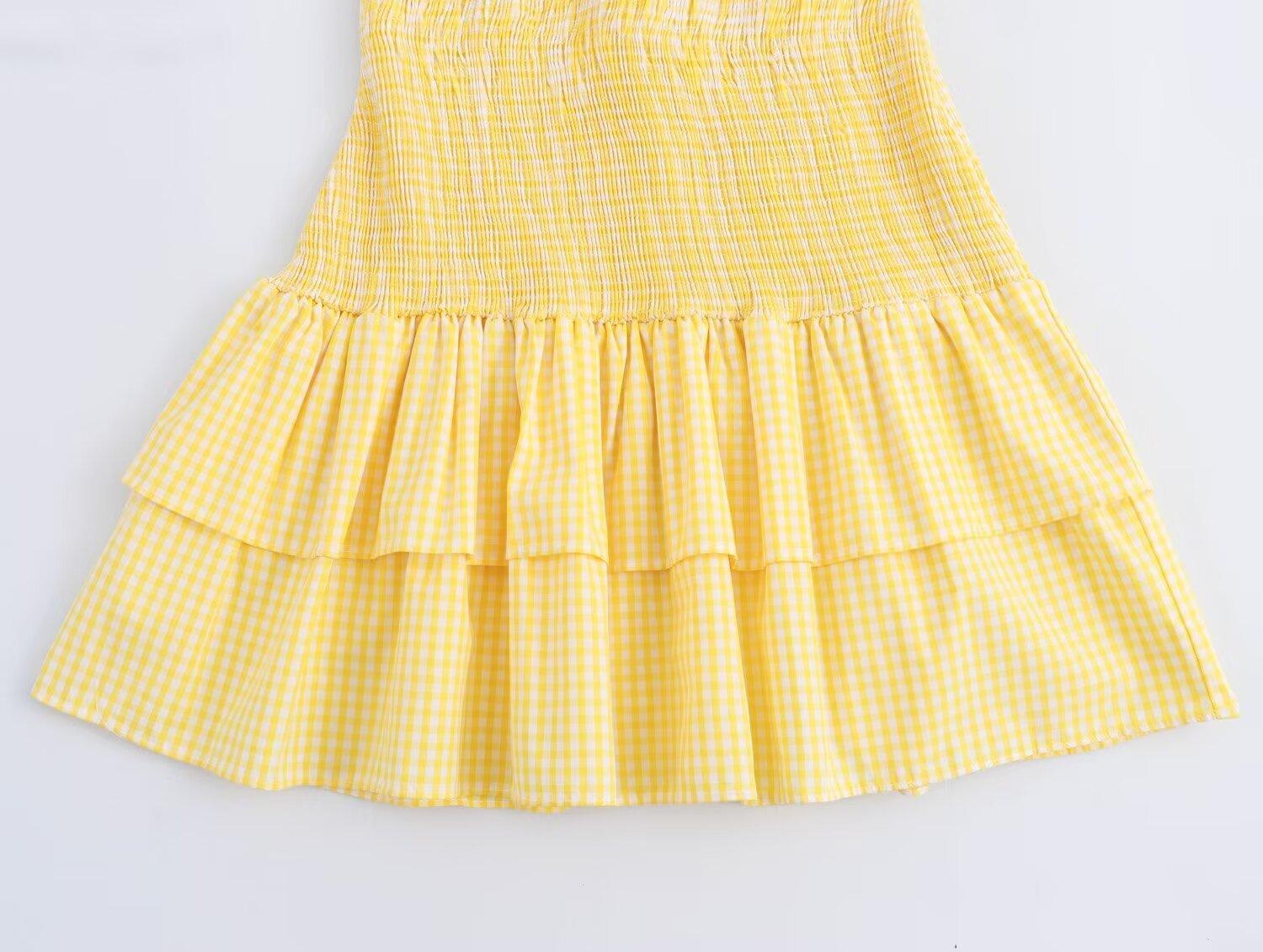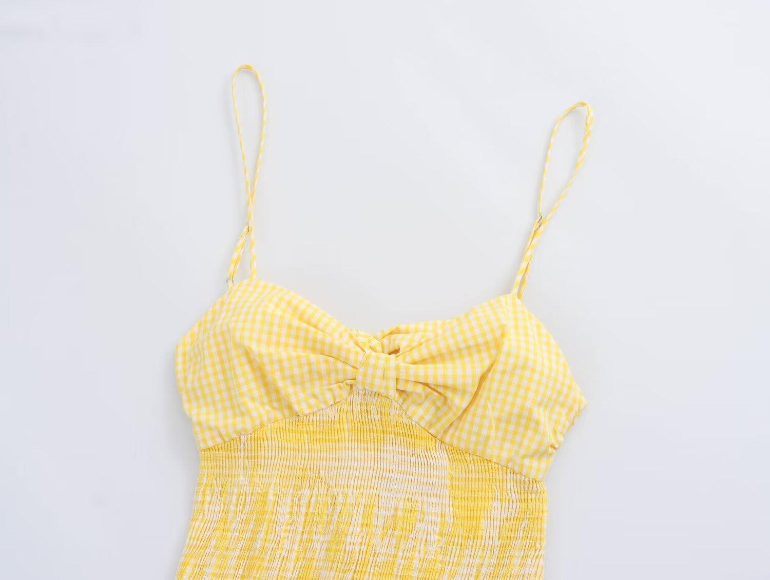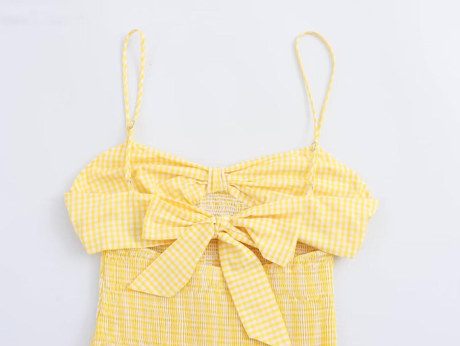 Vestido corto con lazo y cuello en V a cuadros para mujer europea y americana, verano 2024, comercio transfronterizo de Amazon