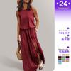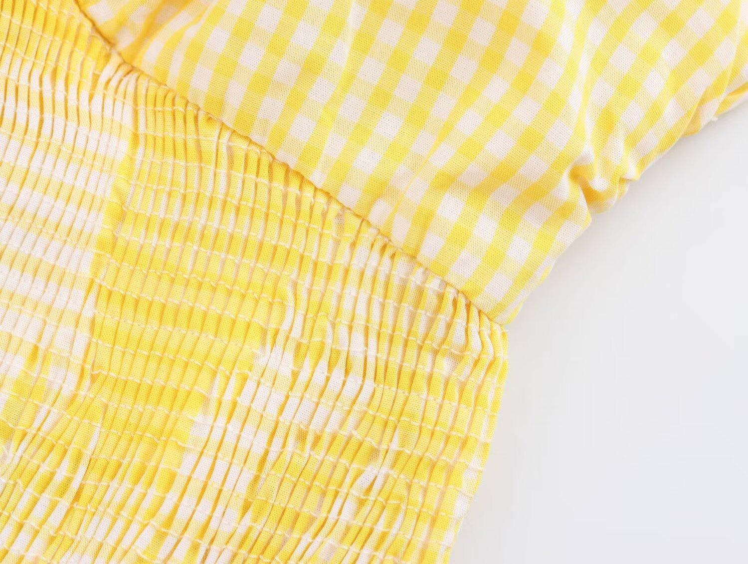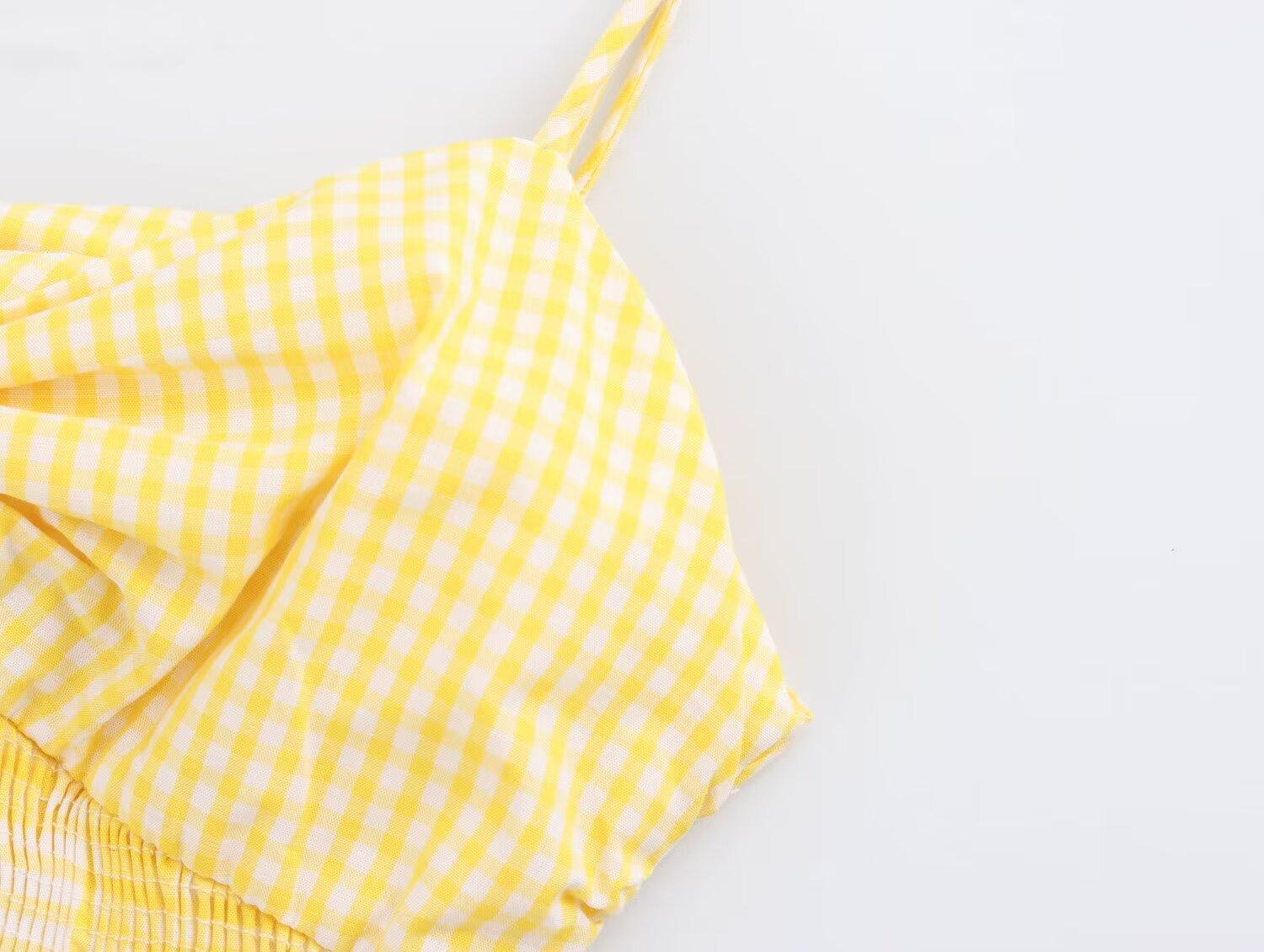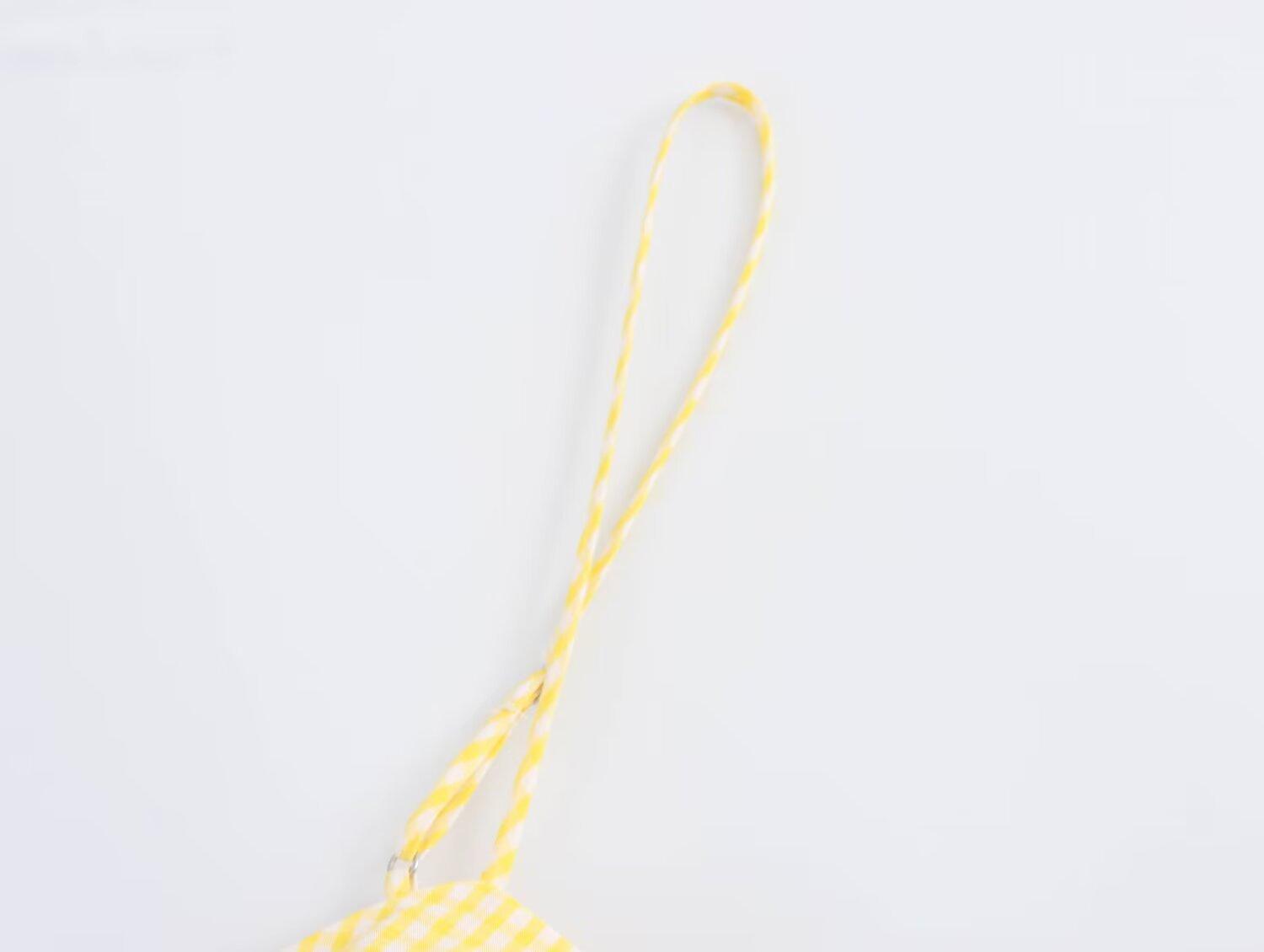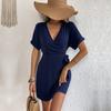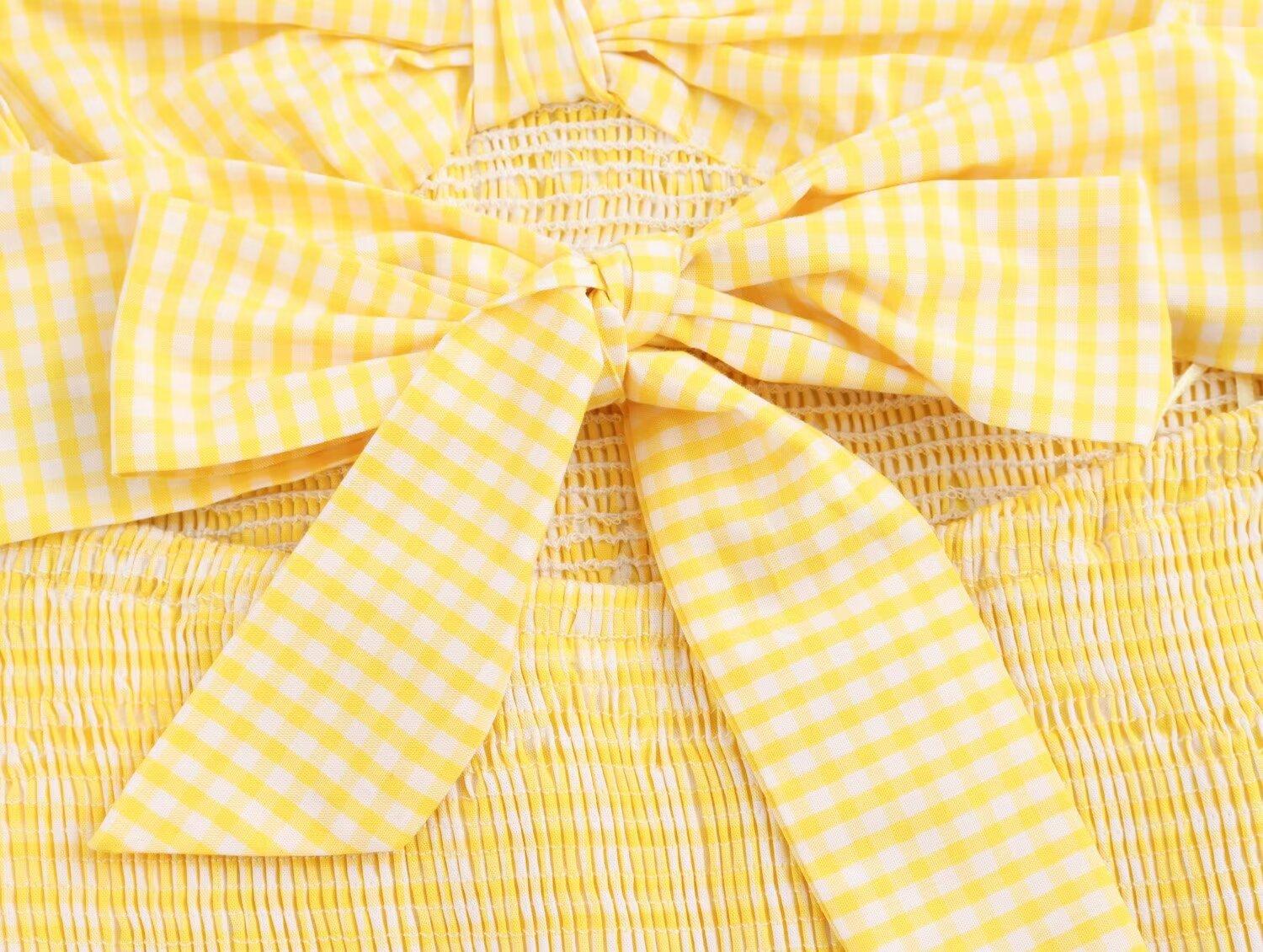Vestido corto con lazo y cuello en V a cuadros para mujer europea y americana, verano 2024, comercio transfronterizo de Amazon