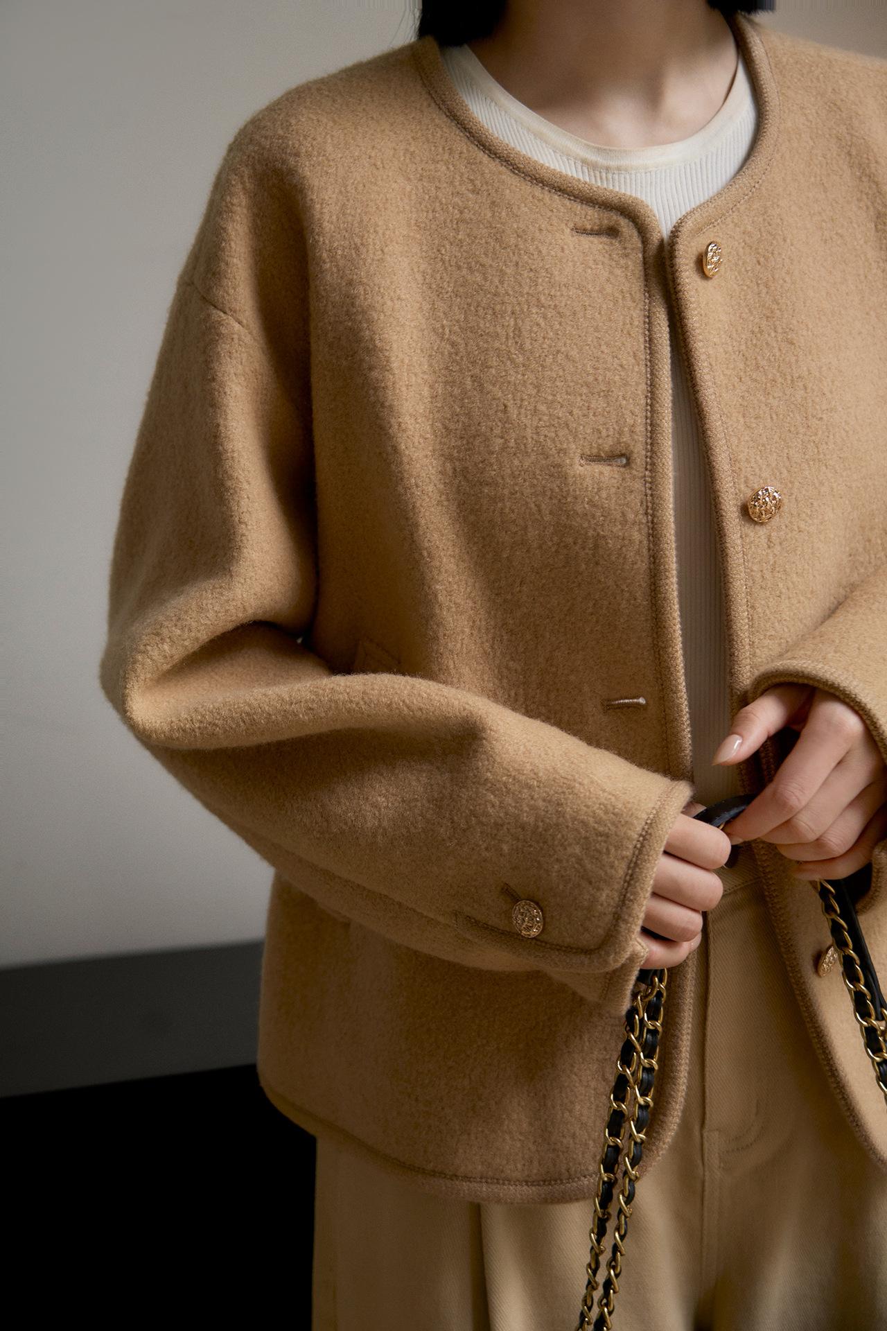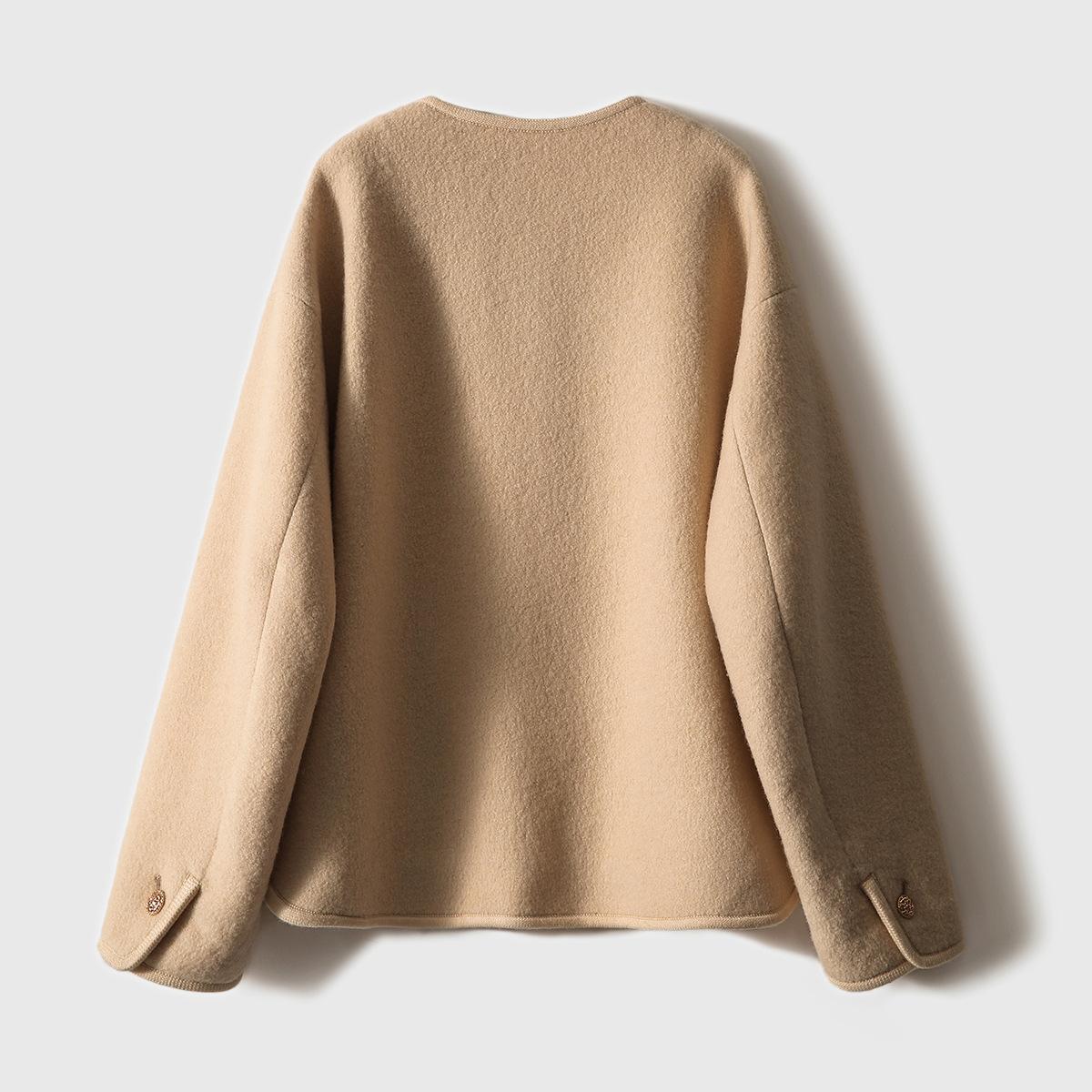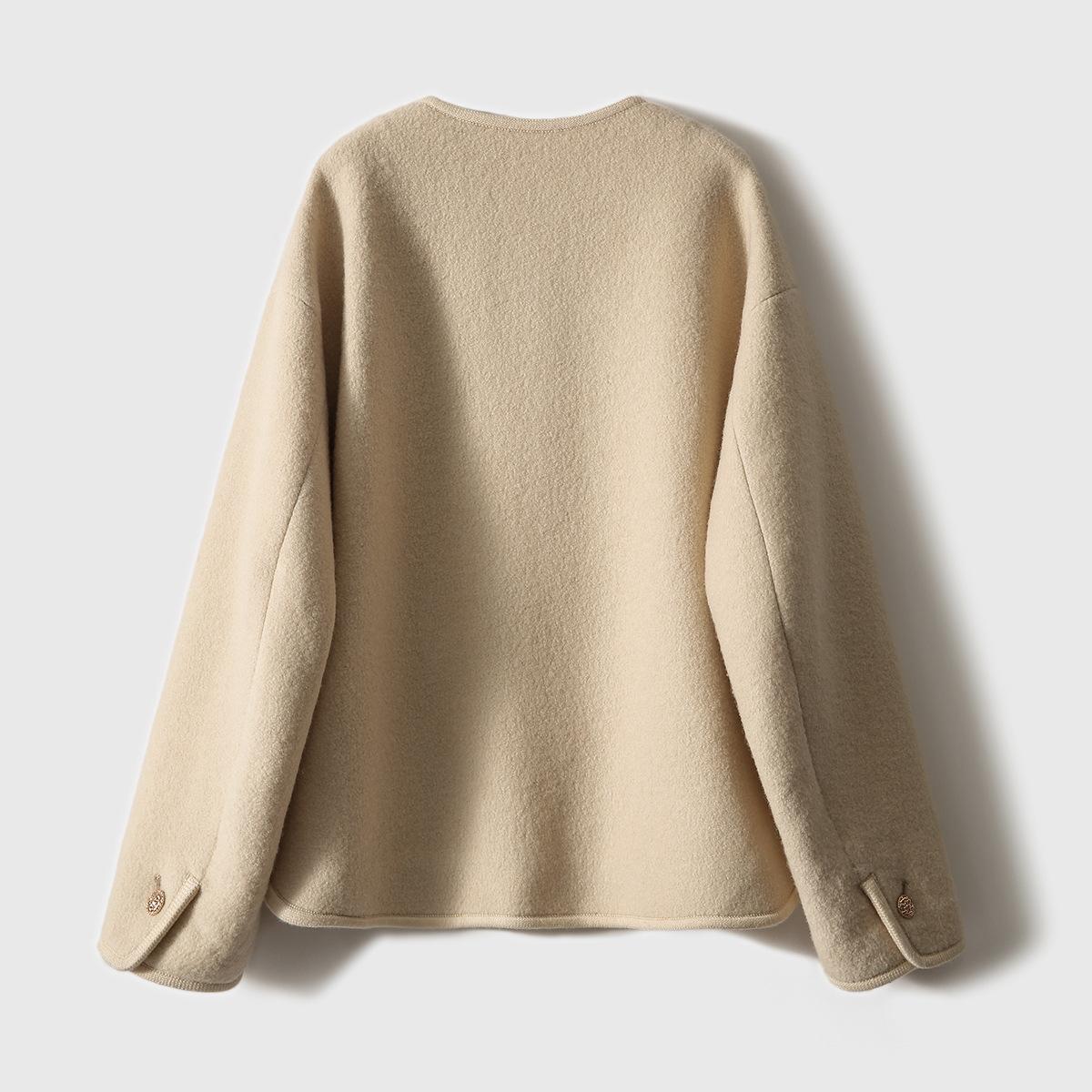 Otoño e Invierno 2024 Nuevo Casual Abrigo Corto de un Lado Estilo Fragante Hebilla Pequeña Dorada Diseño Nicho Abrigo Corto blanco cremoso