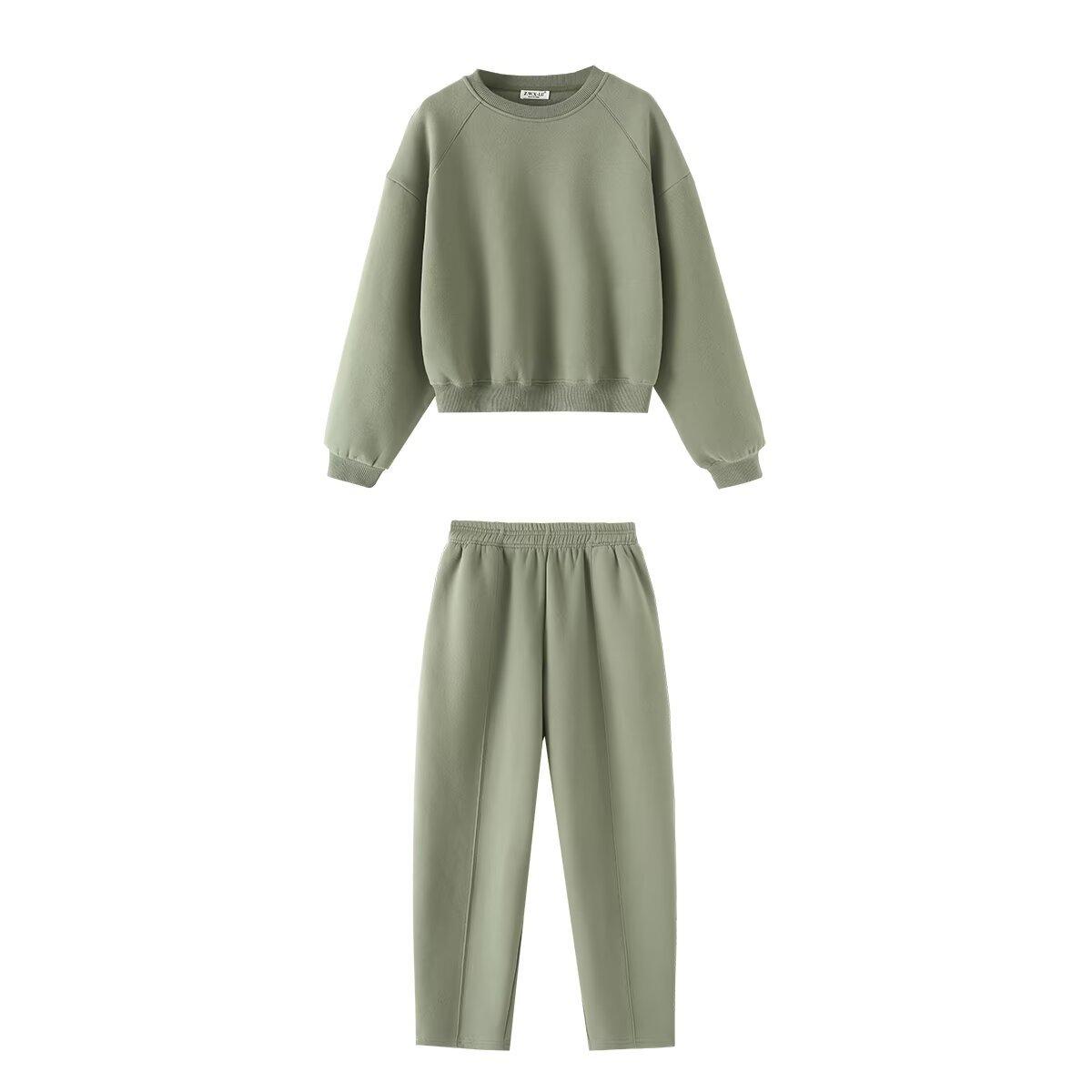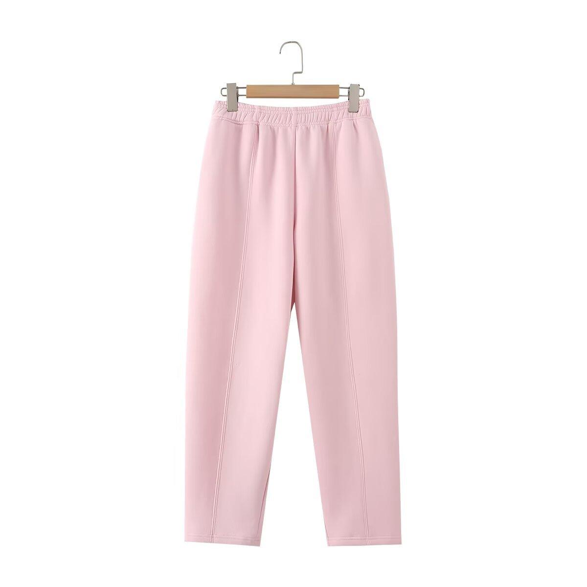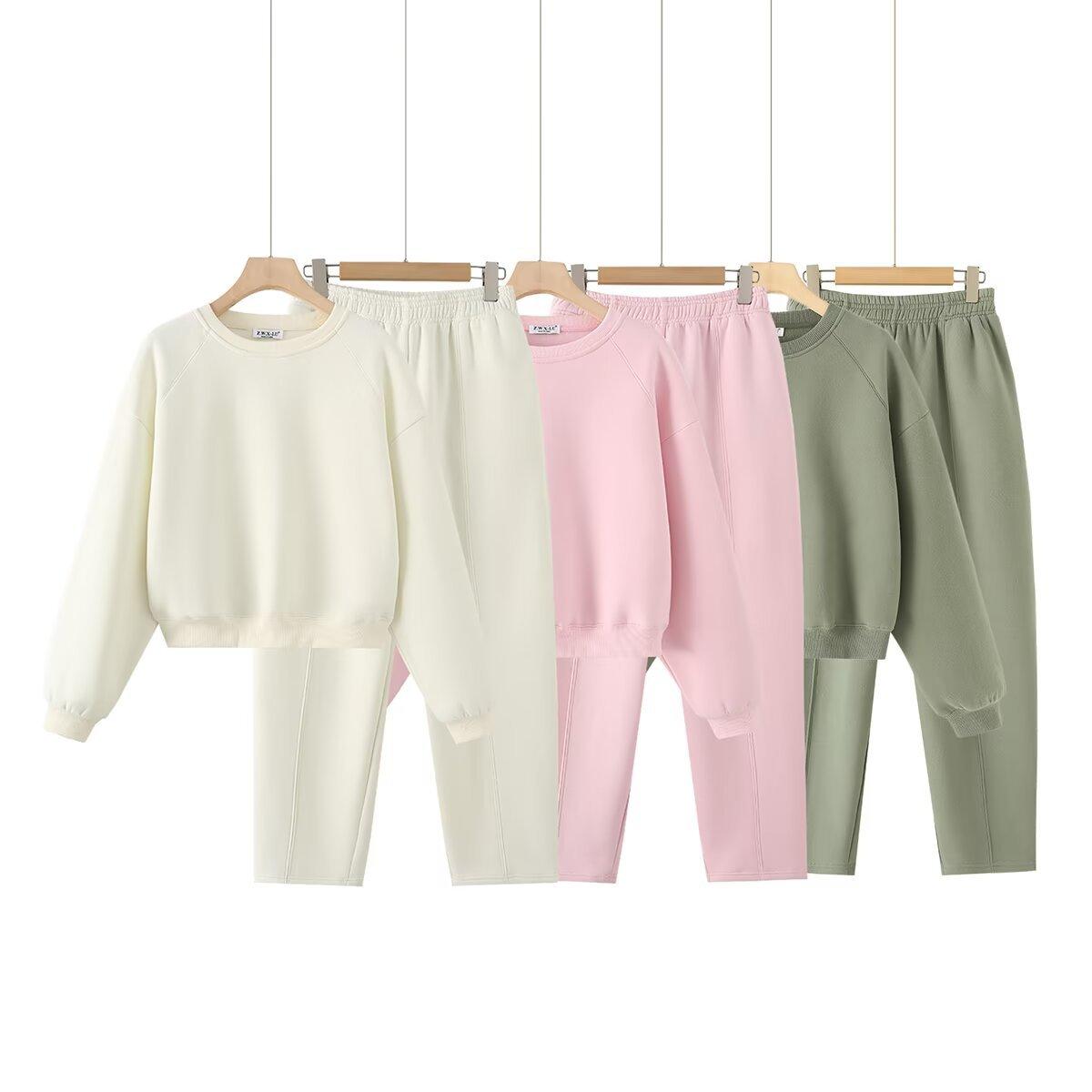 Suéter de franela de cuello redondo y manga larga para 2024, pantalones casuales rectos elásticos, transfronterizo Amazon para mujer M86686