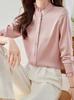 Camisa Segmental Camisa de Manga Larga para Mujer Botón 2024 Primavera y Otoño Nuevo Elegante Commuter Color Sólido Cuello Hoja de Loto Top