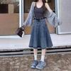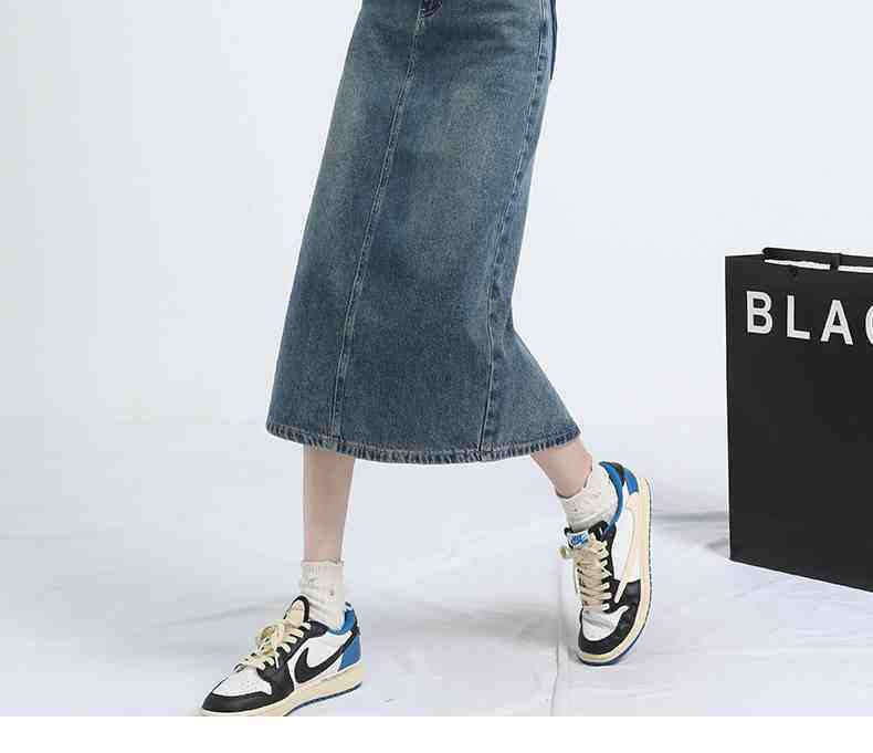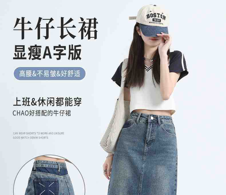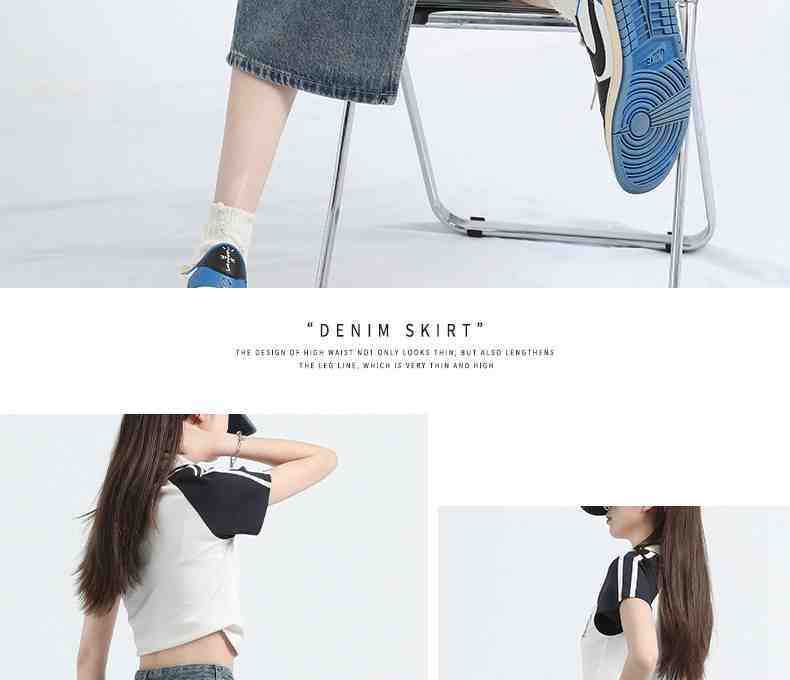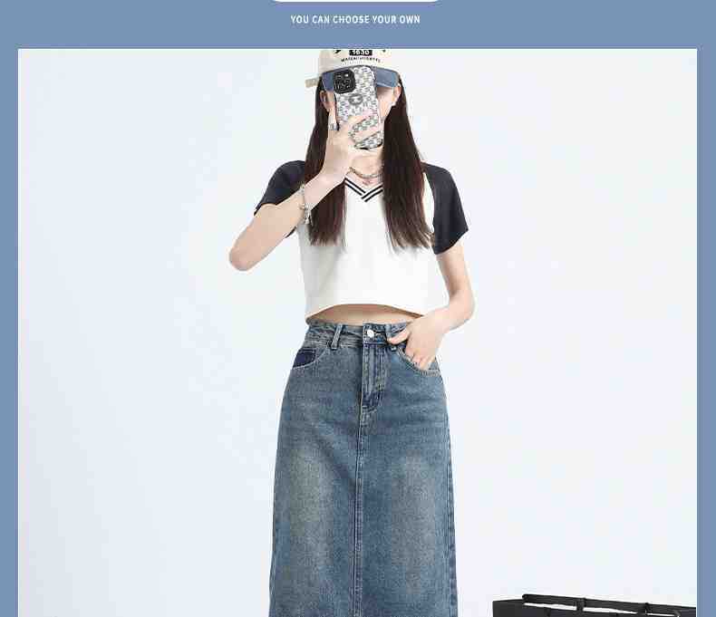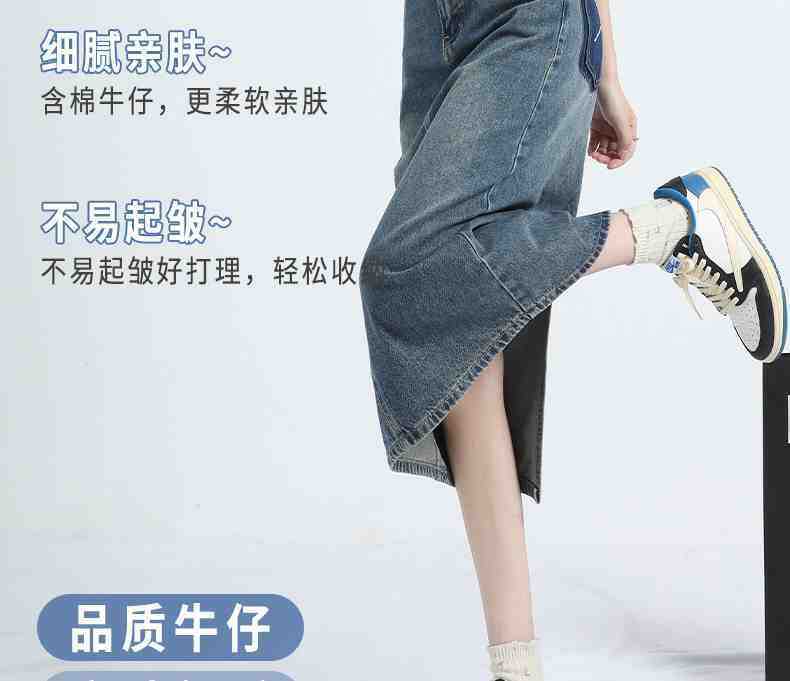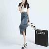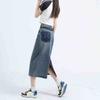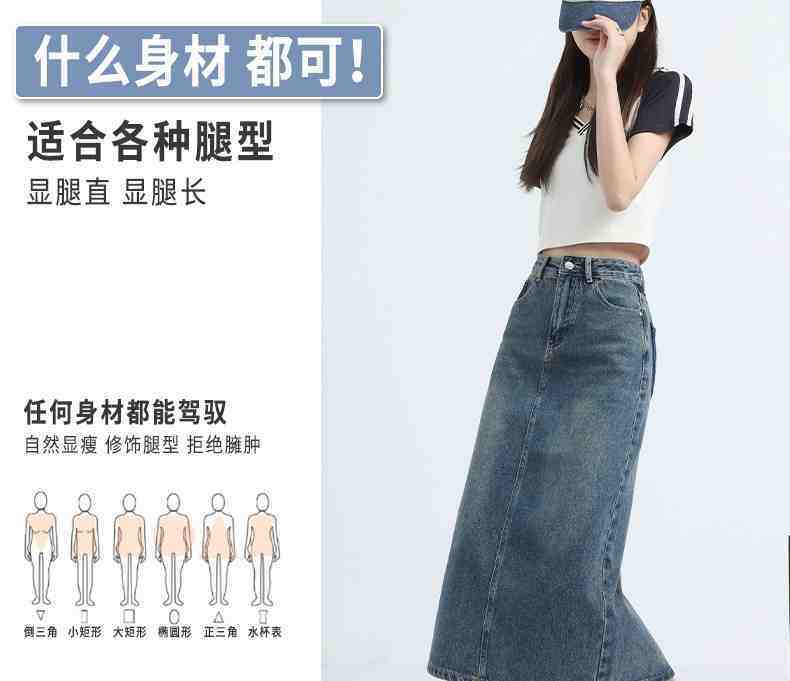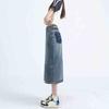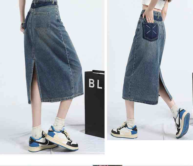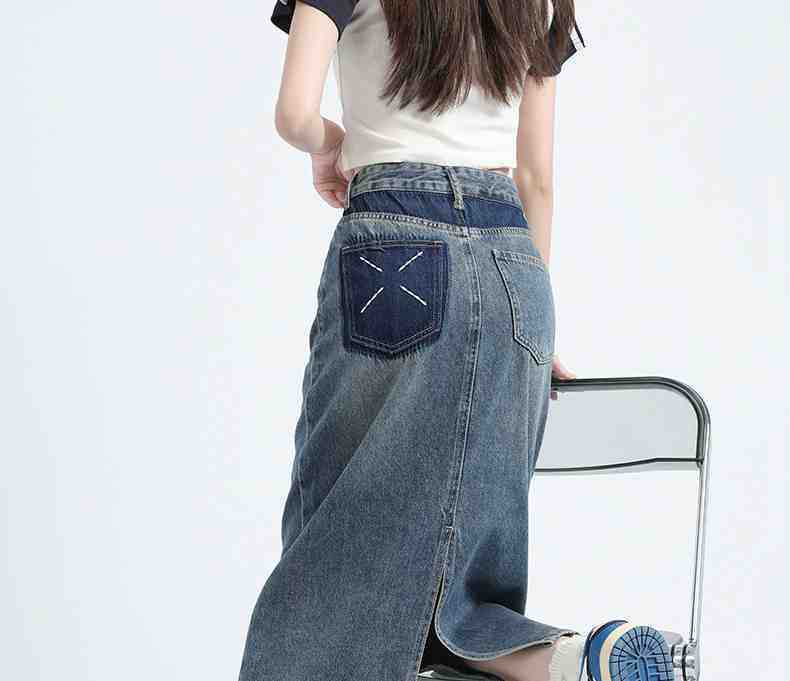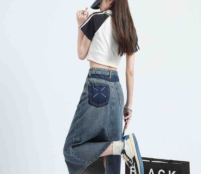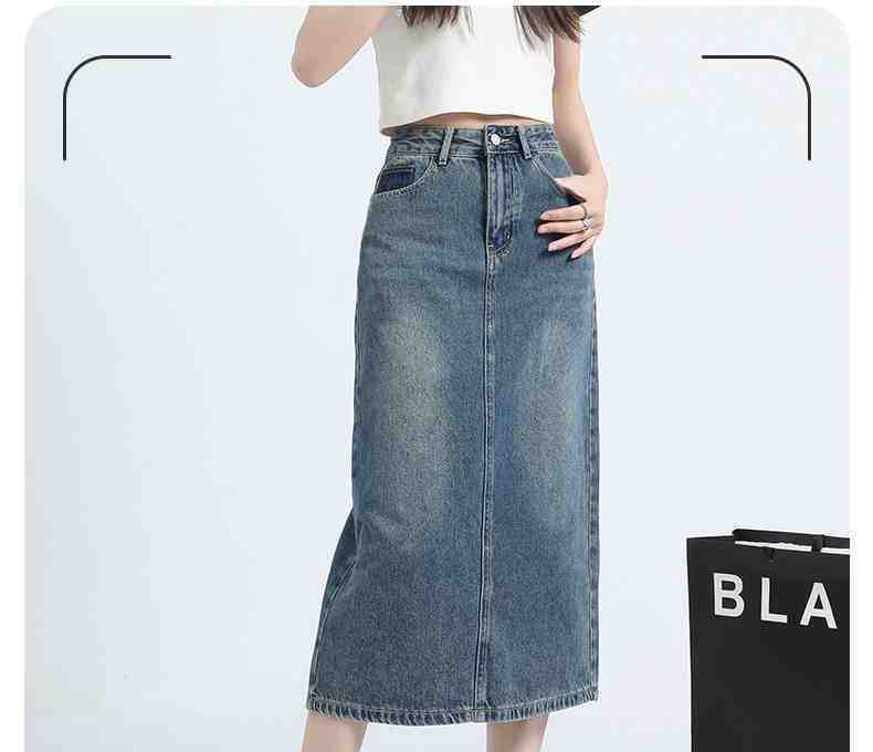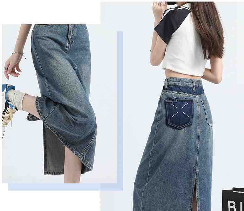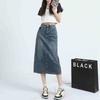 Falda vaquera vintage con abertura para mujer, talla pequeña, primavera y otoño 2024, nueva, cintura alta, combinable, corte A, longitud media, falda a la cadera