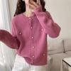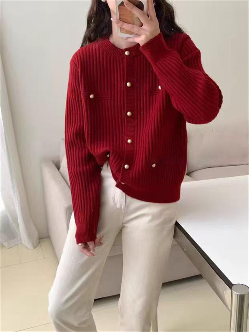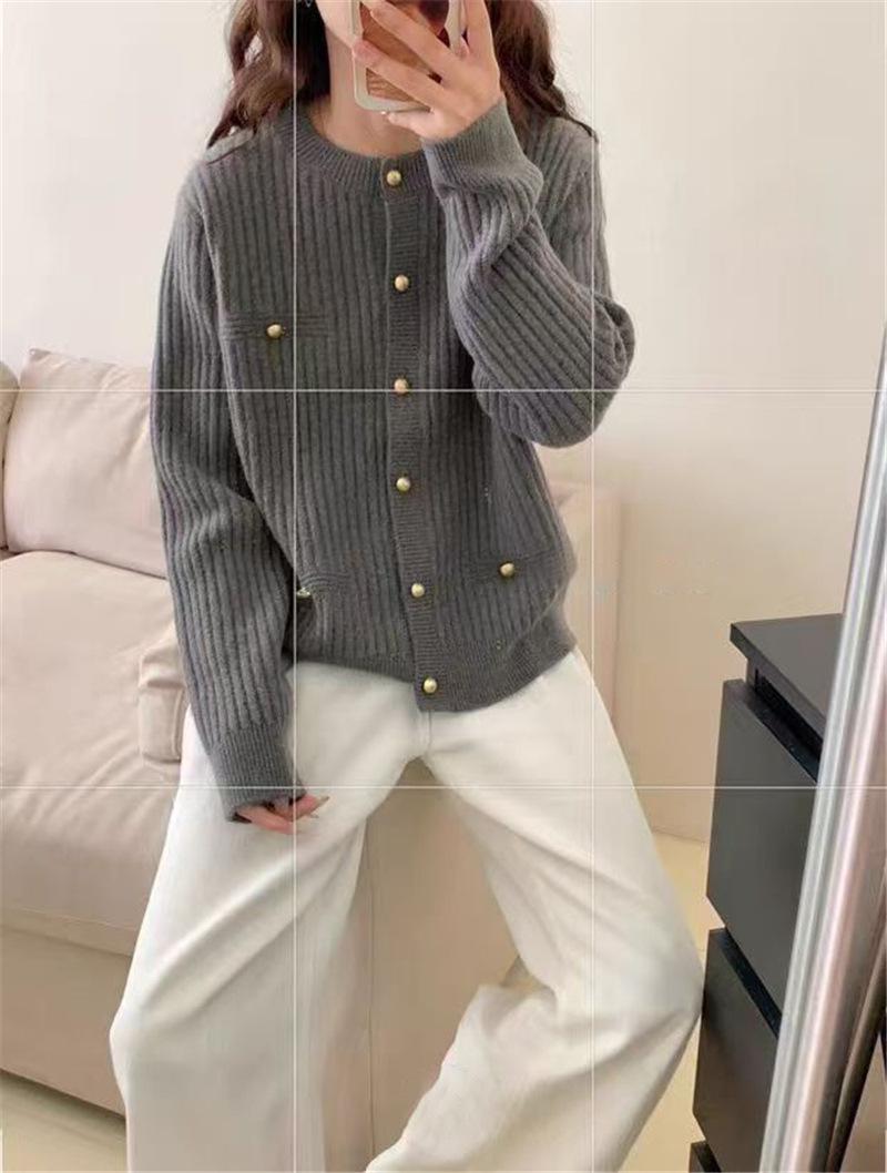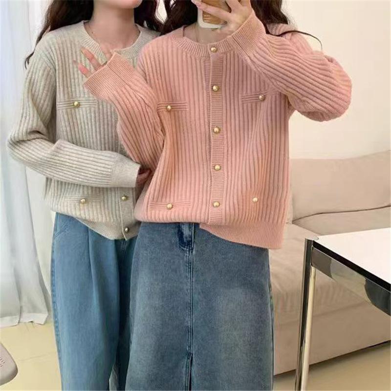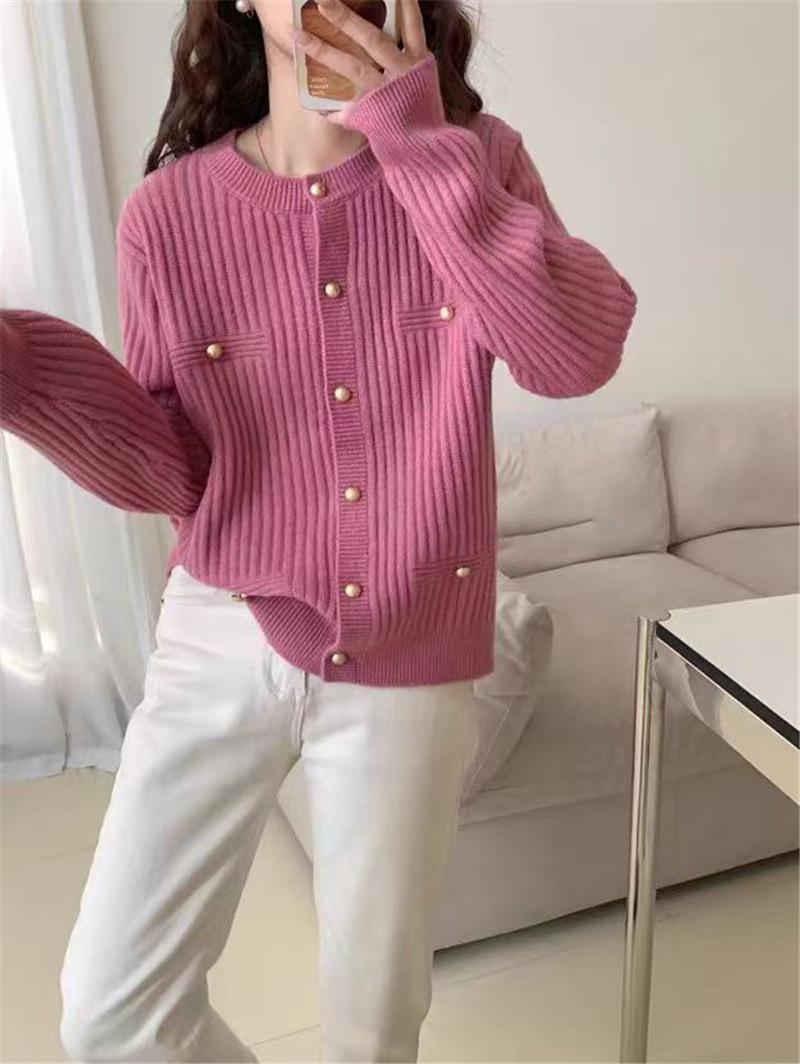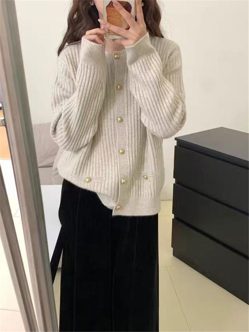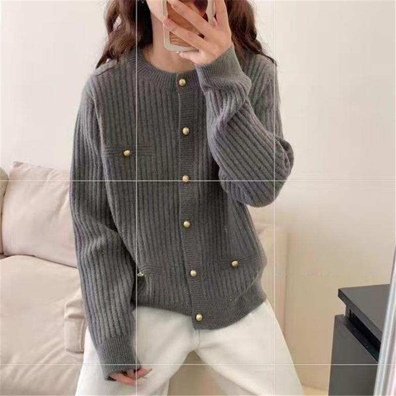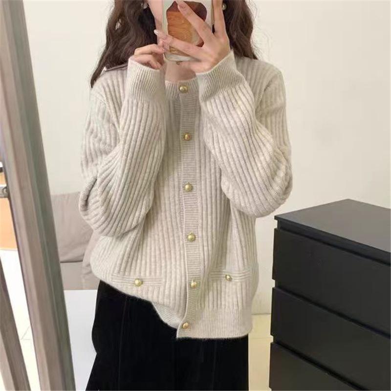 Chaqueta tipo suéter de lana con cuello redondo, color liso, estilo coreano, estilo Chanel, para otoño e invierno, cálida y combinable.