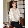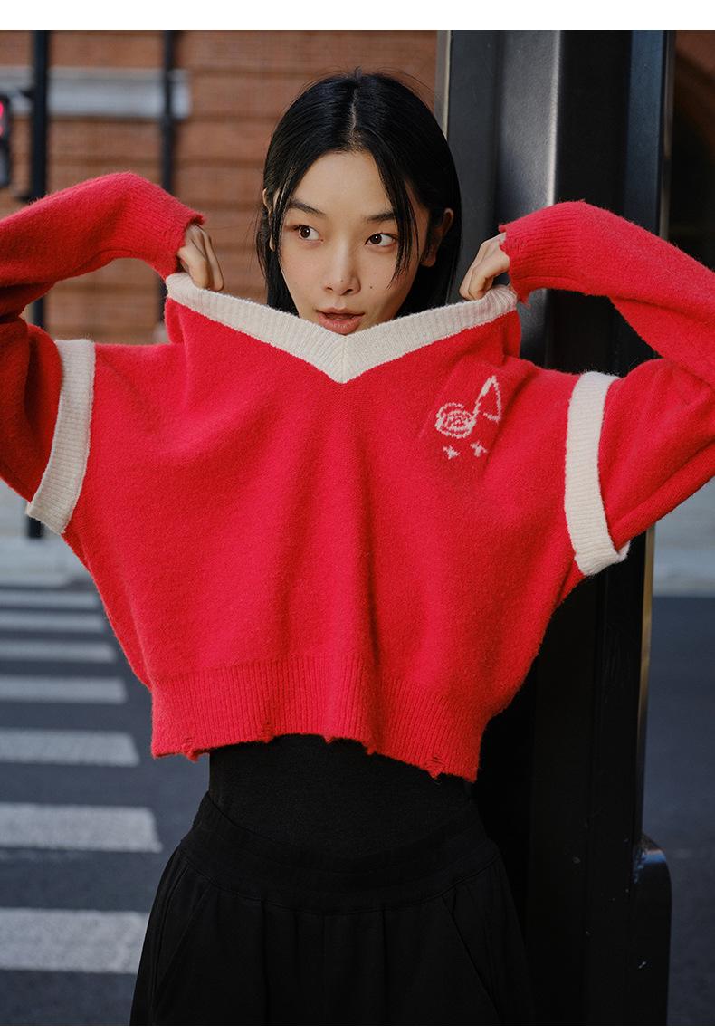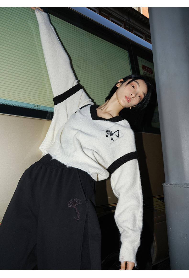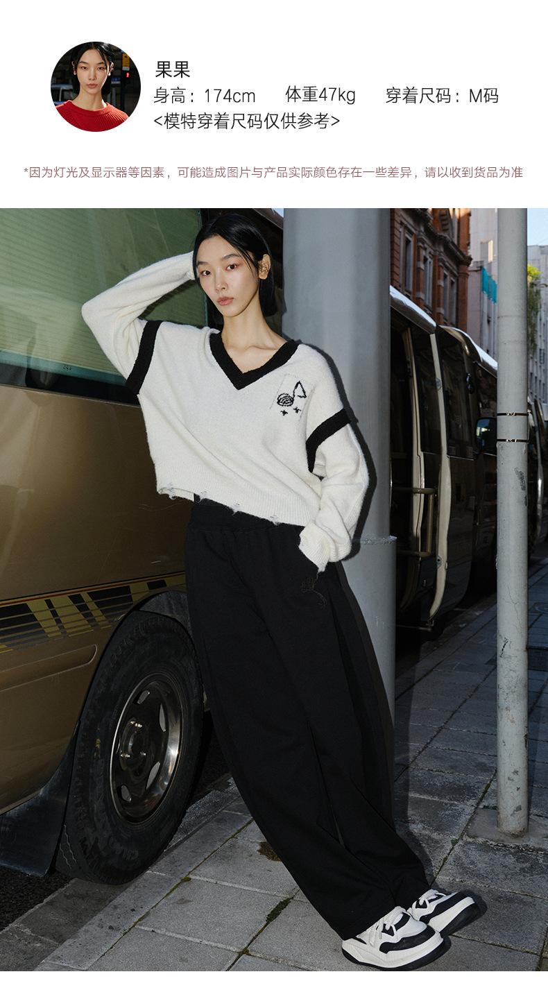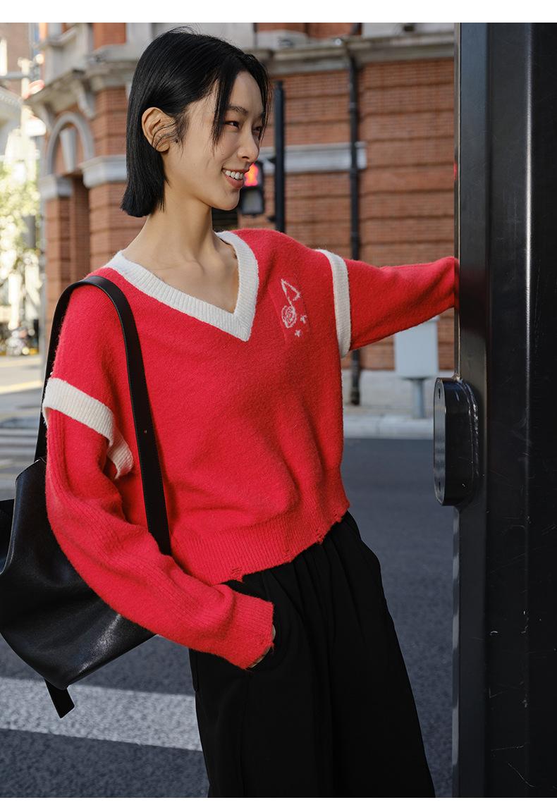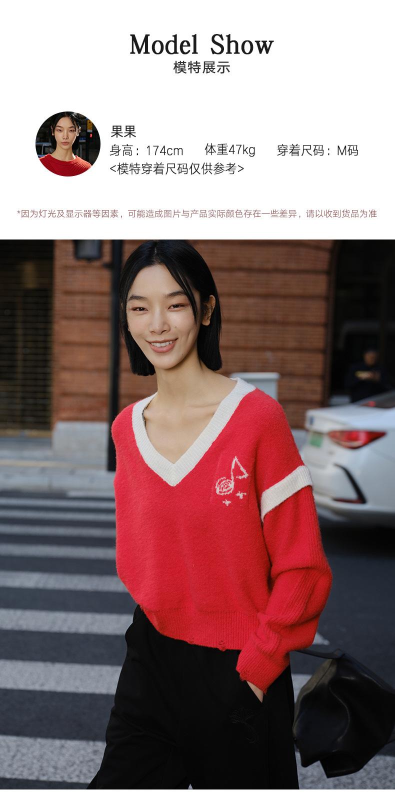 Producto Nuevo Otoño 2025 Jersey Jacquard Color Block Cuello en V Suelto Moda Versátil Diseño Adelgazante Suéter 69180