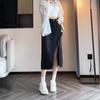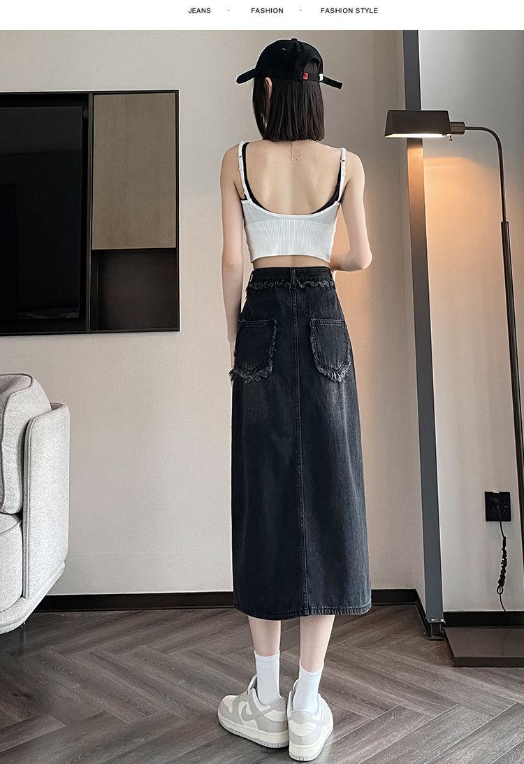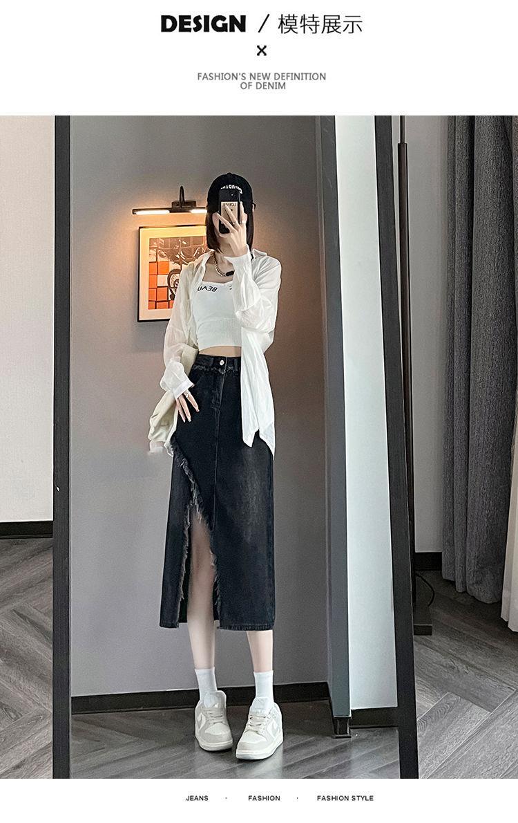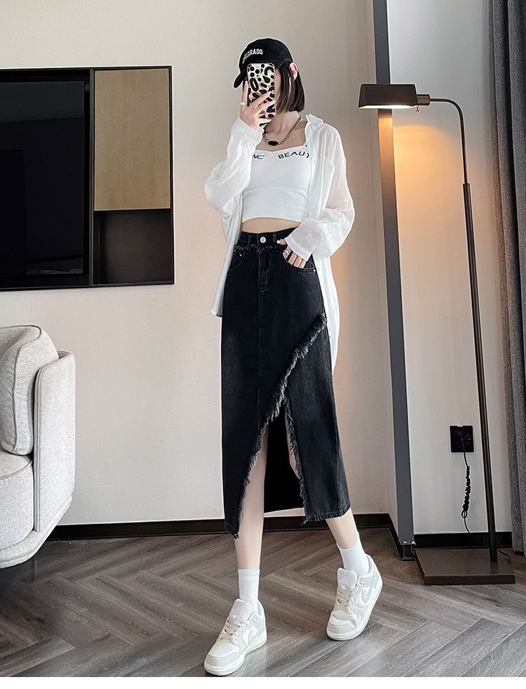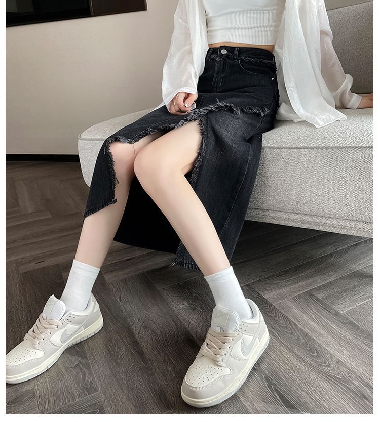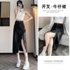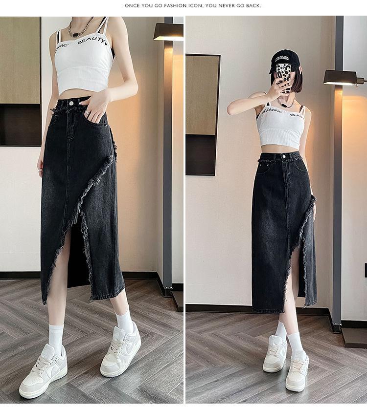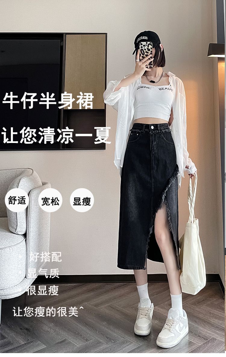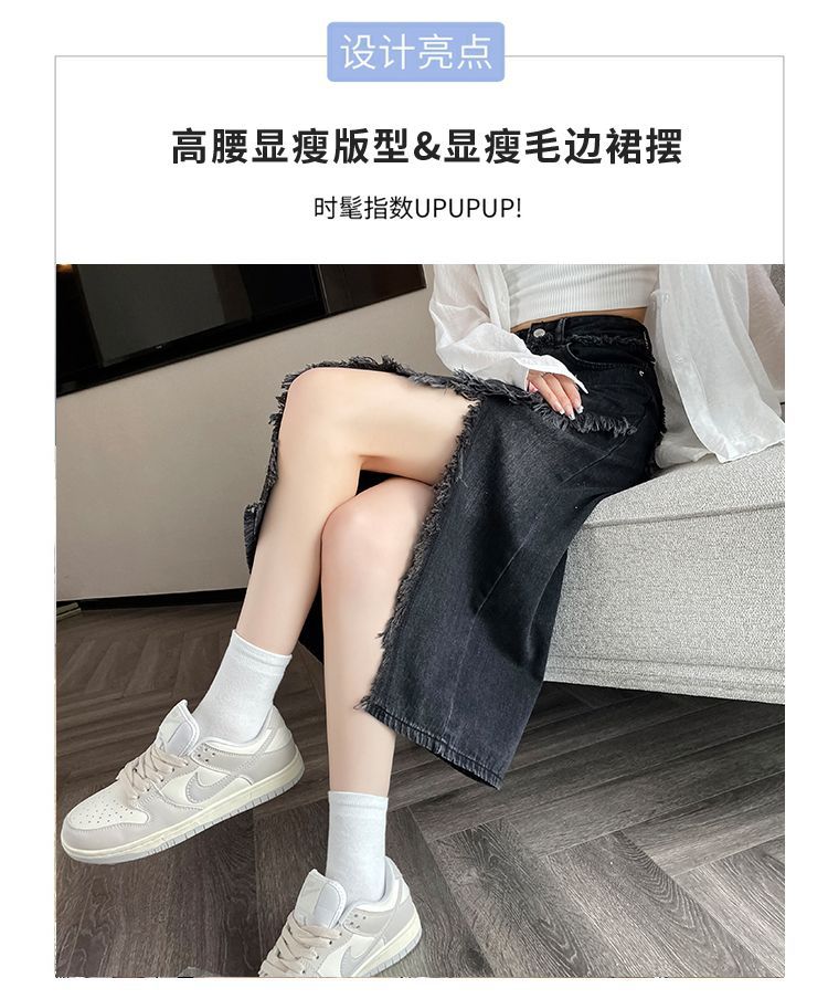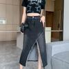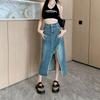 Falda vaquera de cintura alta con abertura para mujer, verano 2024, nueva, de longitud media, con corte en A y caderas cortas.