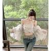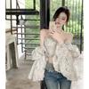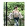 Camisa floral dulce de estilo francés, top corto de un solo hombro, suave, diseño para mujer, Sense Niche, primavera y otoño