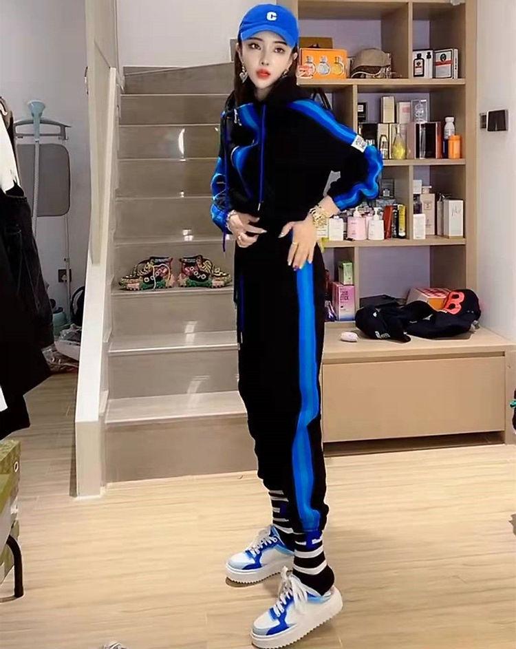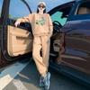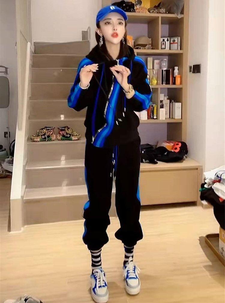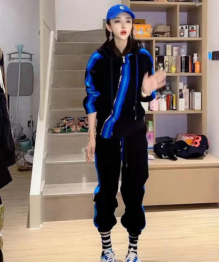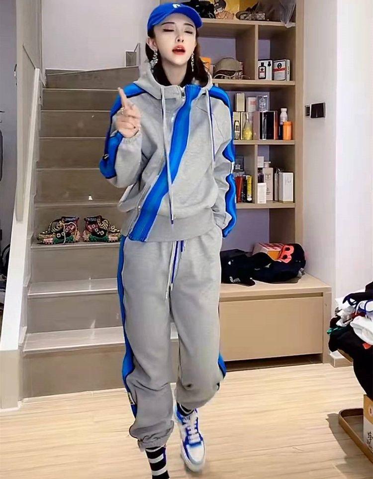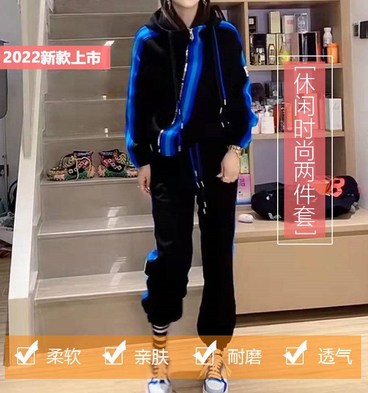 Traje de moda deportiva de celebridades de Internet para mujer, primavera, otoño e invierno, diseño nuevo europeo y americano, chaqueta con cremallera oblicua, pantalones harén, conjunto de dos piezas