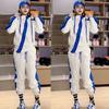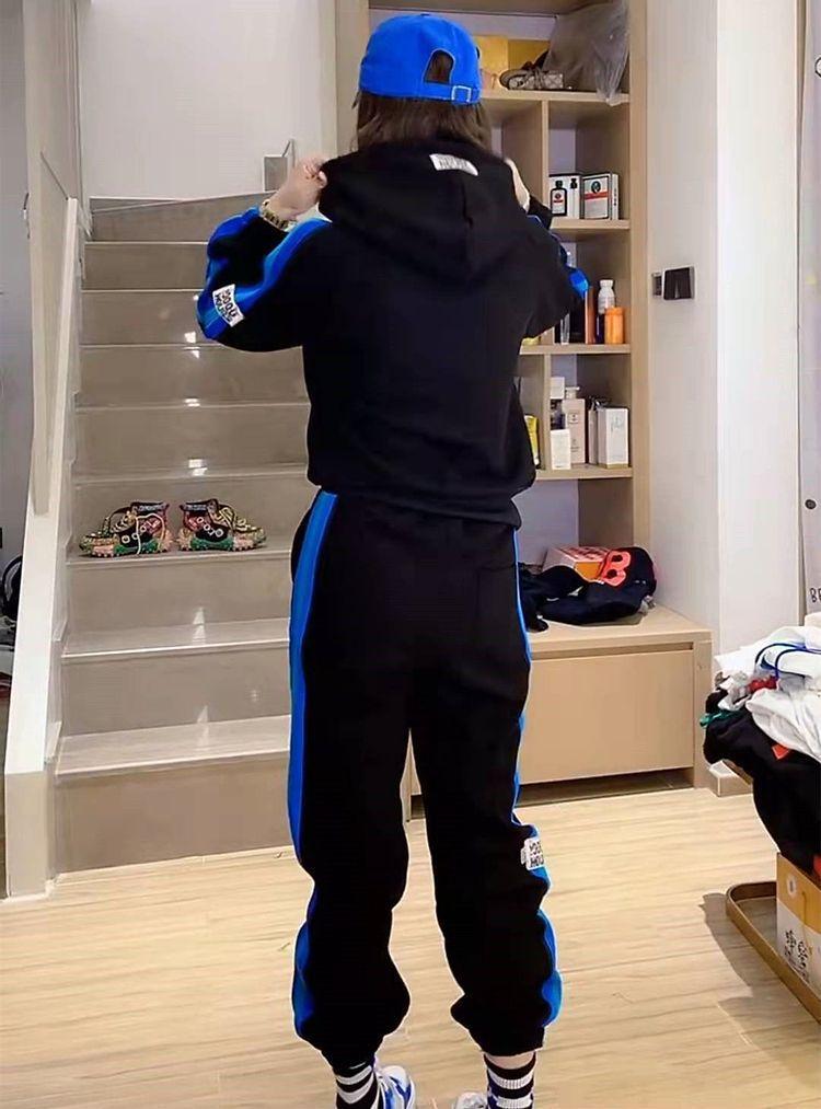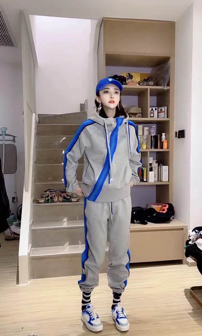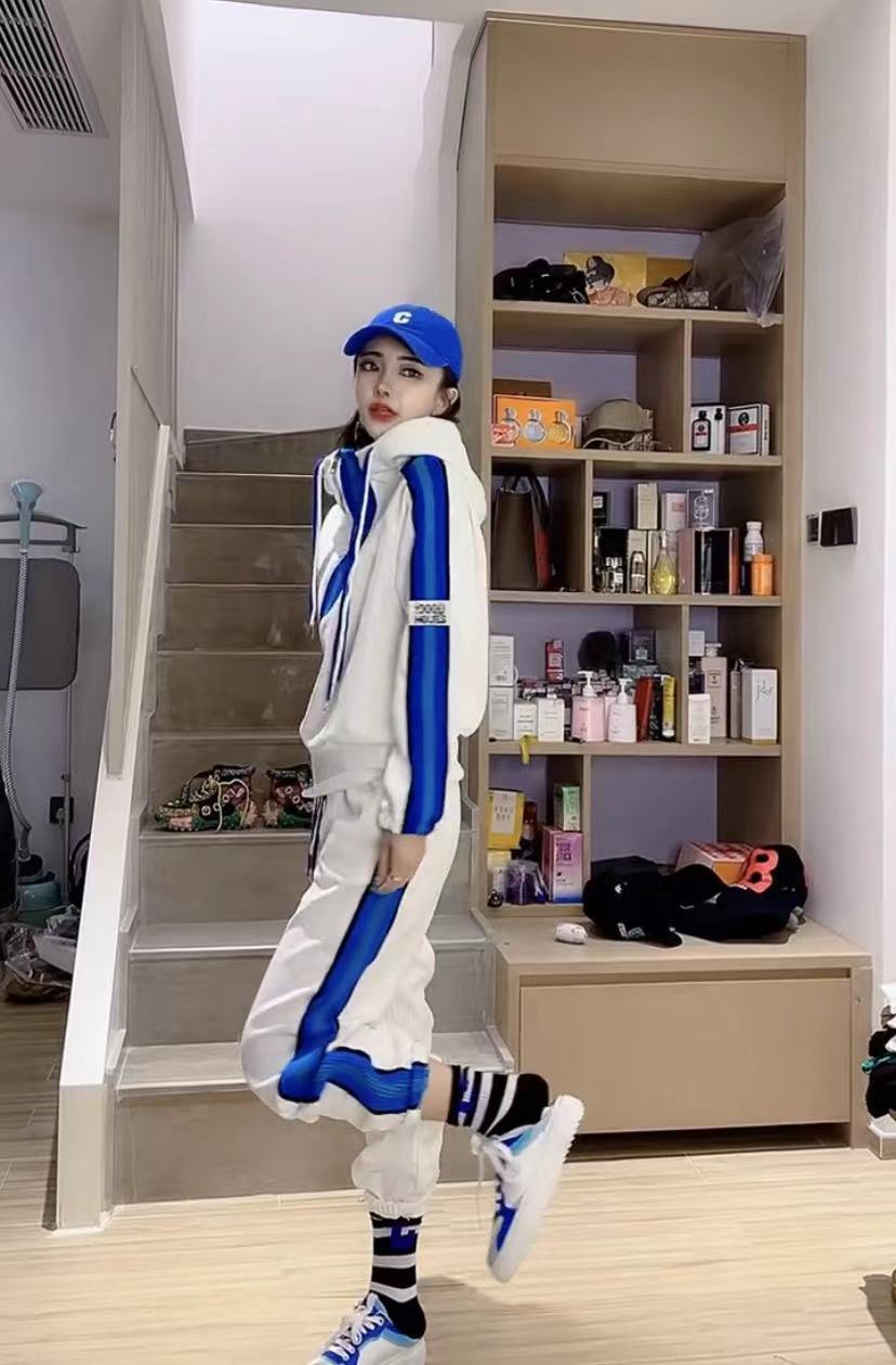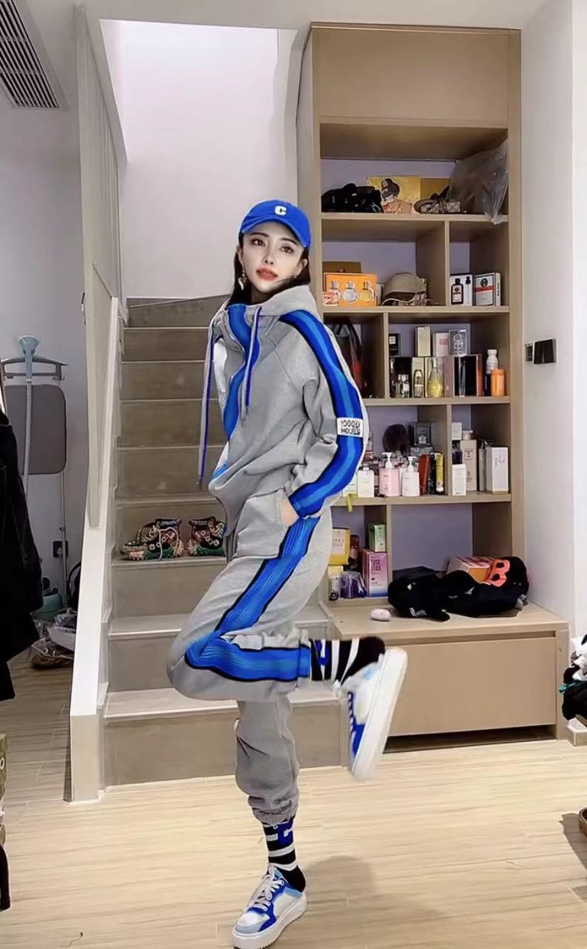 Traje de moda deportiva de celebridades de Internet para mujer, primavera, otoño e invierno, diseño nuevo europeo y americano, chaqueta con cremallera oblicua, pantalones harén, conjunto de dos piezas