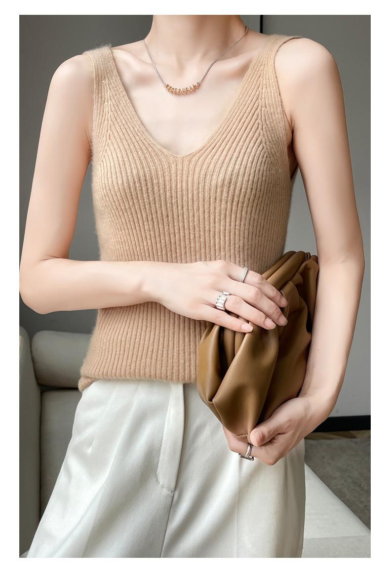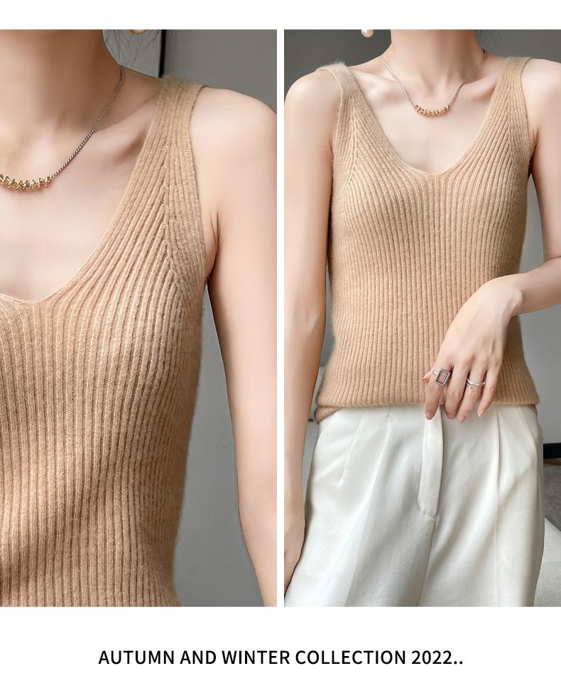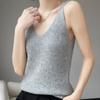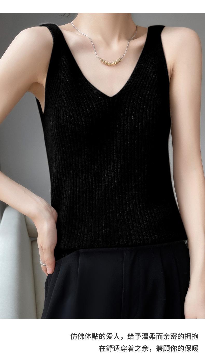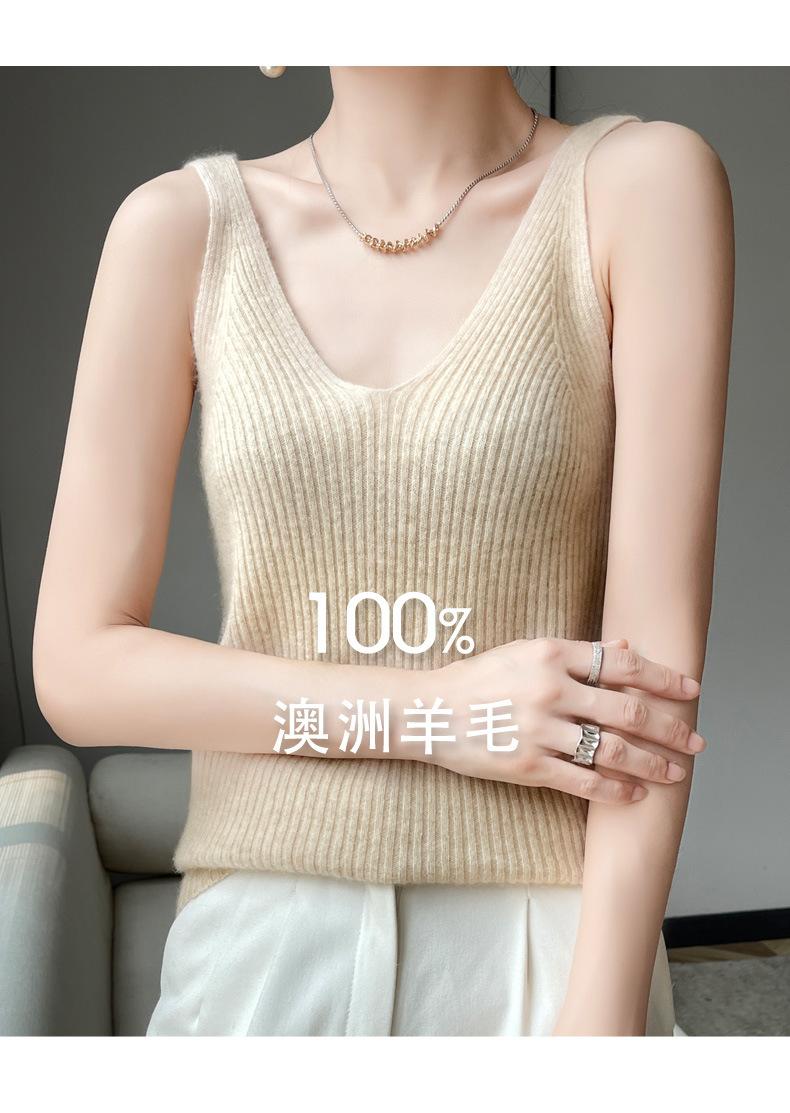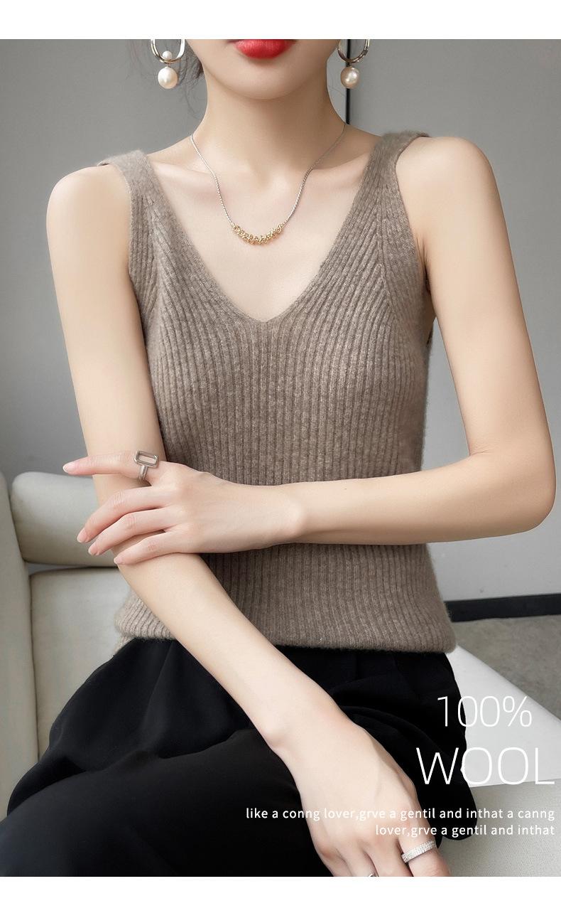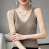 Chaleco interior de punto con tiras y cuello en V para mujer, 100% lana pura, otoño e invierno 2024