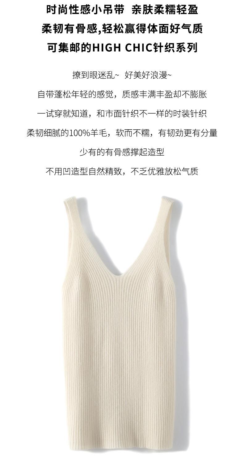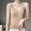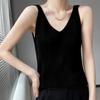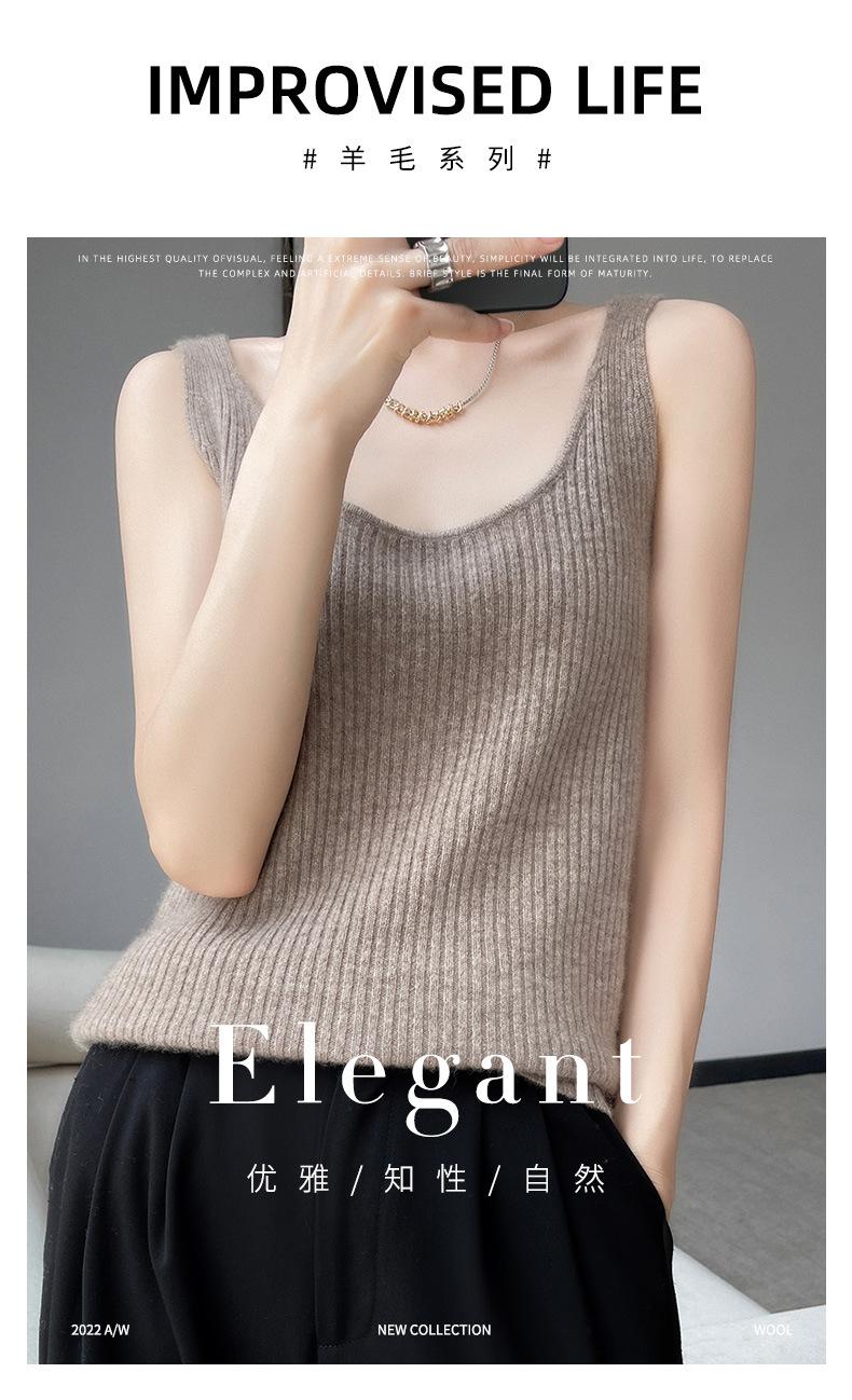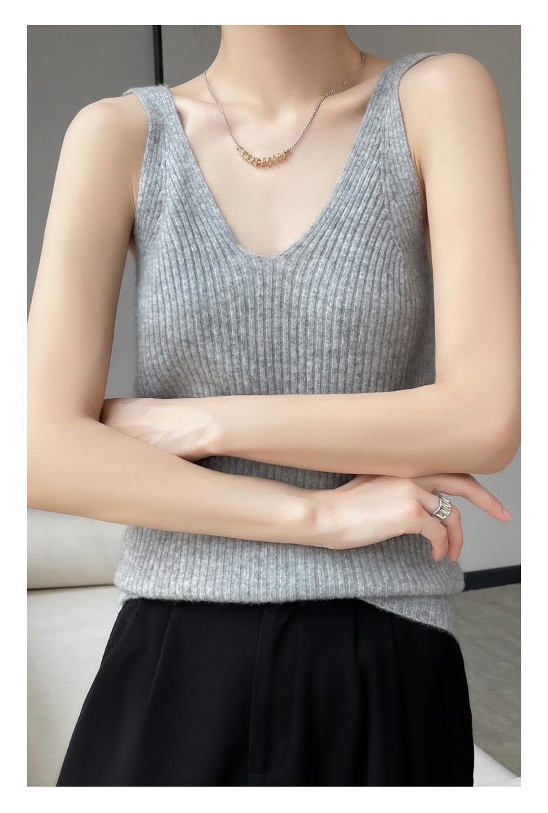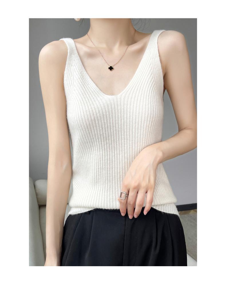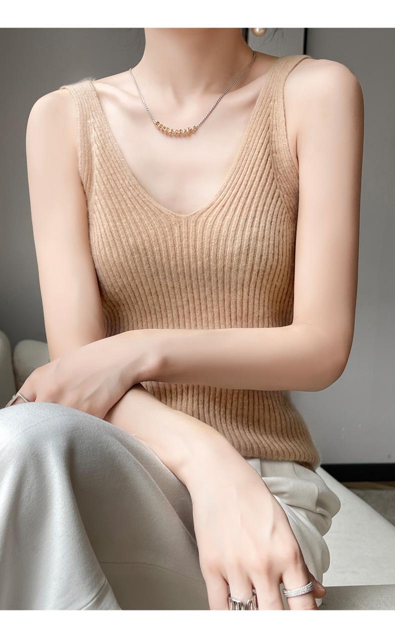 Chaleco interior de punto con tiras y cuello en V para mujer, 100% lana pura, otoño e invierno 2024