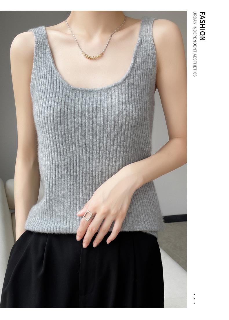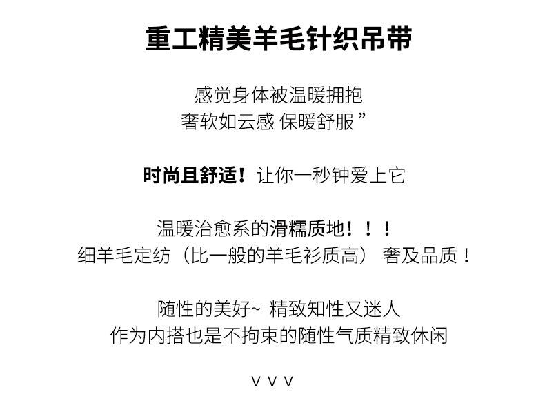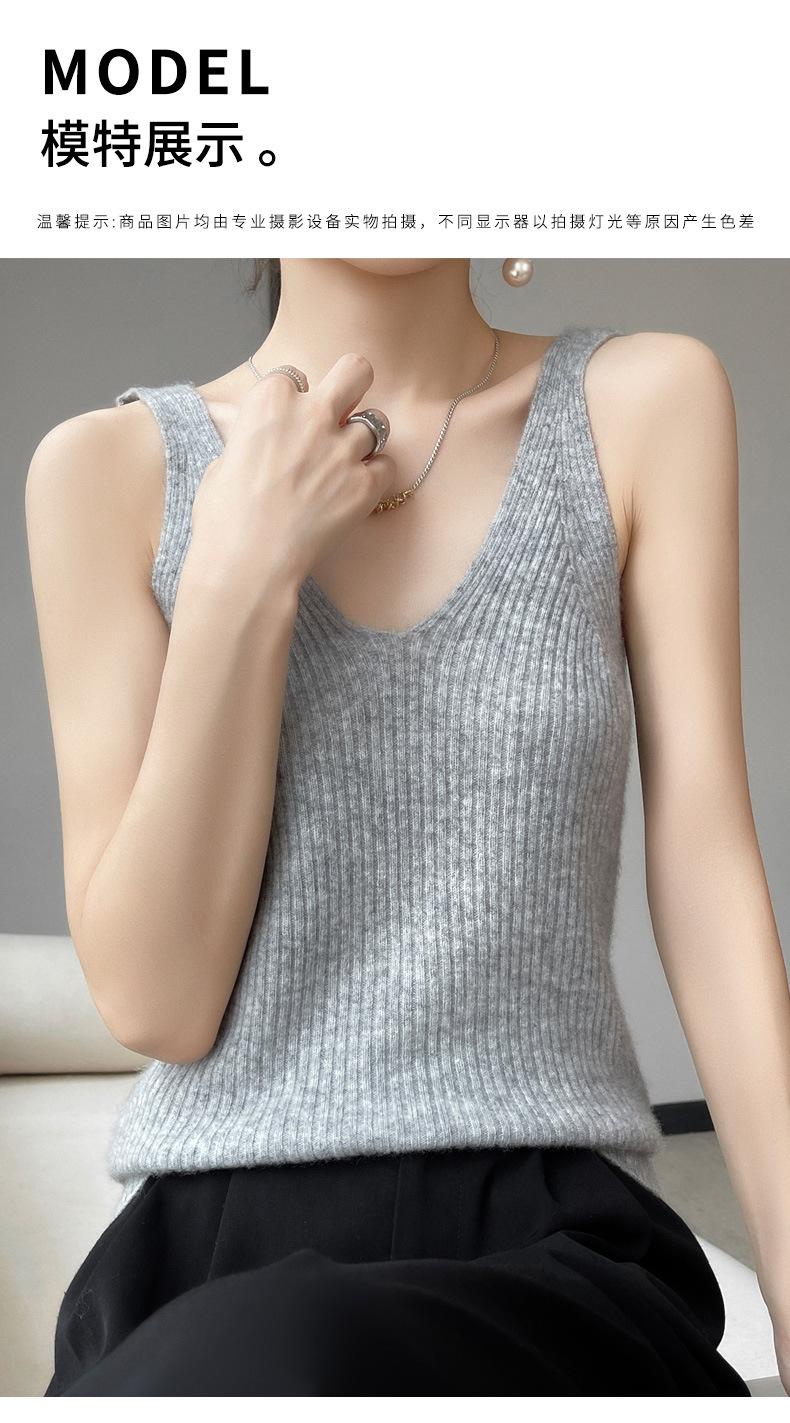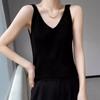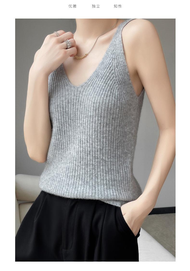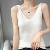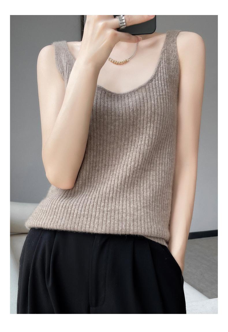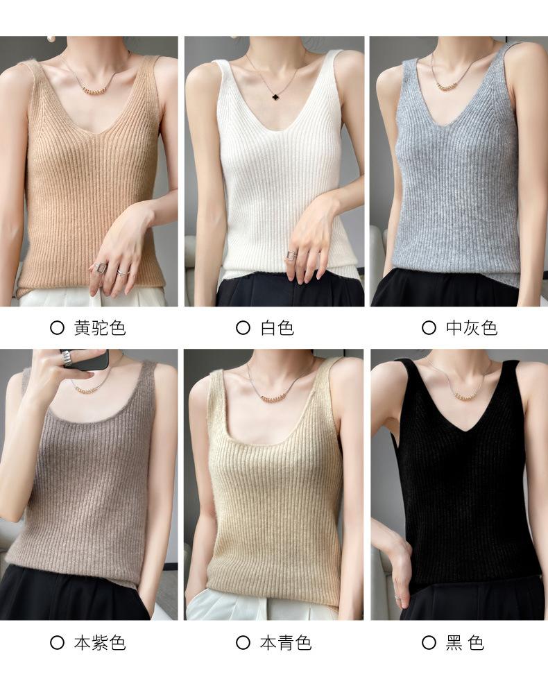 Chaleco interior de punto con tiras y cuello en V para mujer, 100% lana pura, otoño e invierno 2024