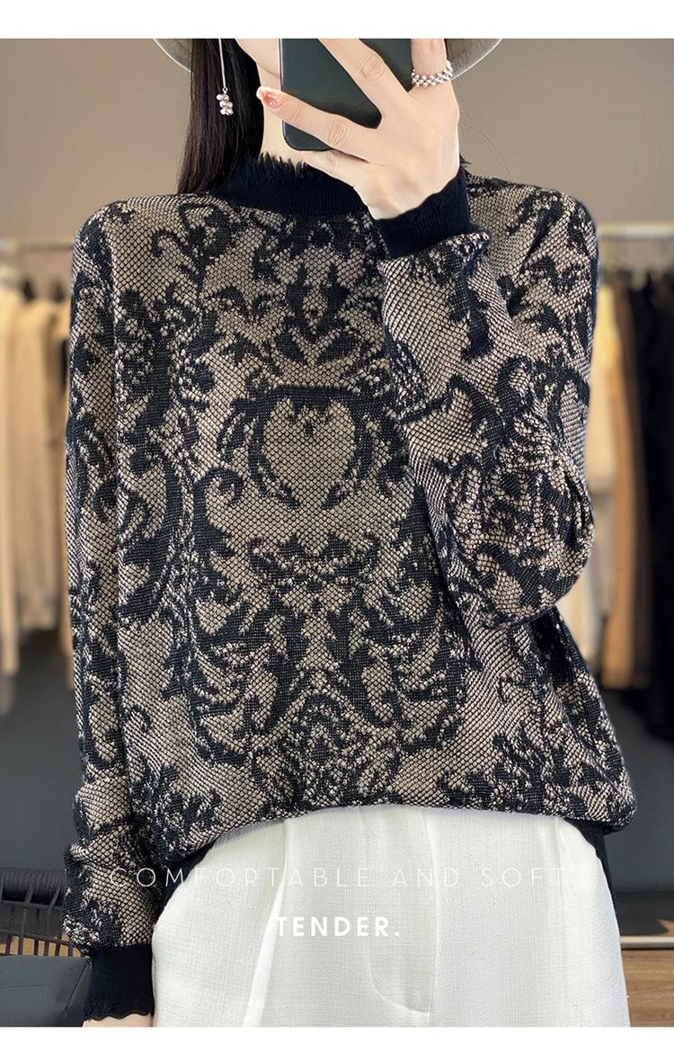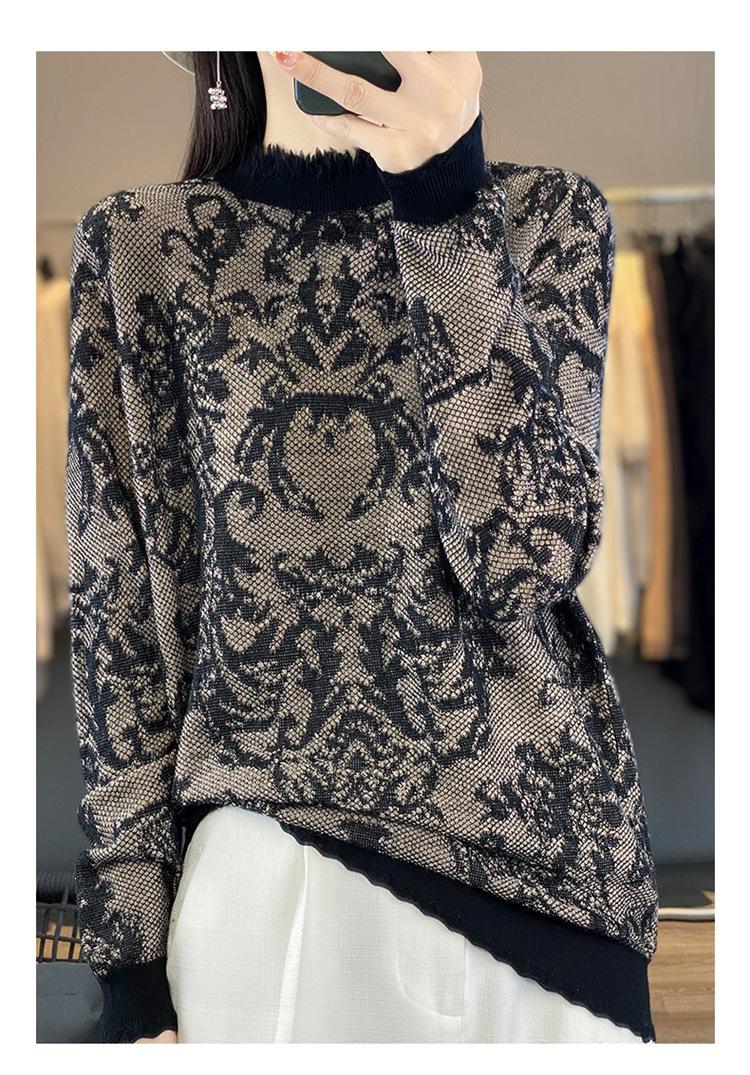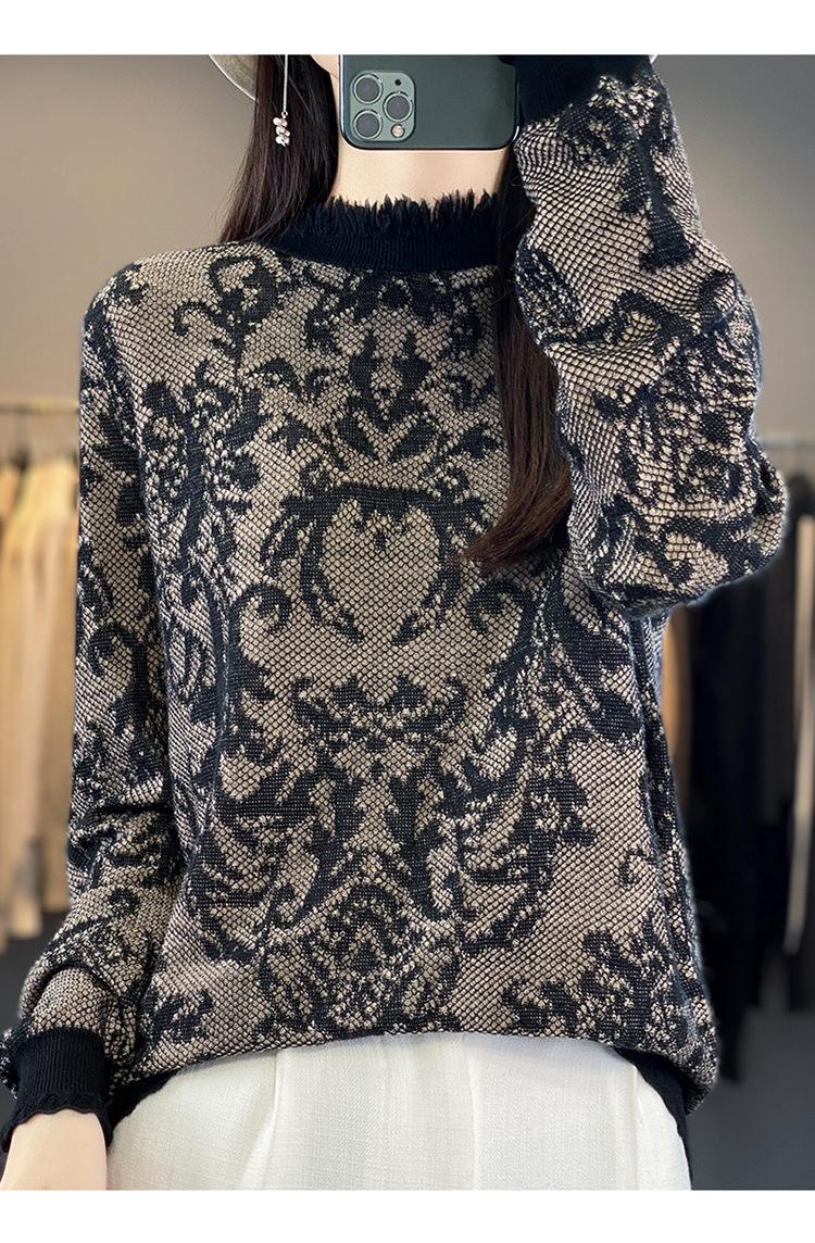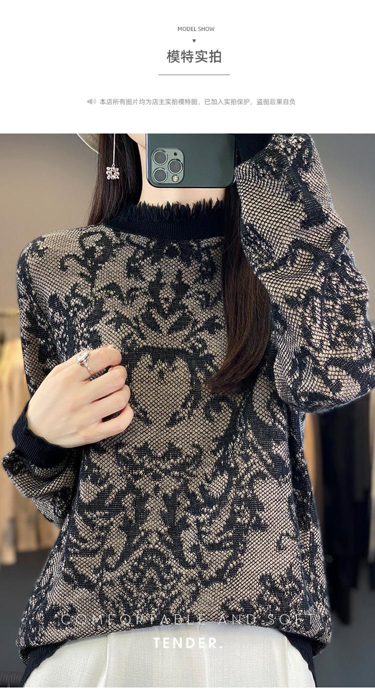 Suéter de cuello alto medio con flecos para mujer, suave y exquisito, de lana jacquard para otoño e invierno, con una base elegante y cálida.