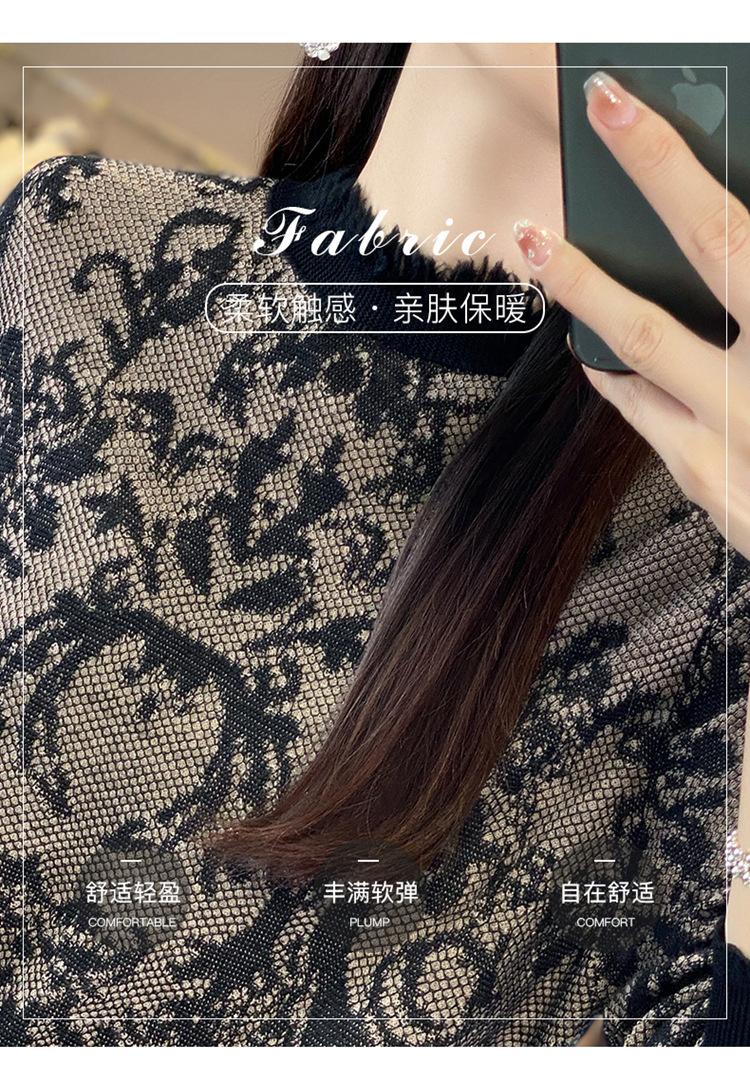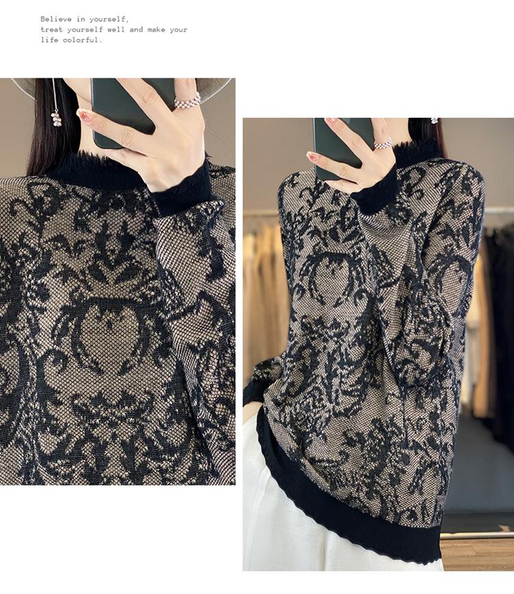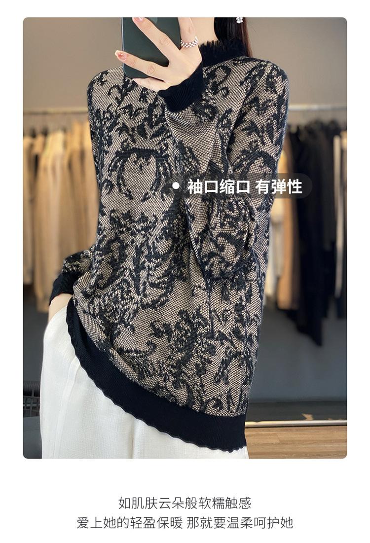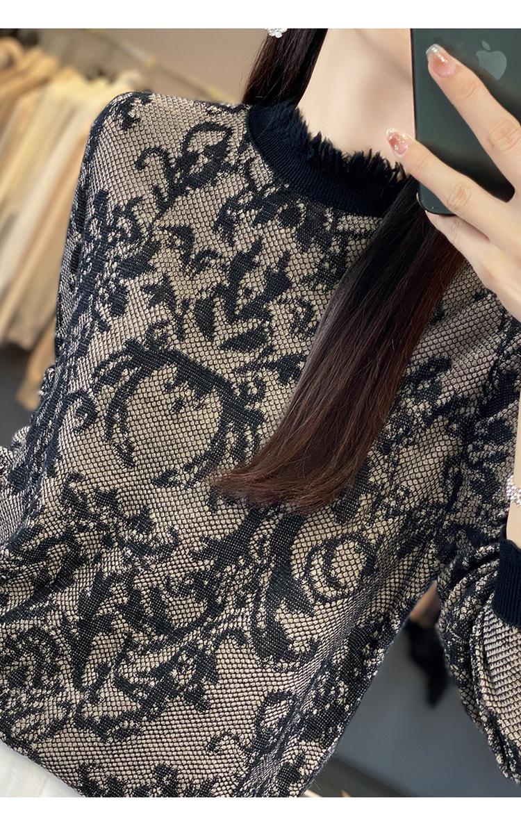 Suéter de cuello alto medio con flecos para mujer, suave y exquisito, de lana jacquard para otoño e invierno, con una base elegante y cálida.