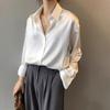 Camisa de satén blanca para mujer, diseño de otoño, camisa de nicho con sentido del estilo retro de Hong Kong, elegante, de manga larga, con drapeado.