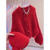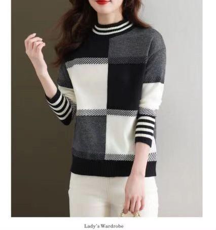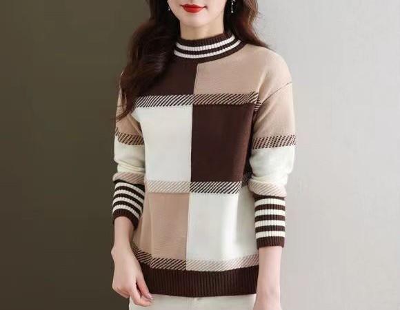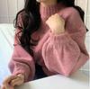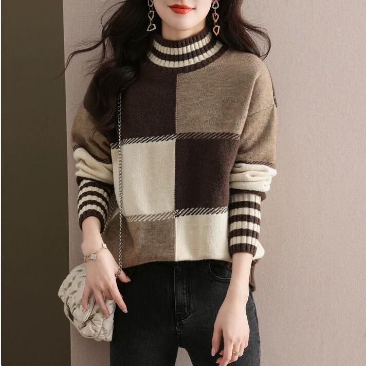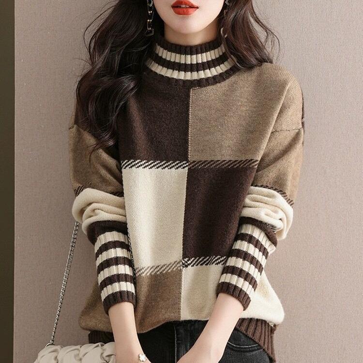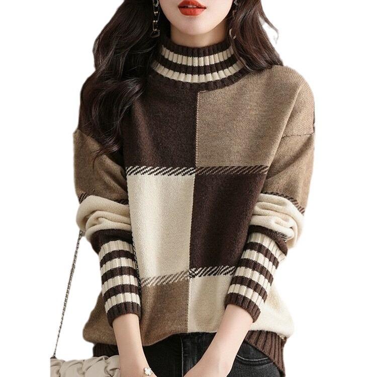 Suéter de punto nuevo de otoño e invierno para mujer, suéter de diseño holgado estilo occidental, camisa base que combina con el color y que reduce la edad.