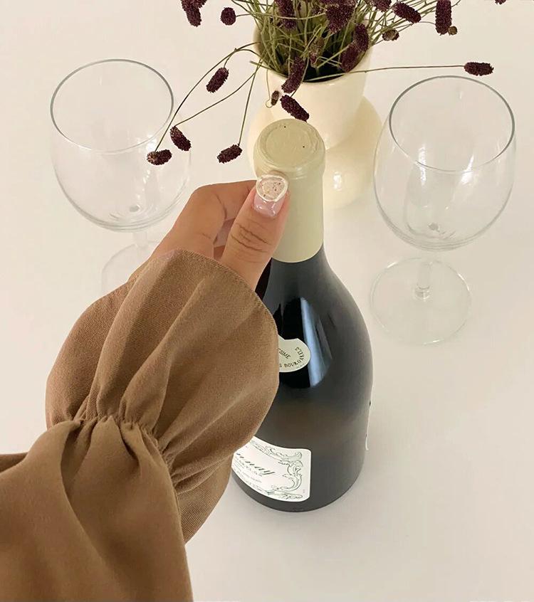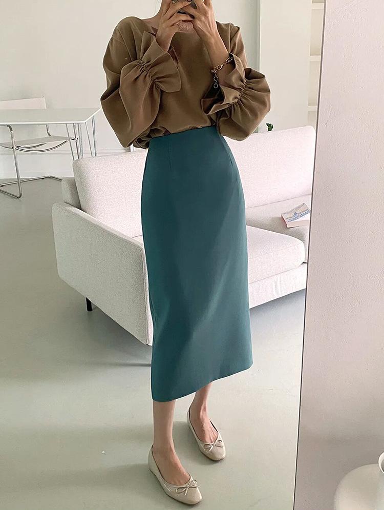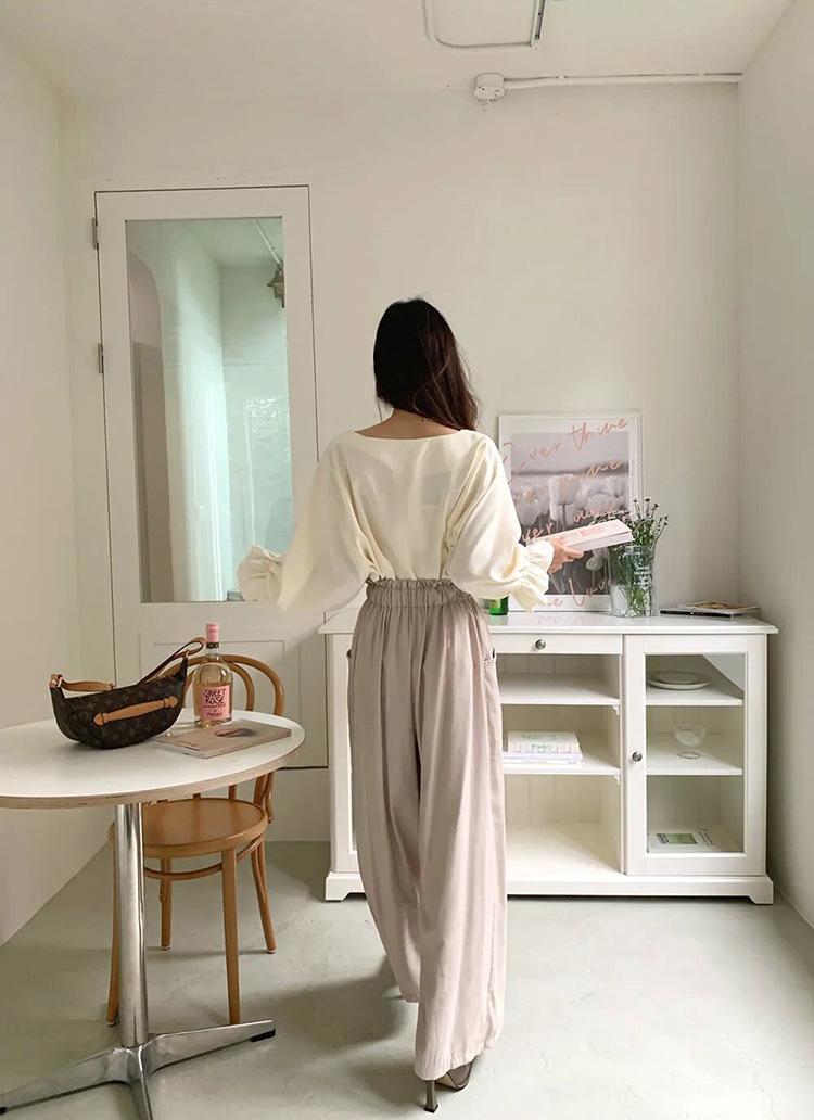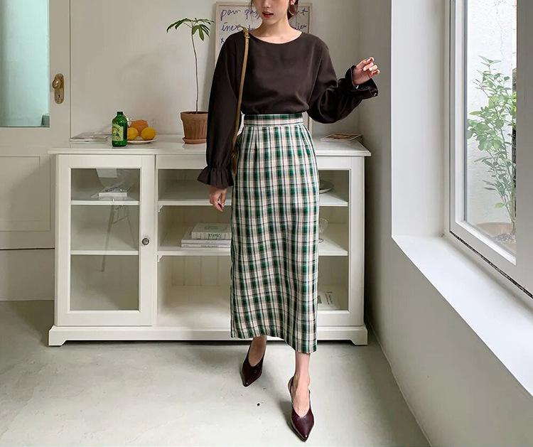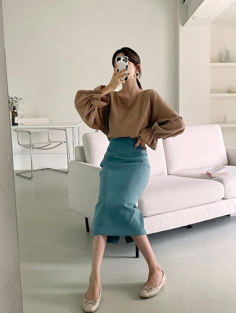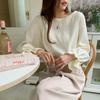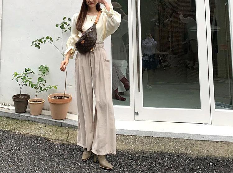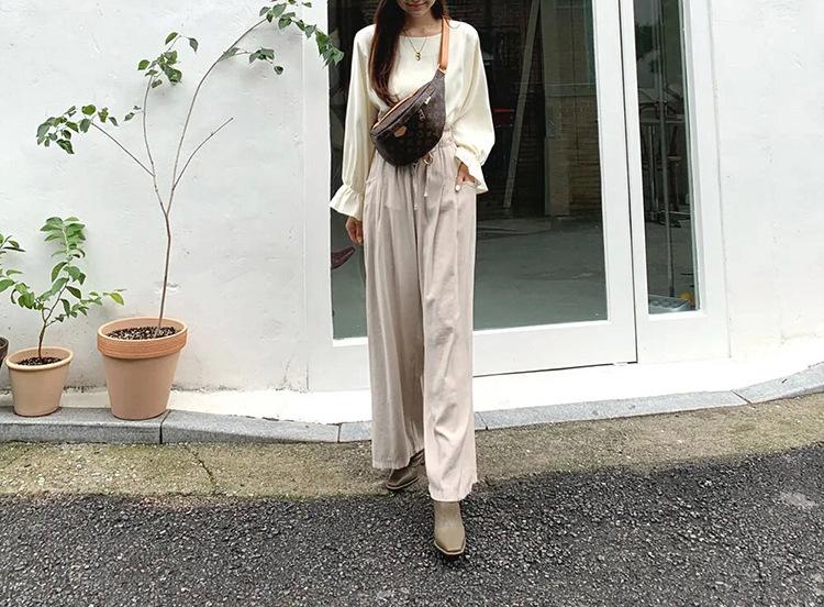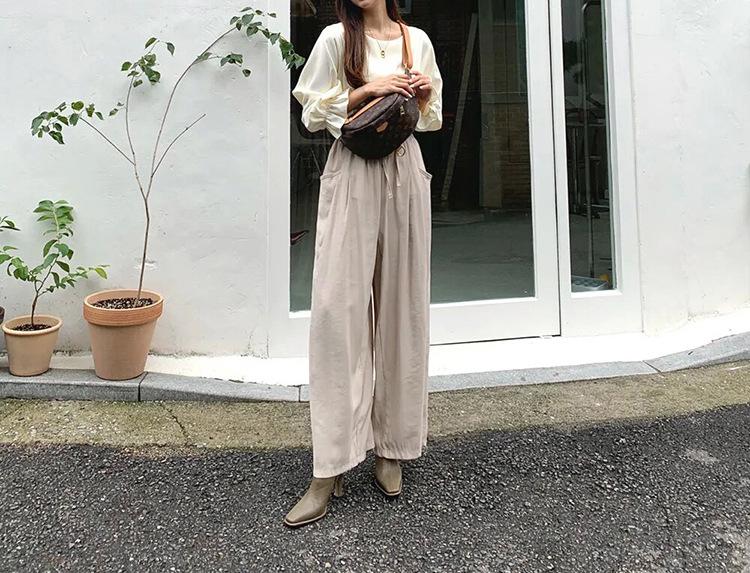 Camiseta de otoño estilo coreano para mujer, combinable con todo, cuello redondo, manga acampanada, jersey de color liso