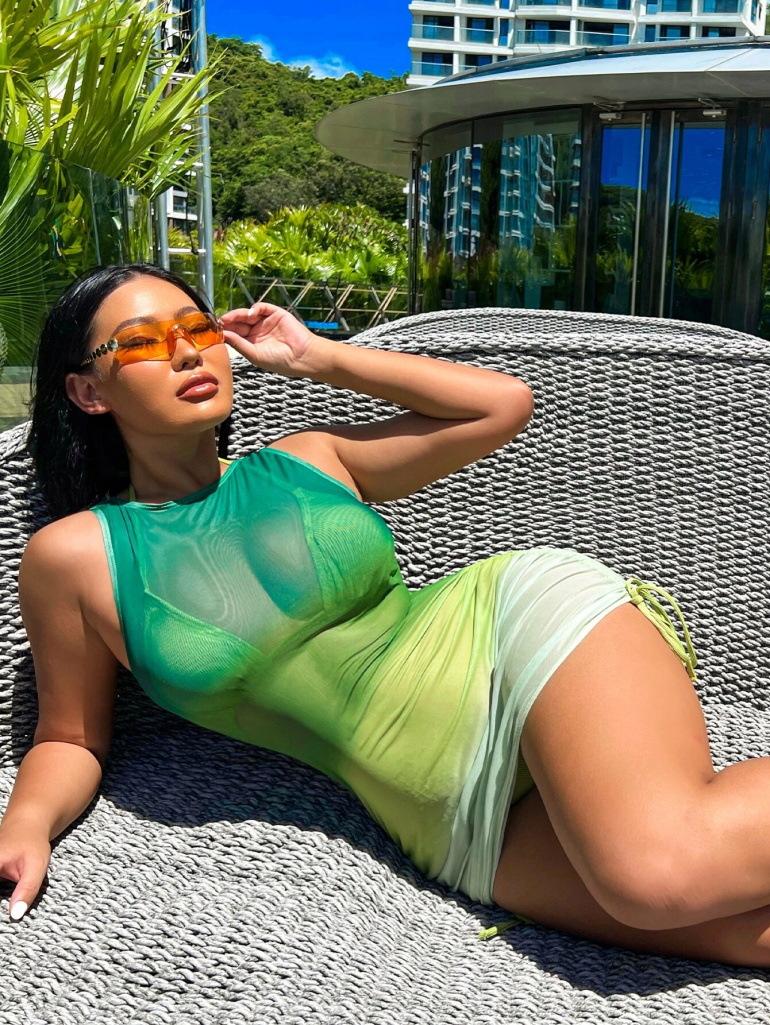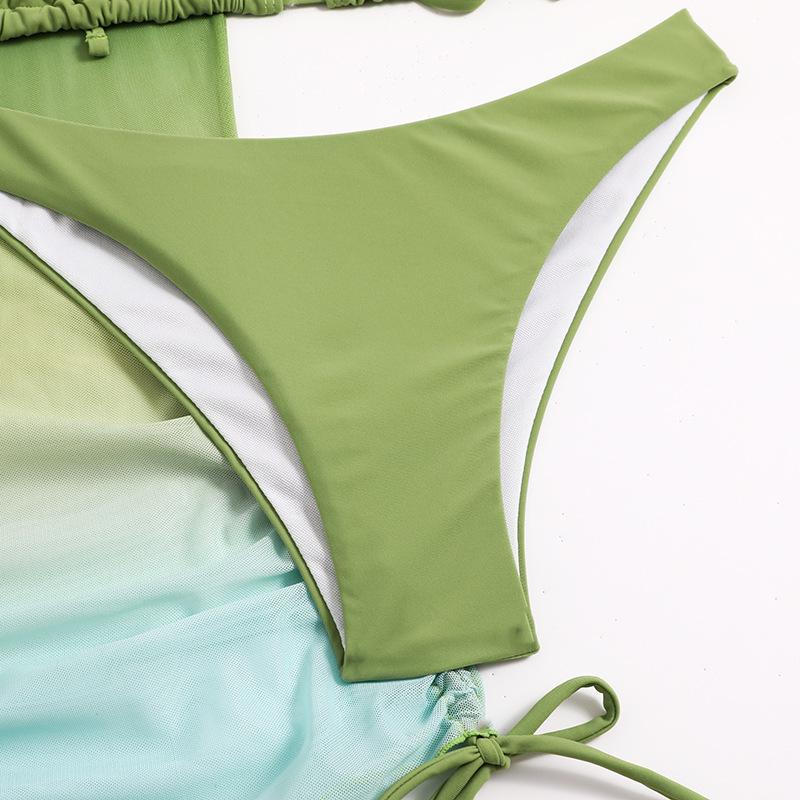Traje de baño de tres piezas con blusa de malla degradada y bikini dividido, Amazon, Europa y Estados Unidos, 2023