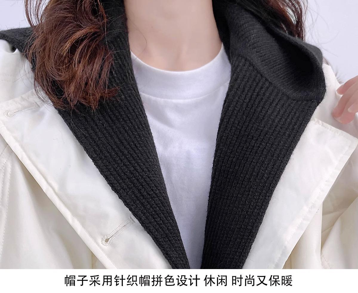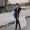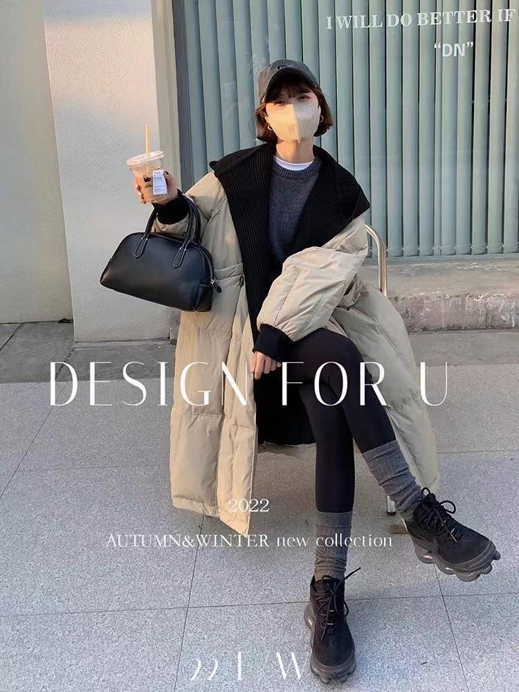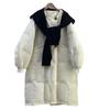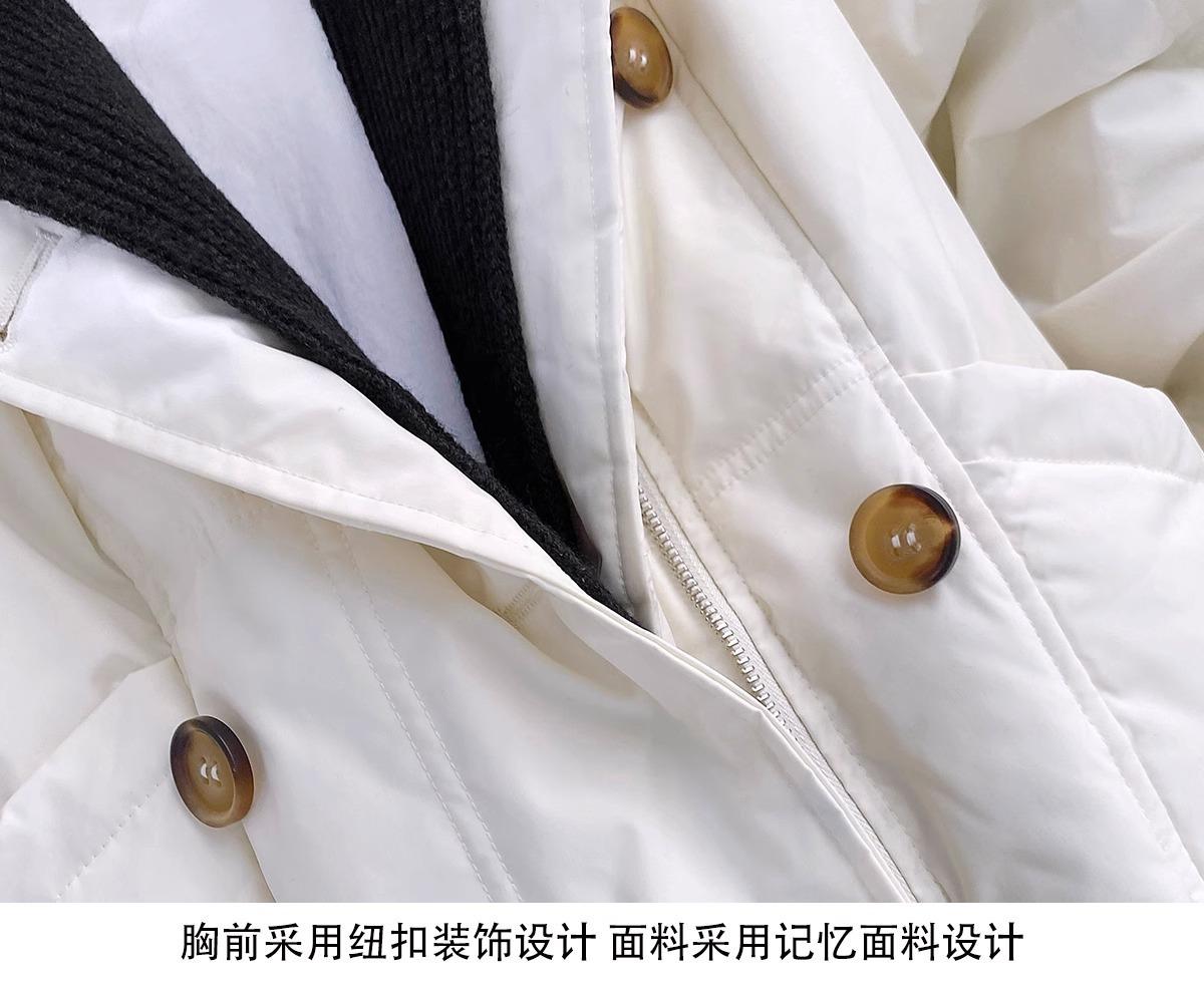 Chaqueta de plumón para mujer 2025 Invierno Nuevo Diseño con Capucha Tejido Falso Dos Piezas Plumón de Pato Blanco Largo Medio Abrigo Sobre la Rodilla