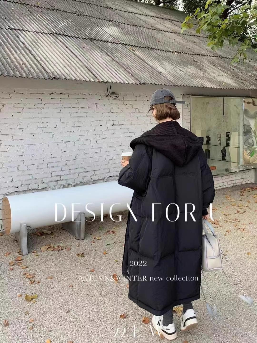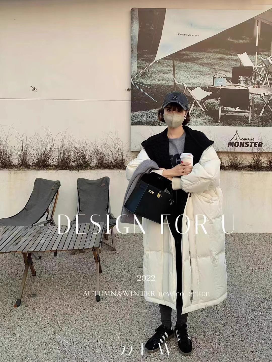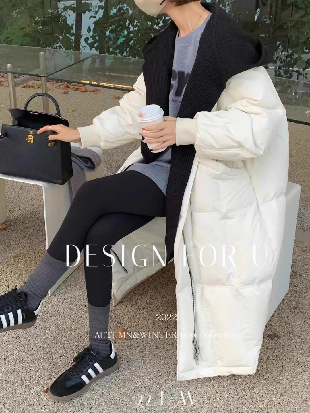 Chaqueta de plumón para mujer 2025 Invierno Nuevo Diseño con Capucha Tejido Falso Dos Piezas Plumón de Pato Blanco Largo Medio Abrigo Sobre la Rodilla